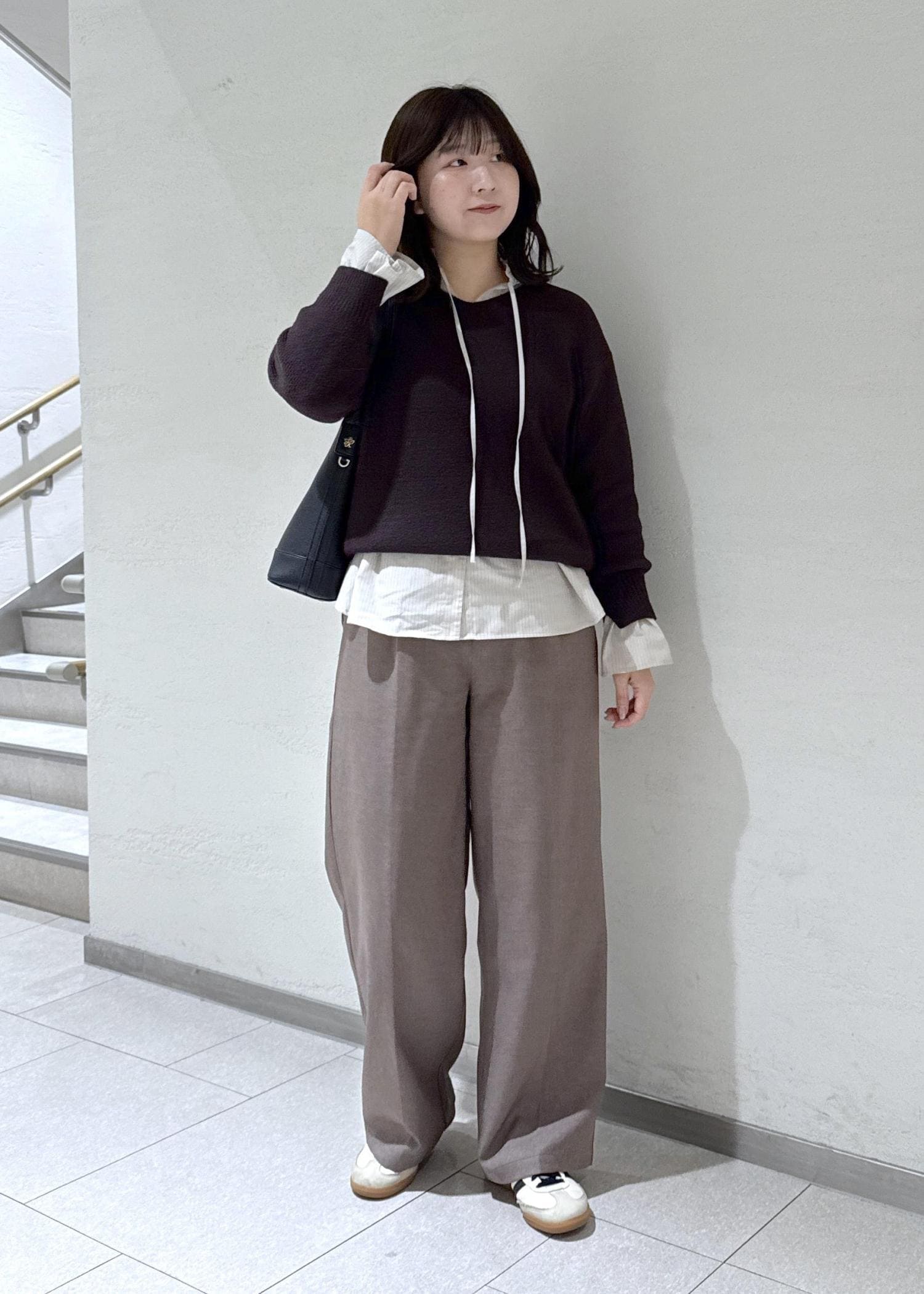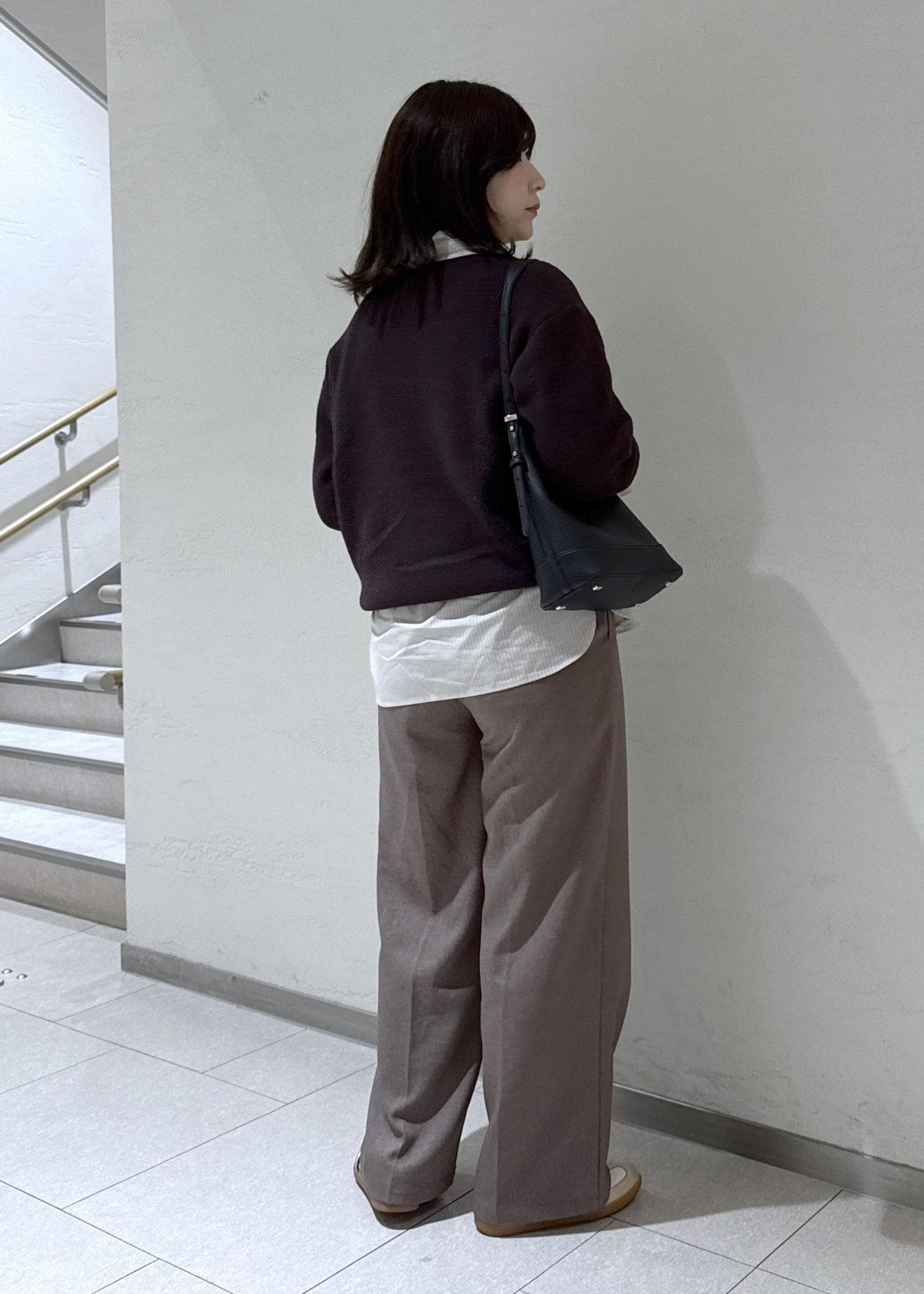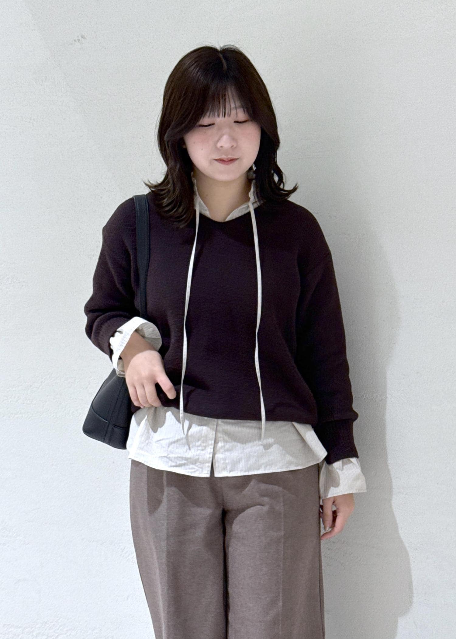 シワになりにくく柔らかくなめらかな生地感で、レイヤードが苦手な私もごわつきなく着れたのが良かったです。