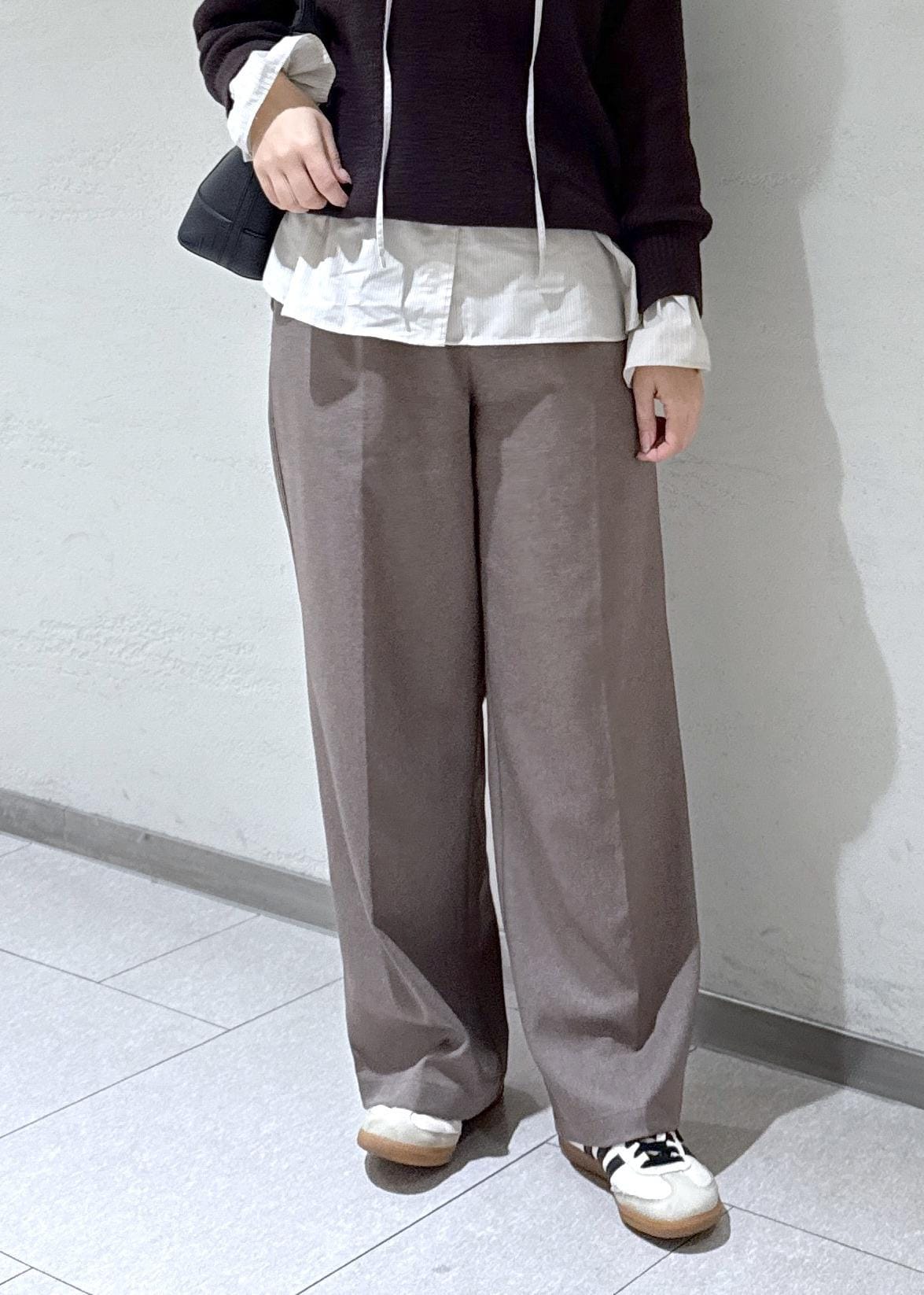 今まで丈がジャストより少し短く感じていたので、余計に下半身が太く見えてしまうのが悩みでしたが、ズルっと着れる丈感で脚が長く見せれます。