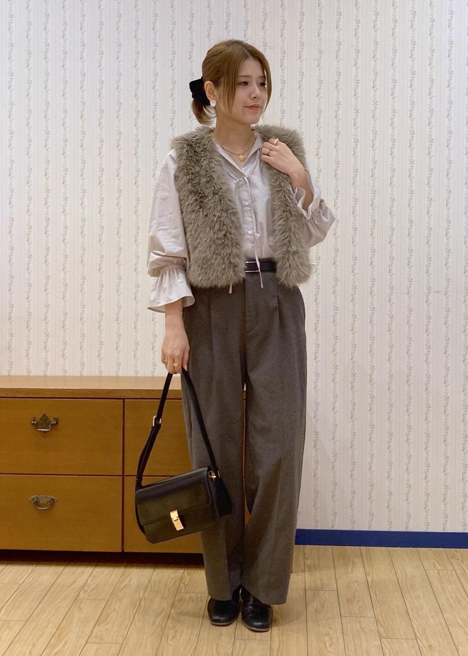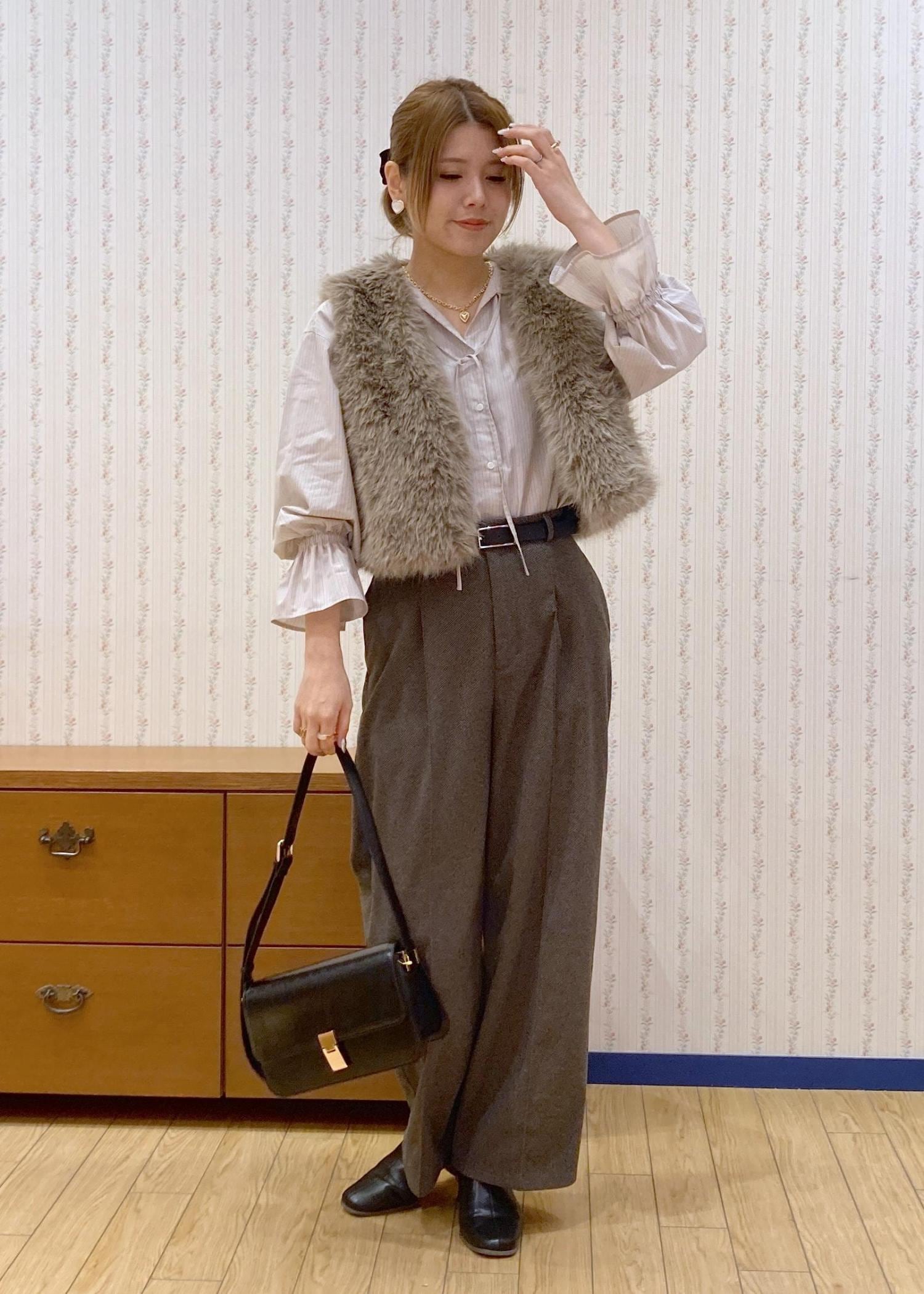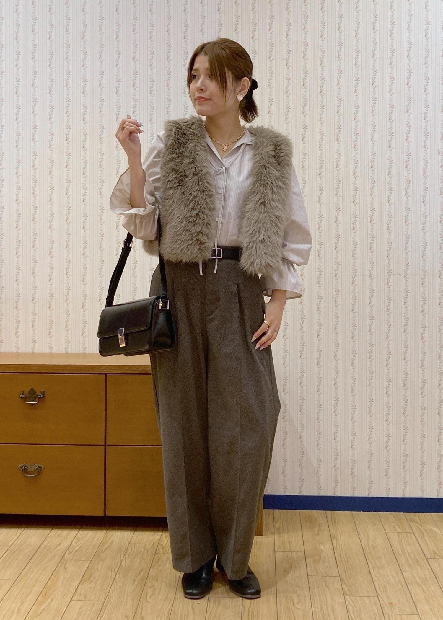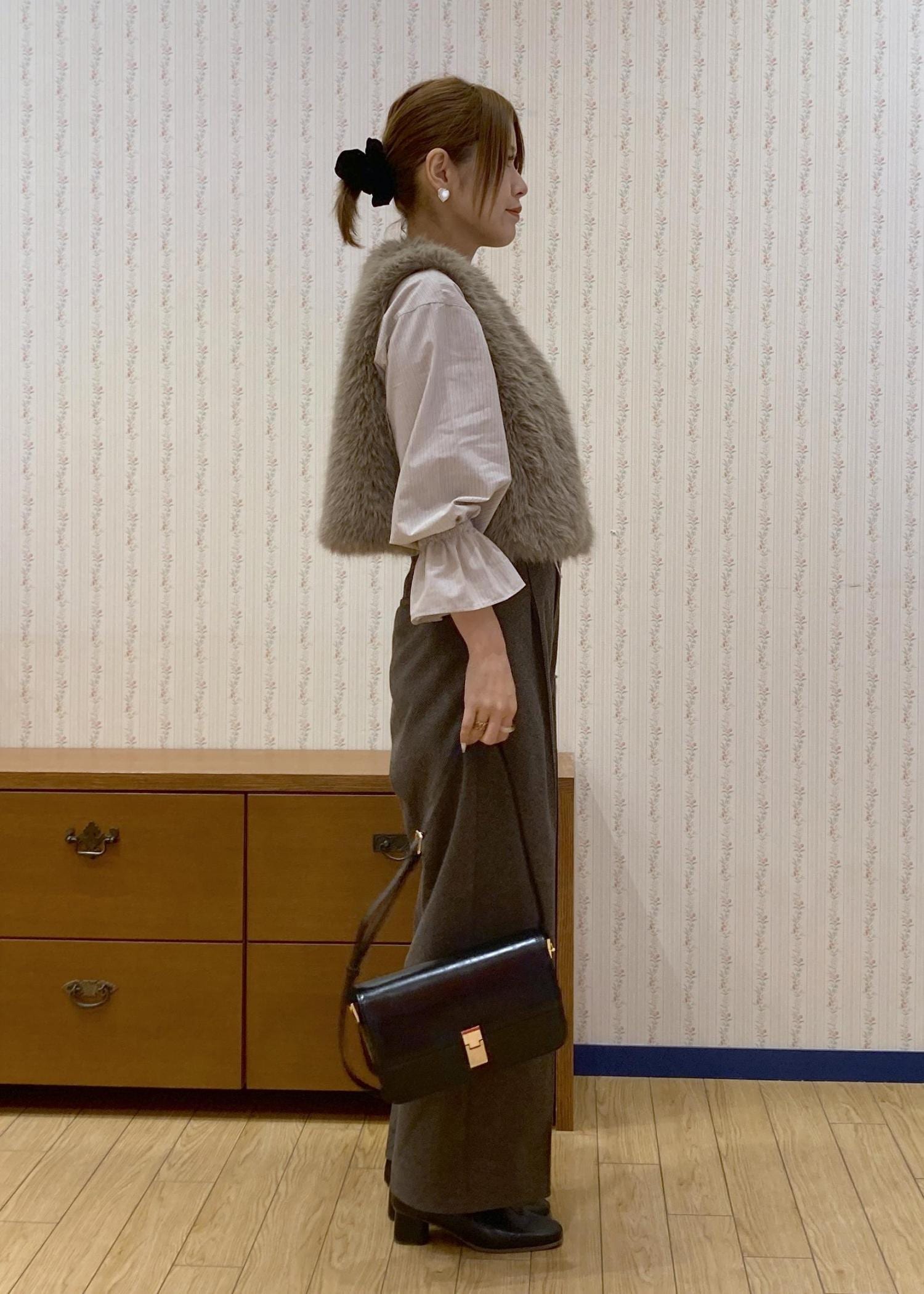 ブラウン系でまとめて小物はブラックを合わせてコーディネートを締めました!