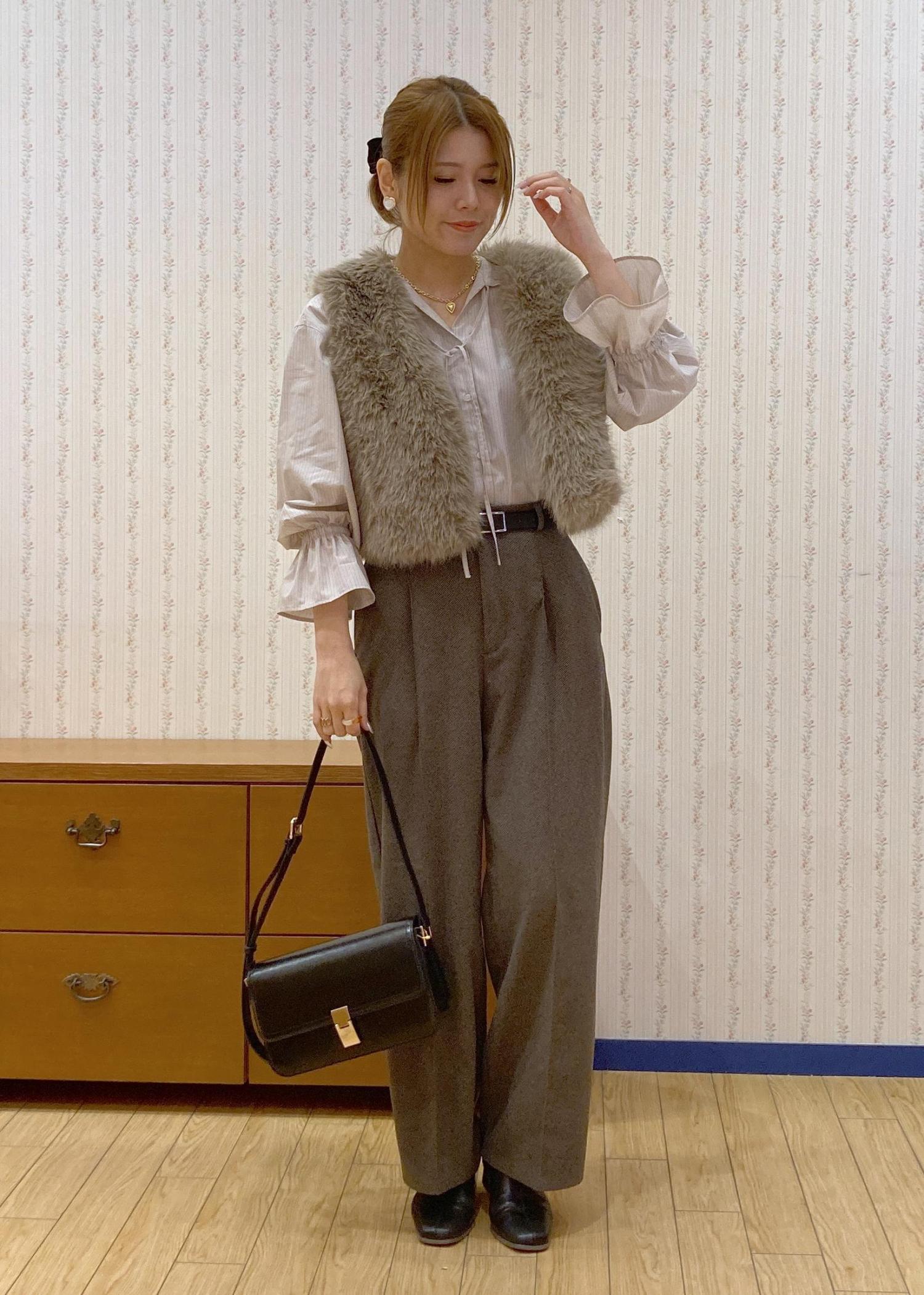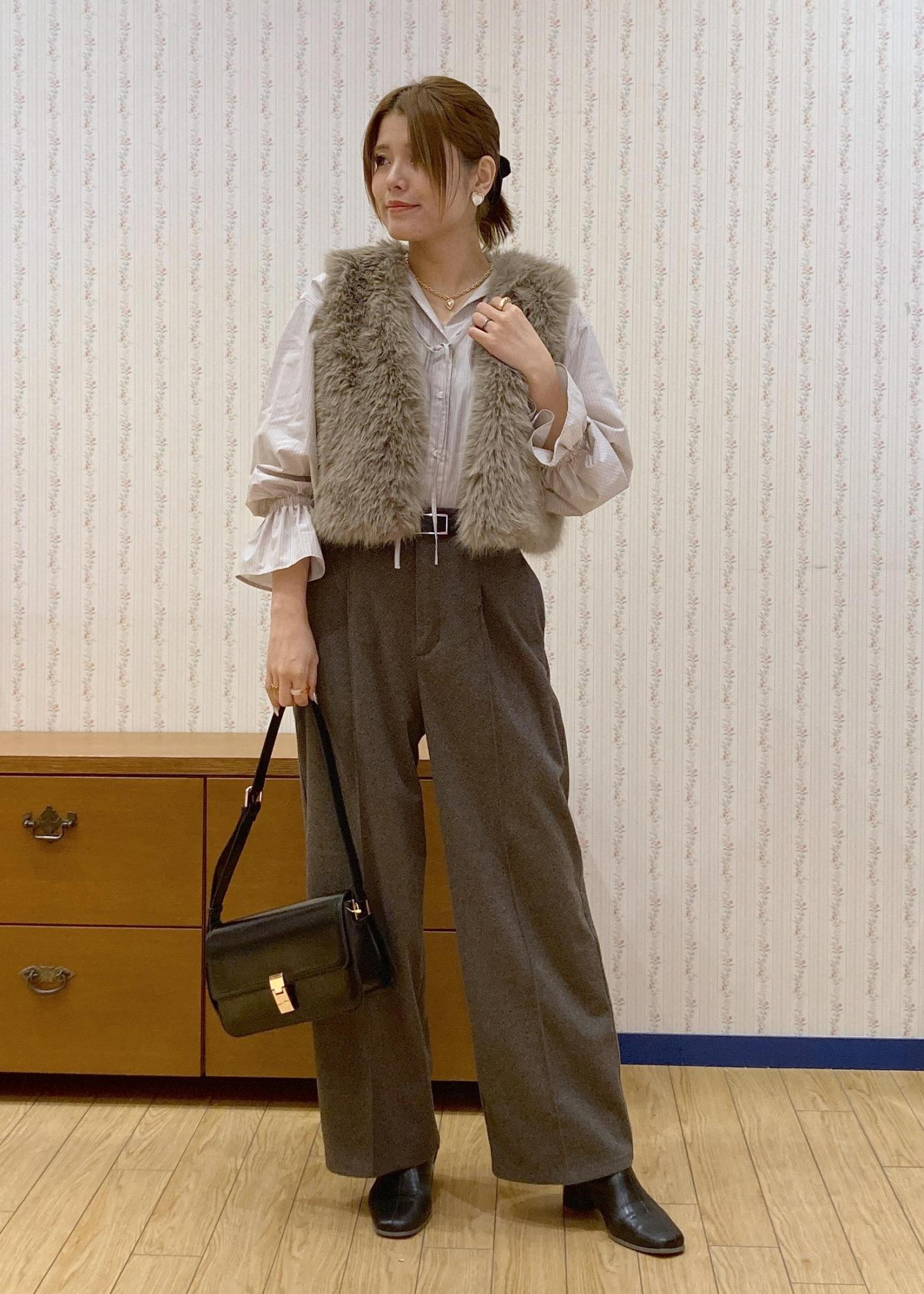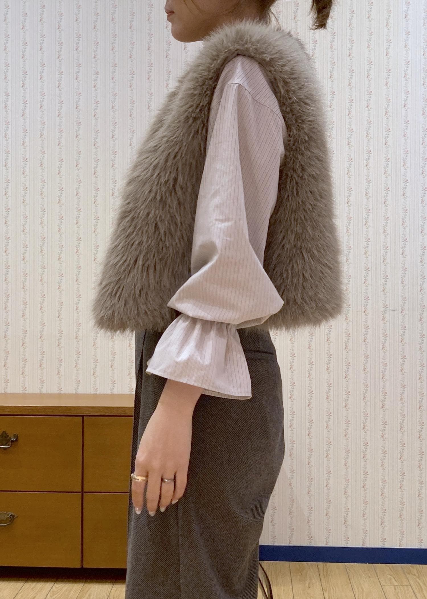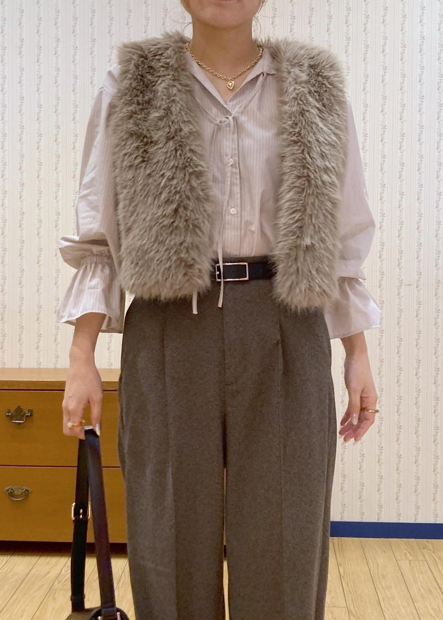 ROPÉ PICNICファーベストダークブラウン / F¥6,996レビューボックスシルエットのショート丈ファーベスト。