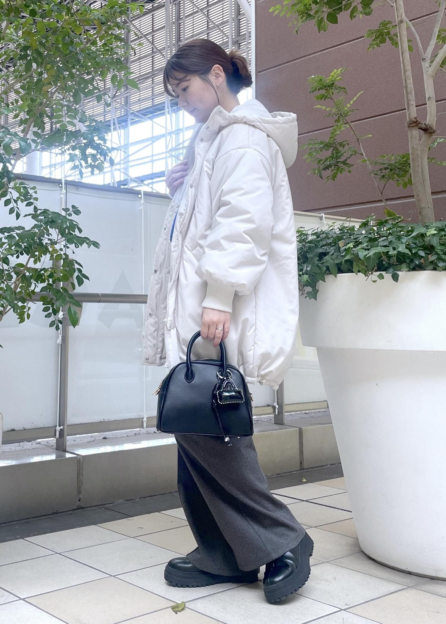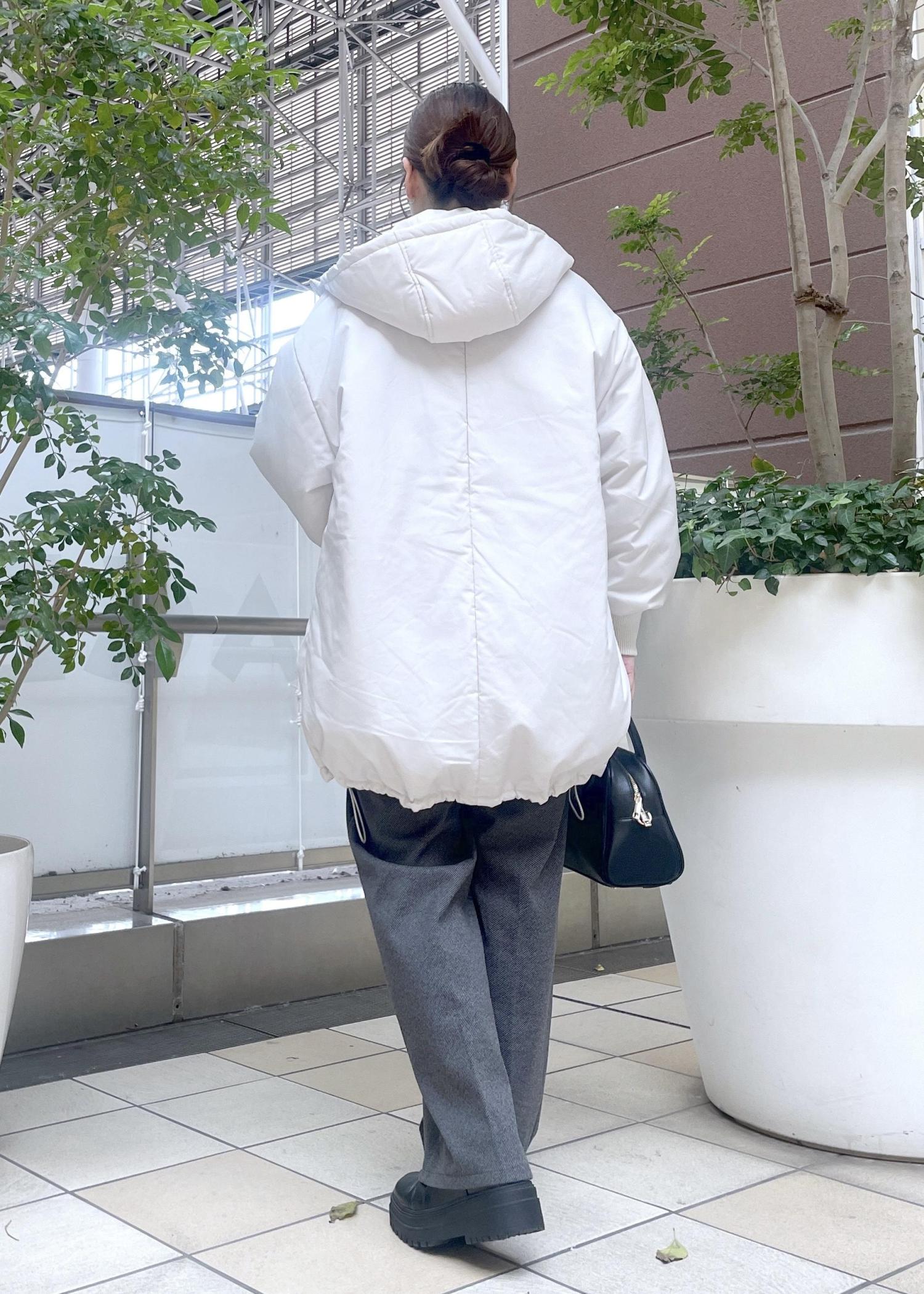ボリューム感のある中綿アウターが主役のコーディネートです。