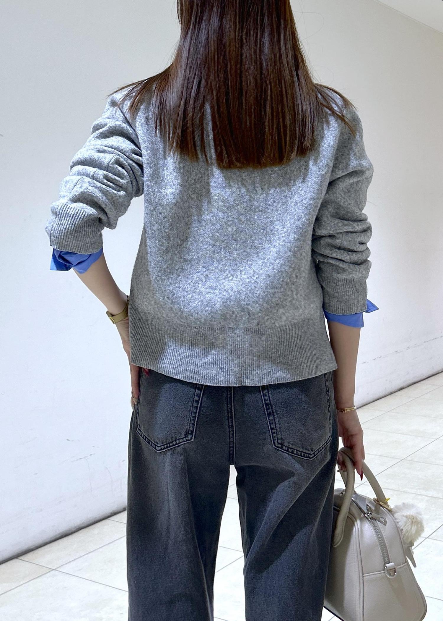 レイヤードスタイルがしやすい一枚となっております。カーディガンや、トレーナーなど合わせるのも相性○ -