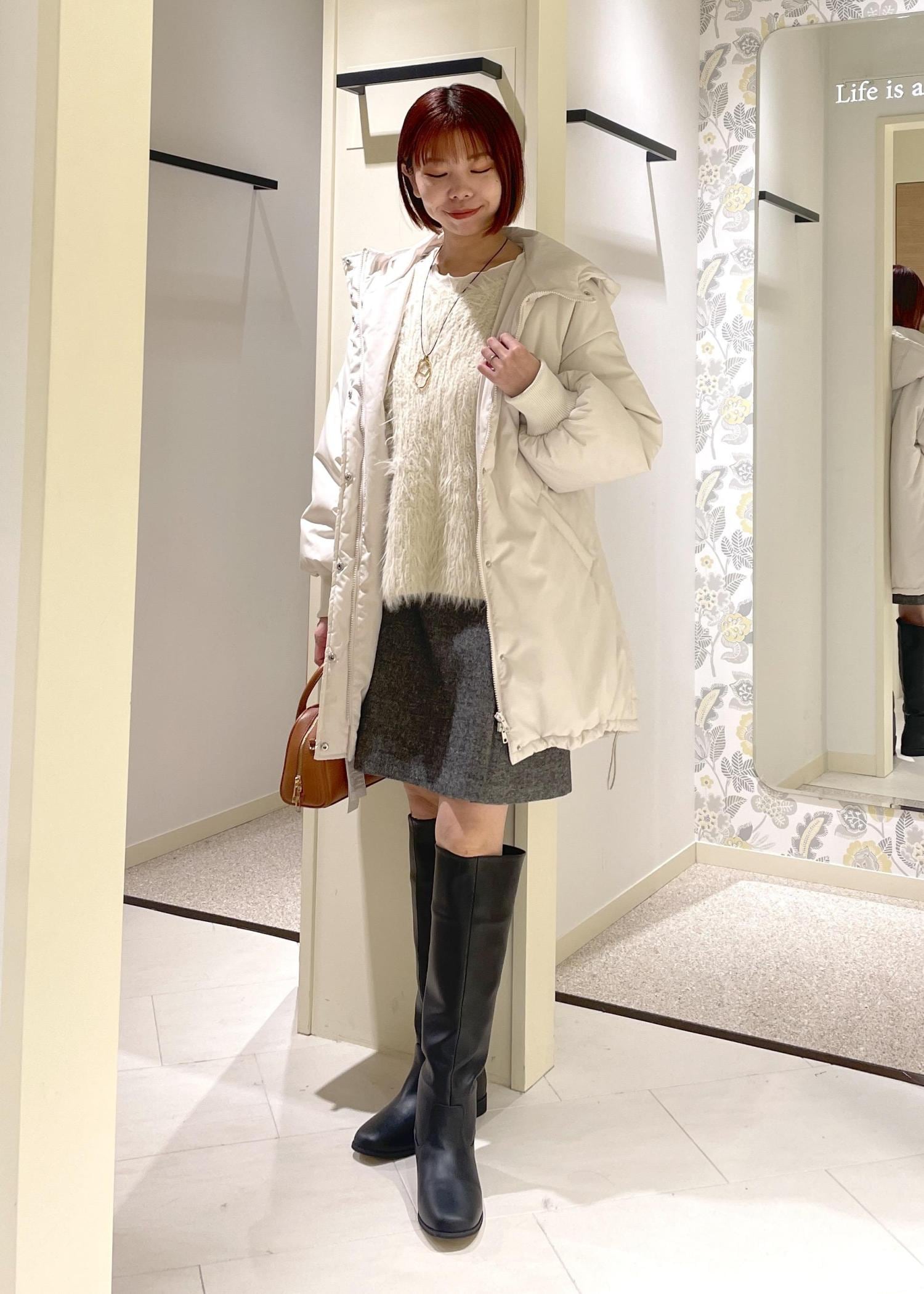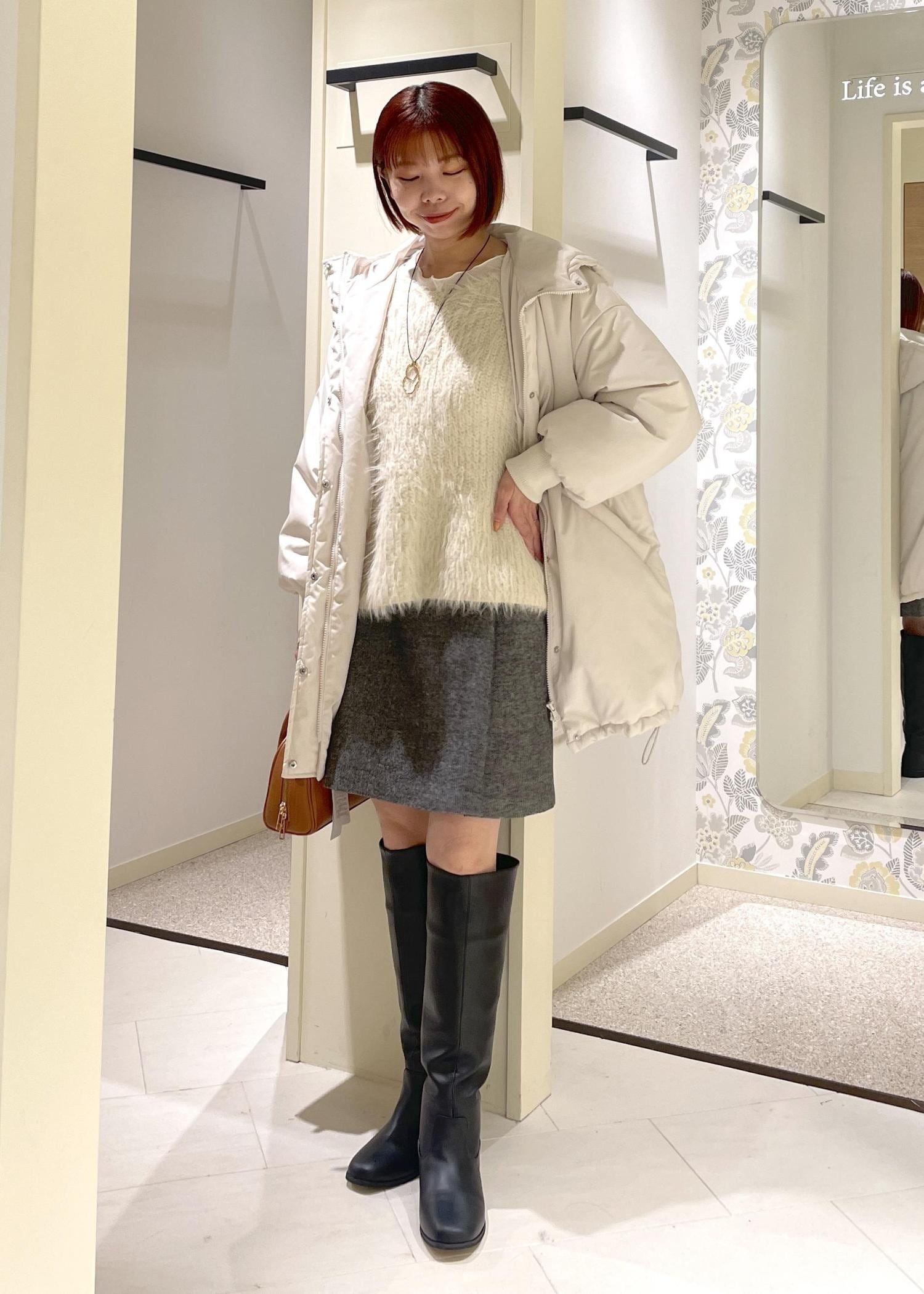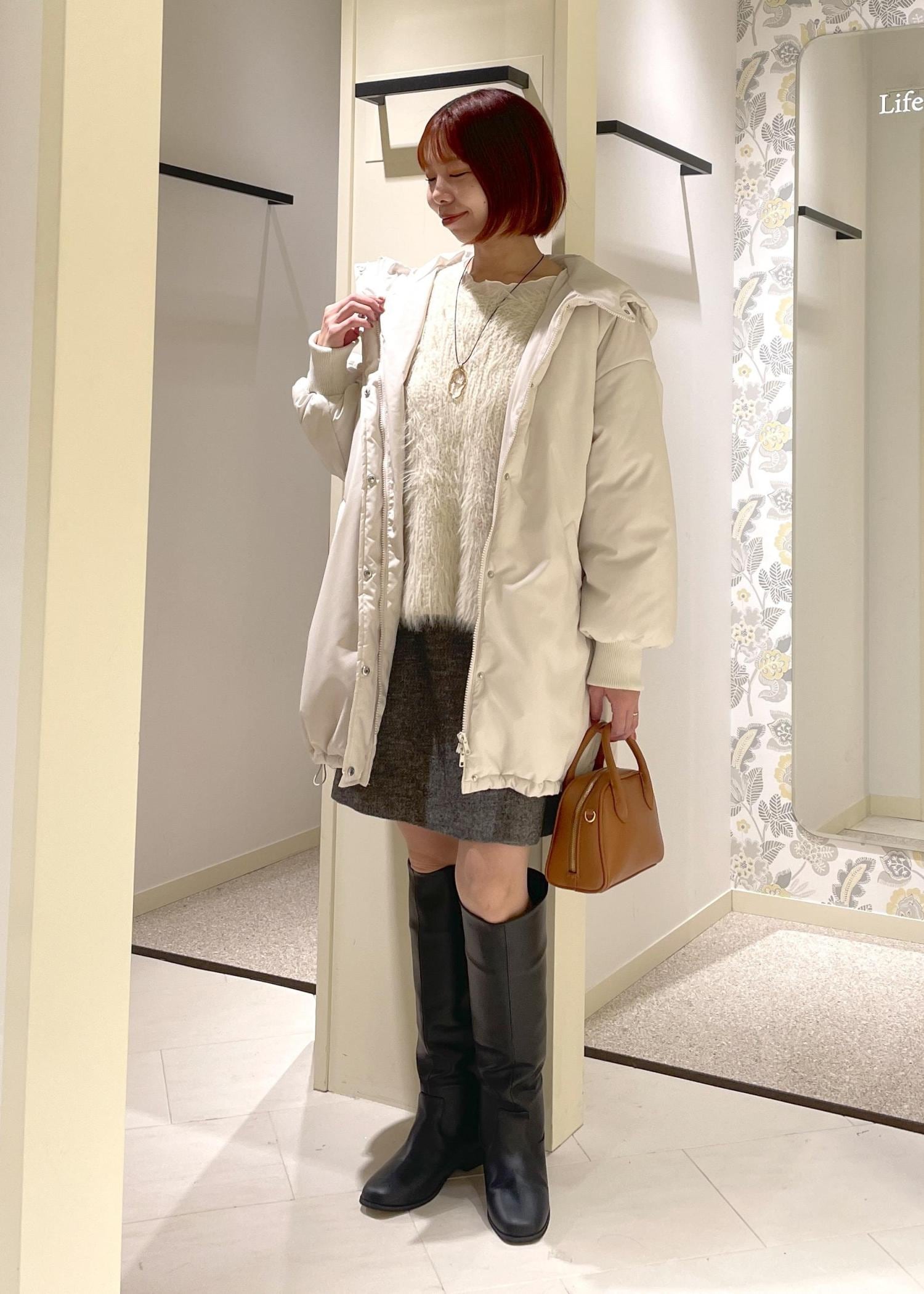 ミニスカートを合わせて、バランスや女性らしさをおさえたコーディネートにまとめてみました。