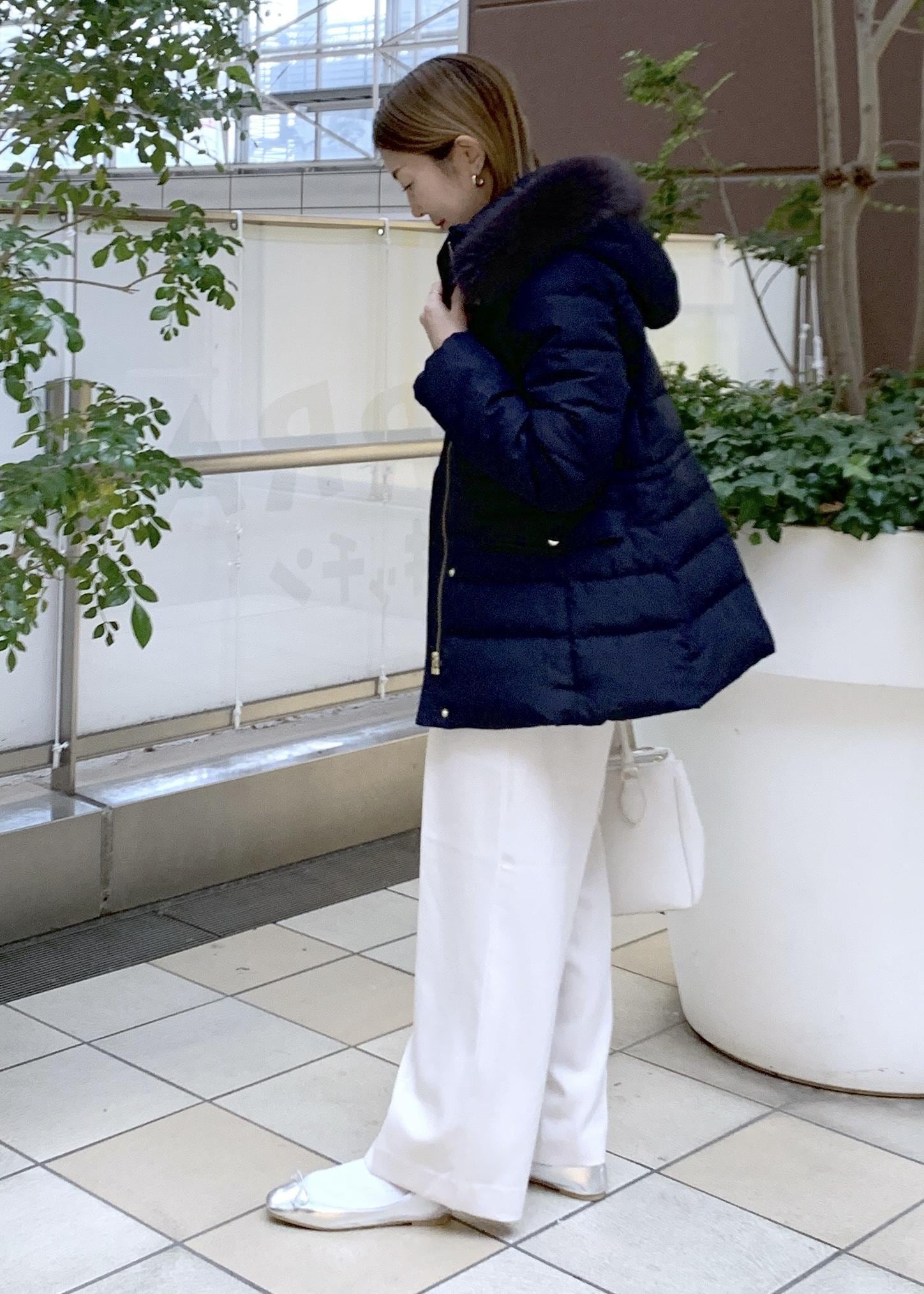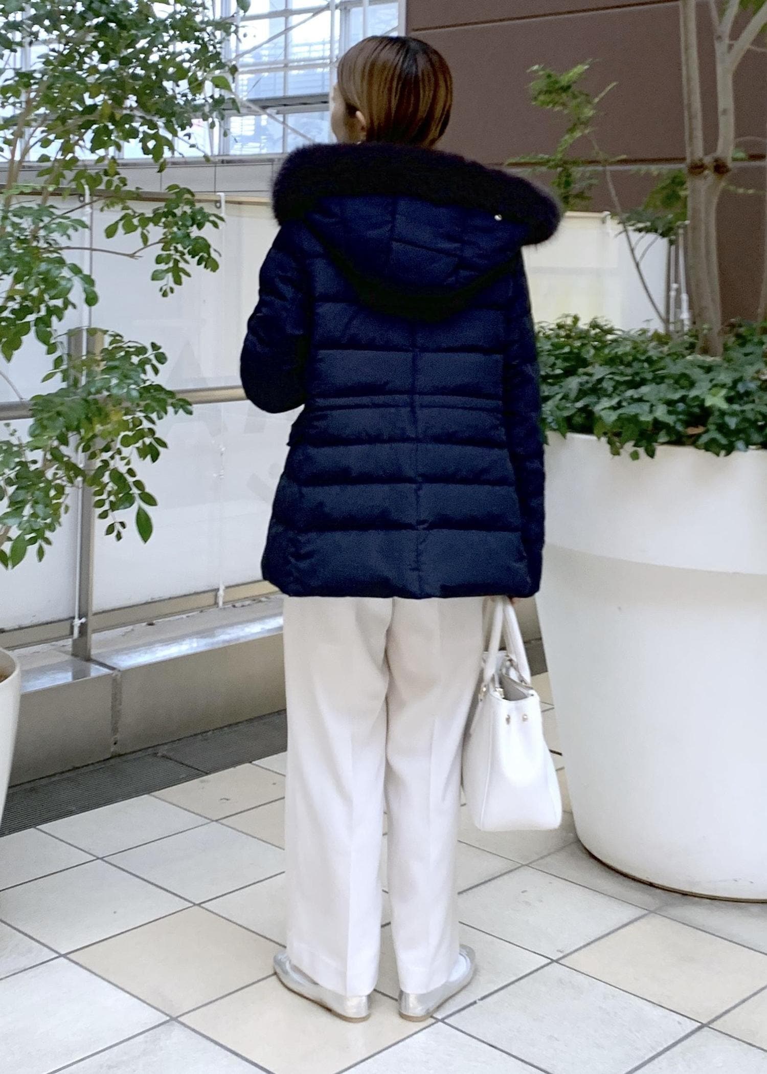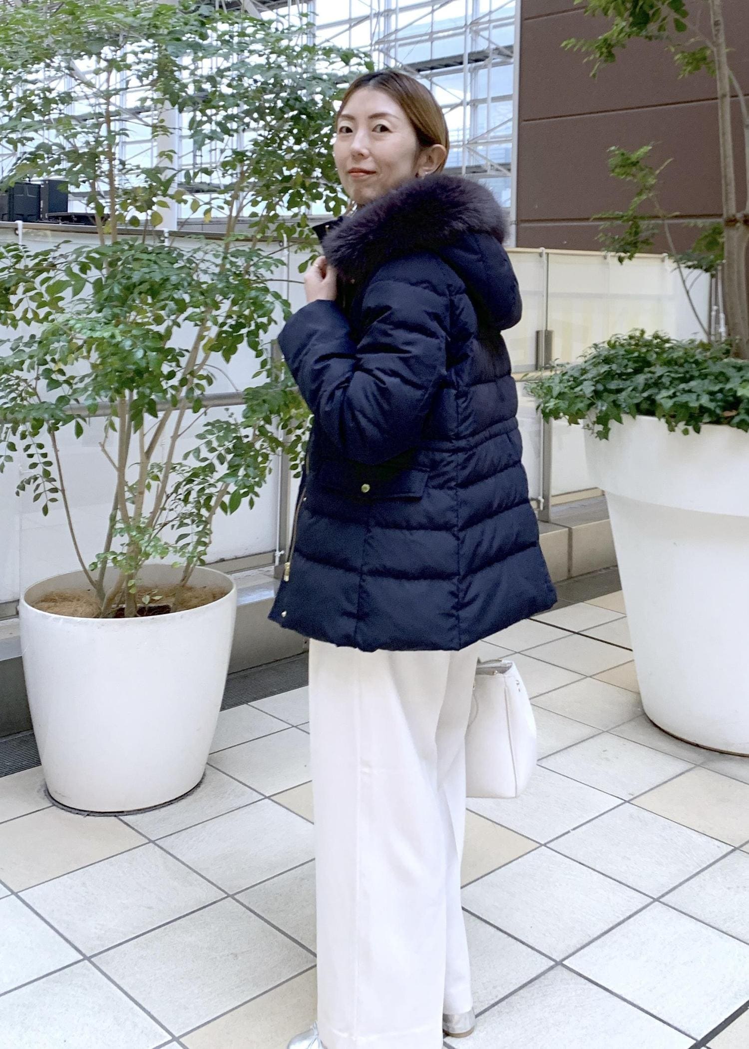 ROPÉ PICNIC【GREEN DOWN/グリーンダウン】ファー付きダウンミドル丈コート/リンクコーデネイビー / M¥18,700レビューMサイズ着用