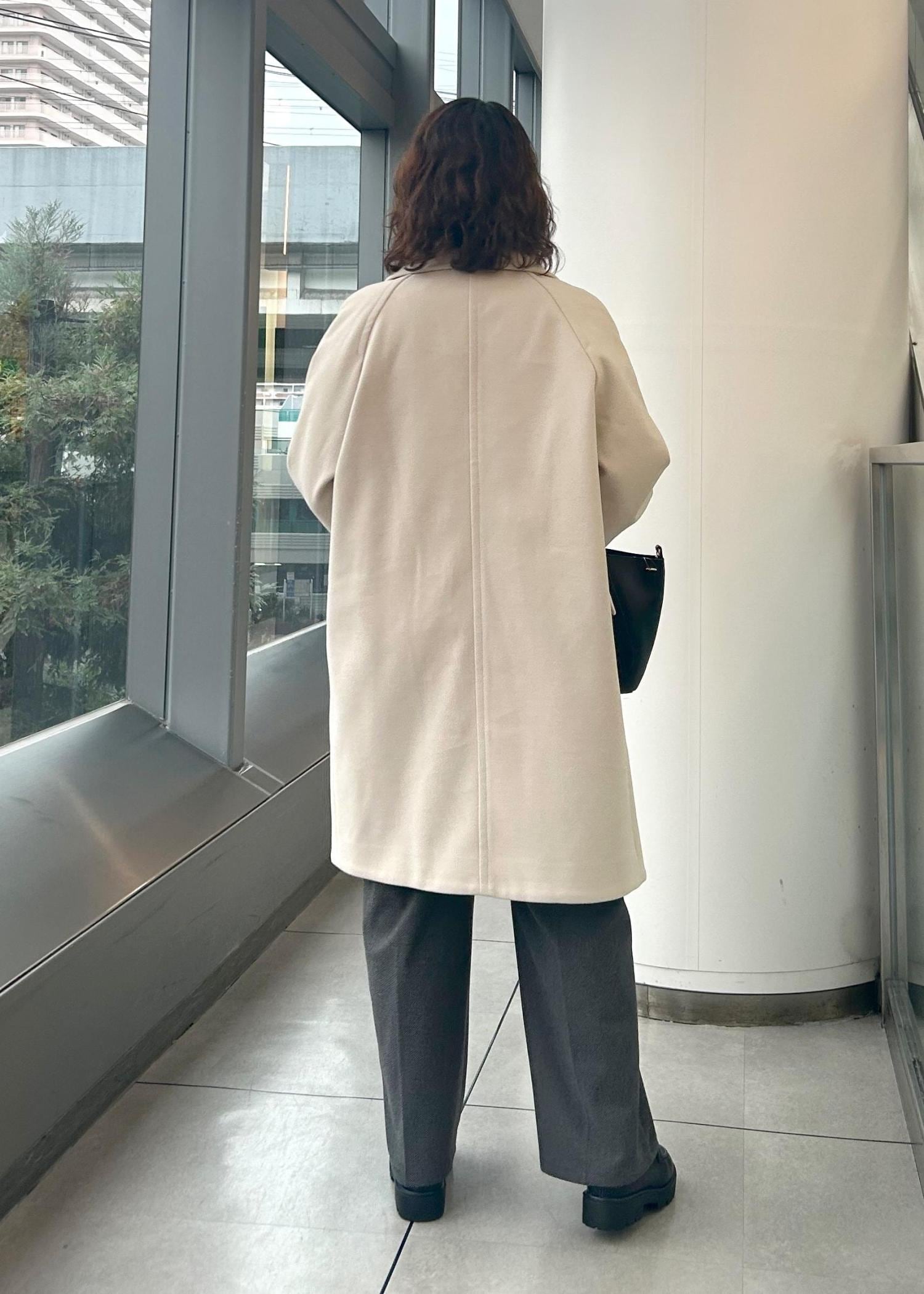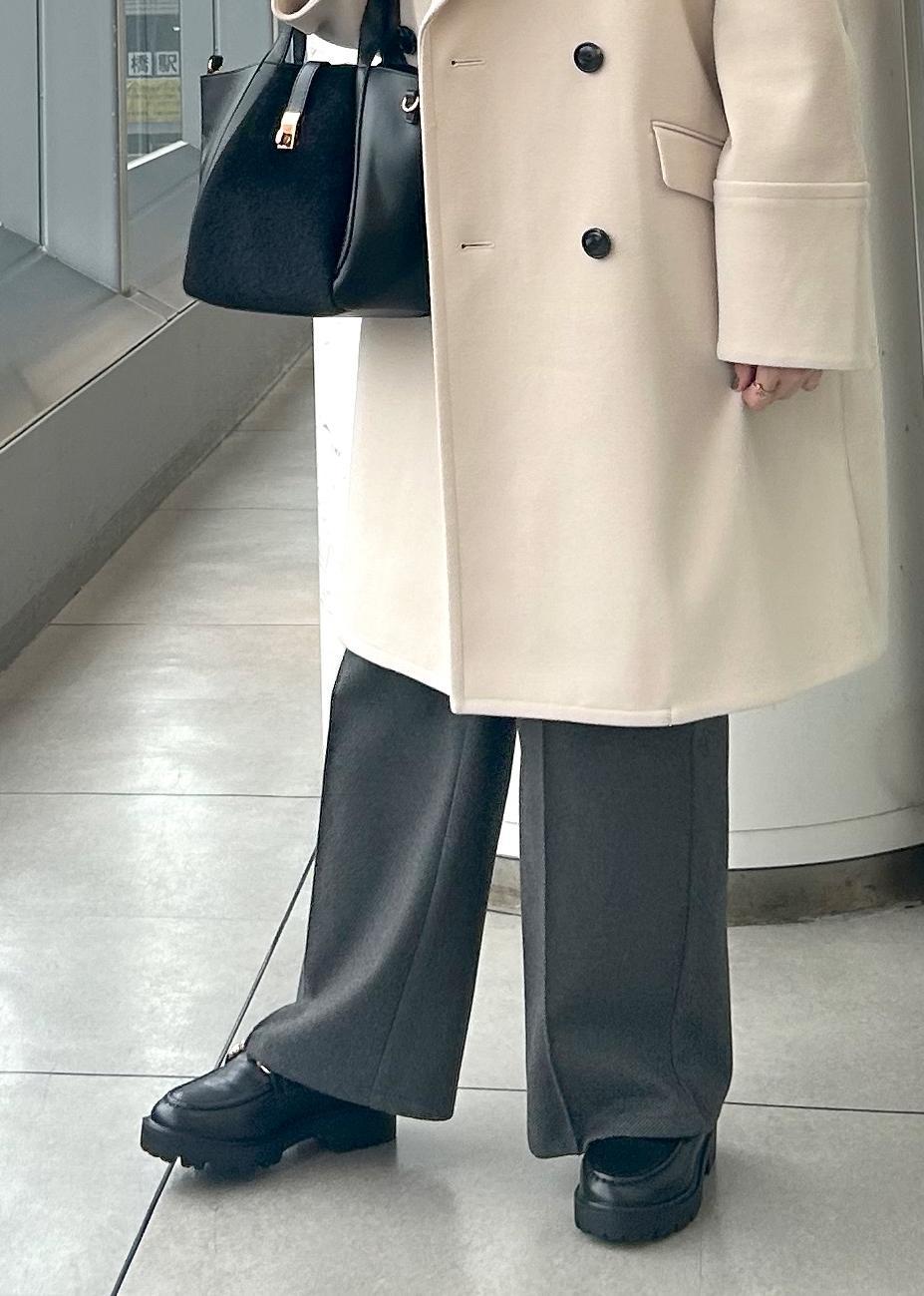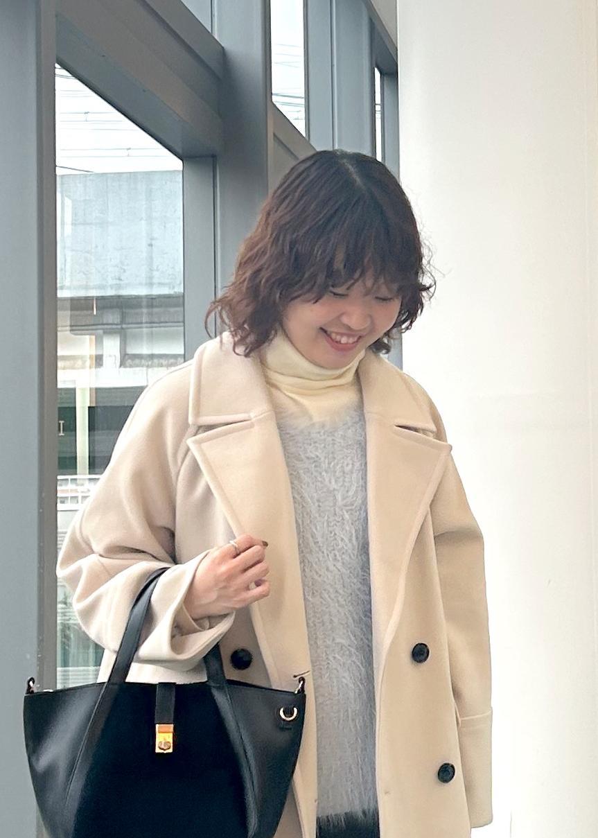 ロングコートとハイネックを白に合わせ、冬らしいコーデをしました。