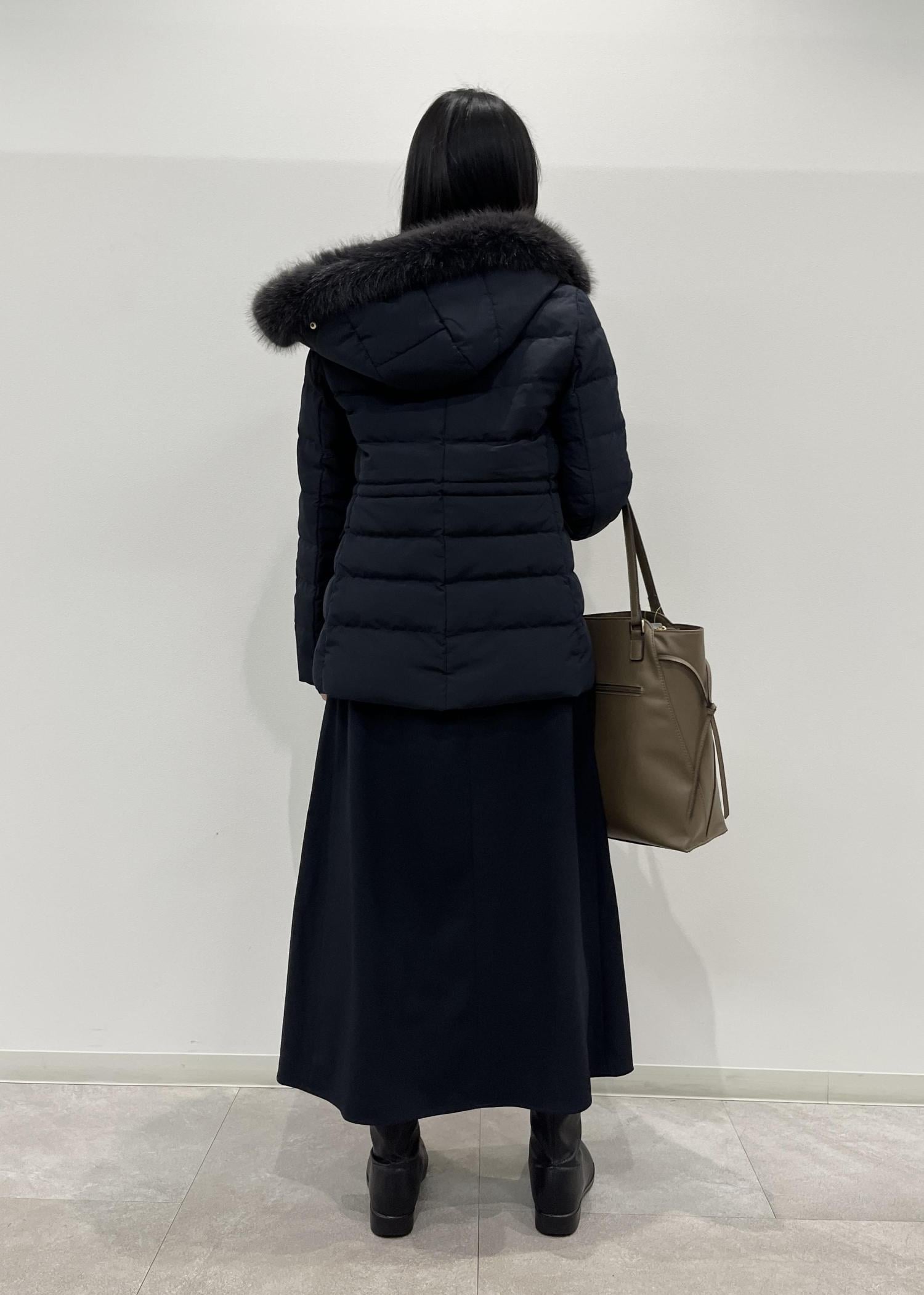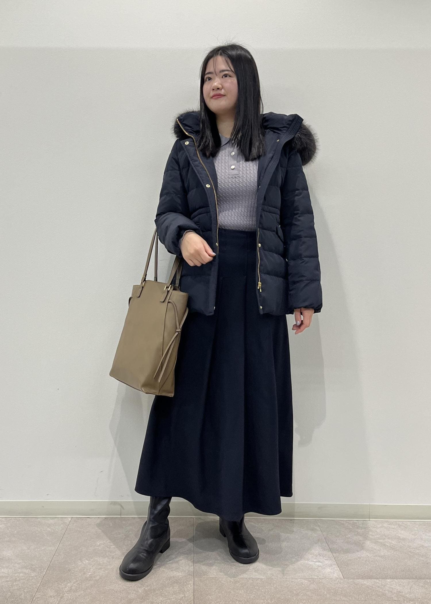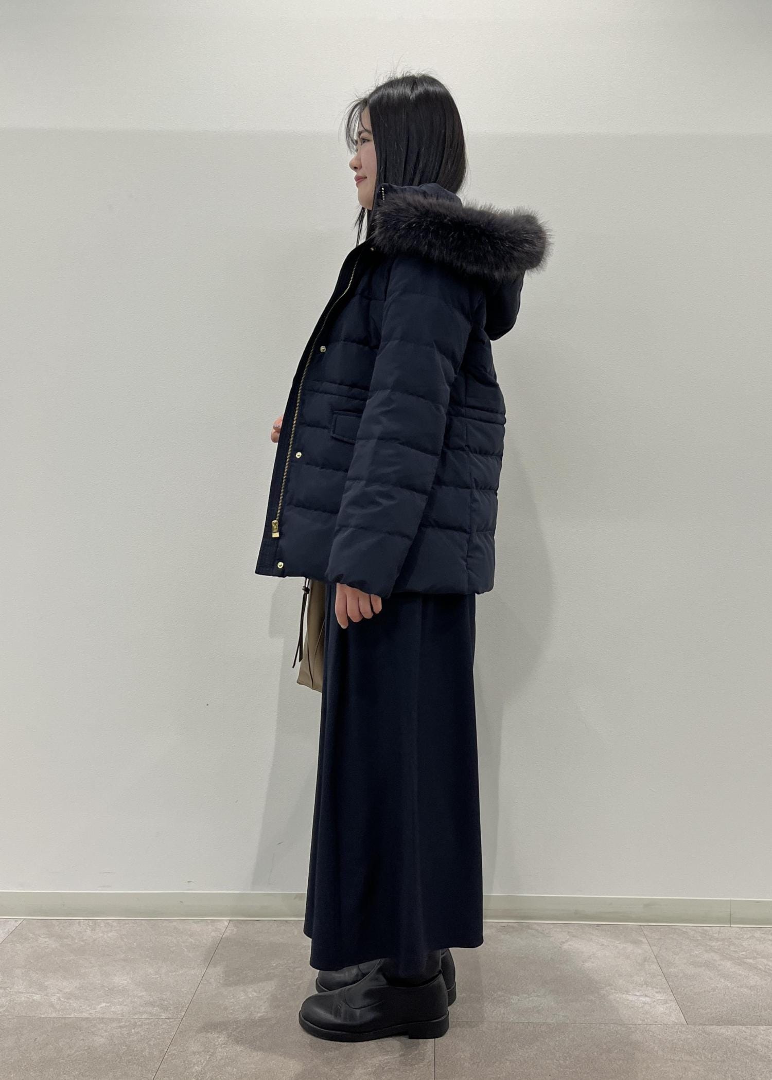 ROPÉ PICNIC【GREEN DOWN/グリーンダウン】ファー付きダウンミドル丈コート/リンクコーデネイビー / M¥18,700レビューニットを着ても少しゆとりがあるくらいのサイズ感です。