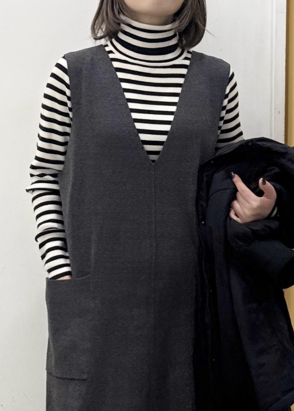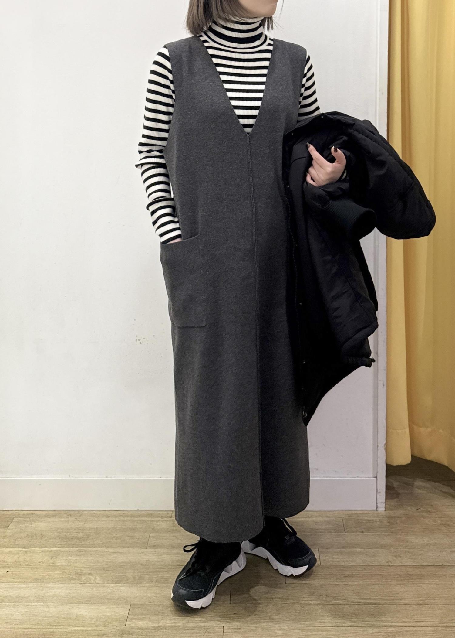 ニットジャンスカにボーダーニットでカジュアルな楽チンコーディネートに!