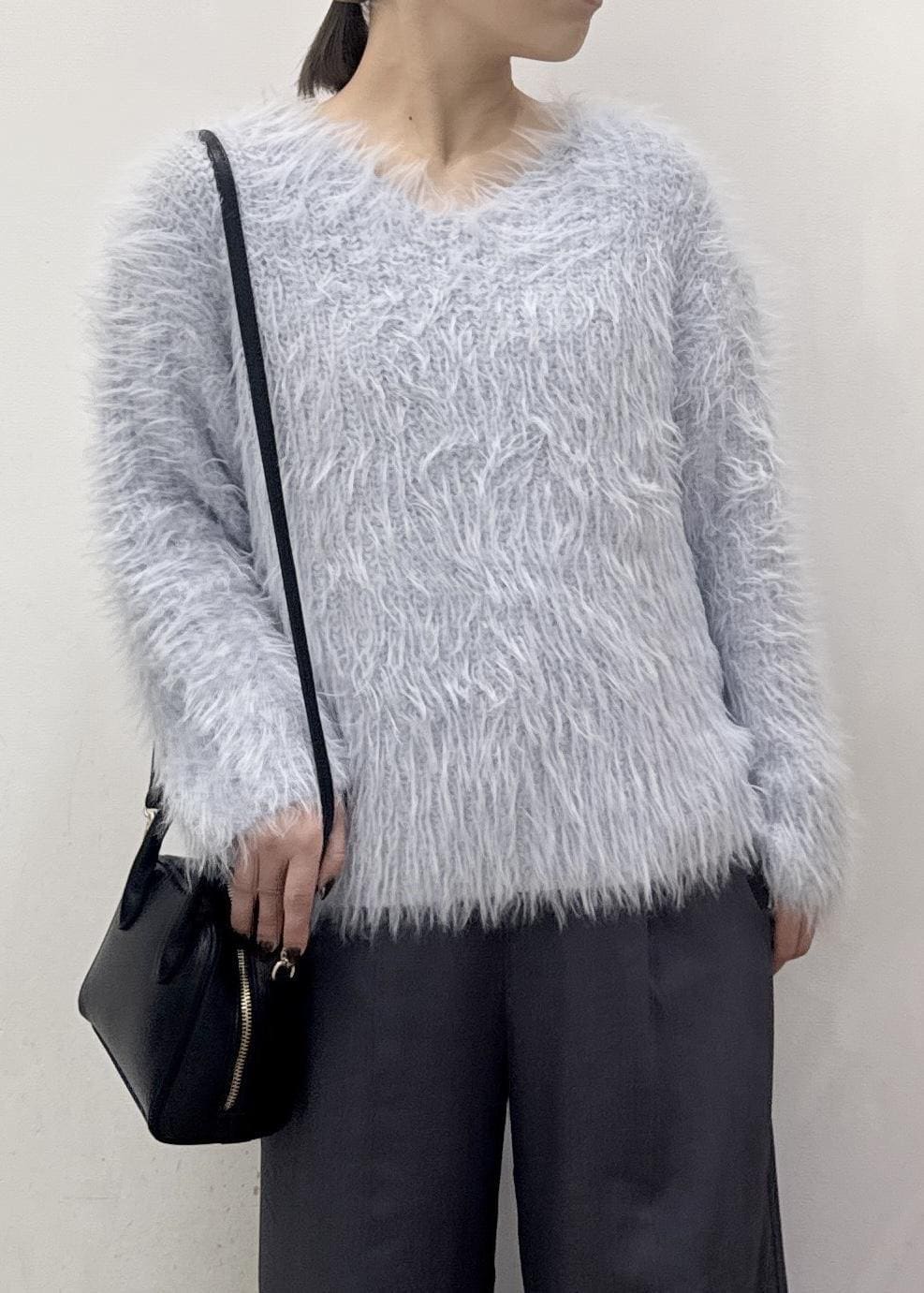 毛足長めのシャギーニットで、肌触りが柔らかく着心地◎ -