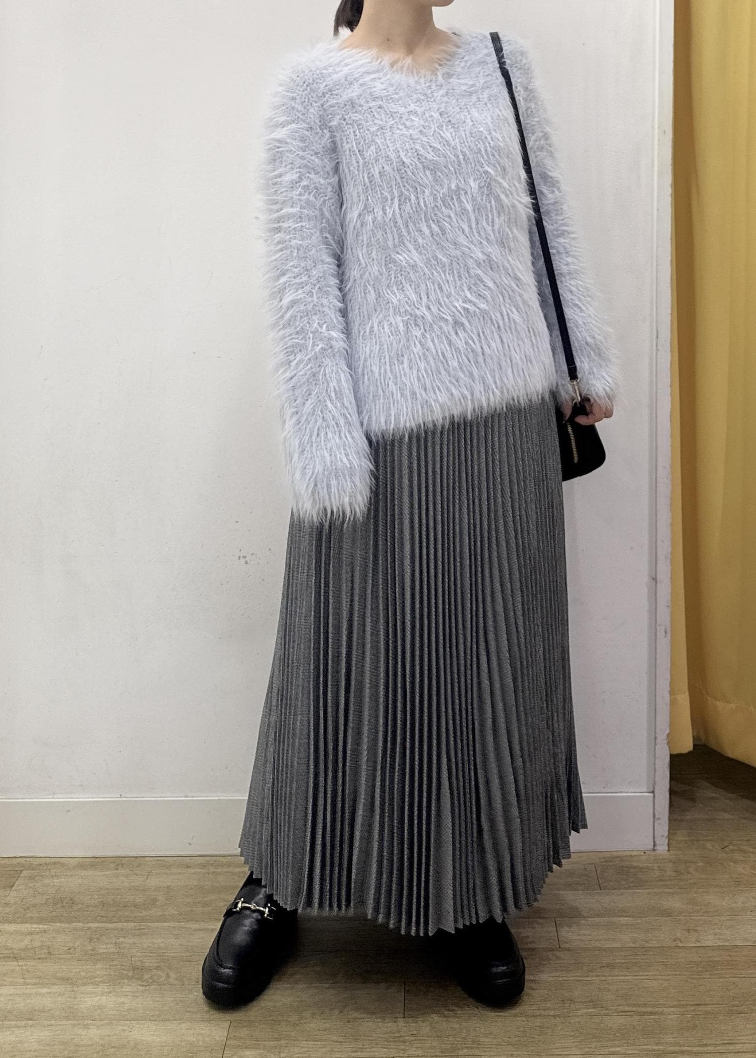 毛足長めのシャギーニットで、肌触りが柔らかく着心地◎ -