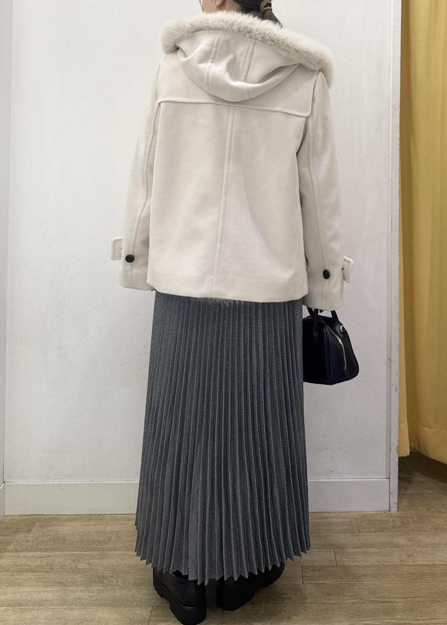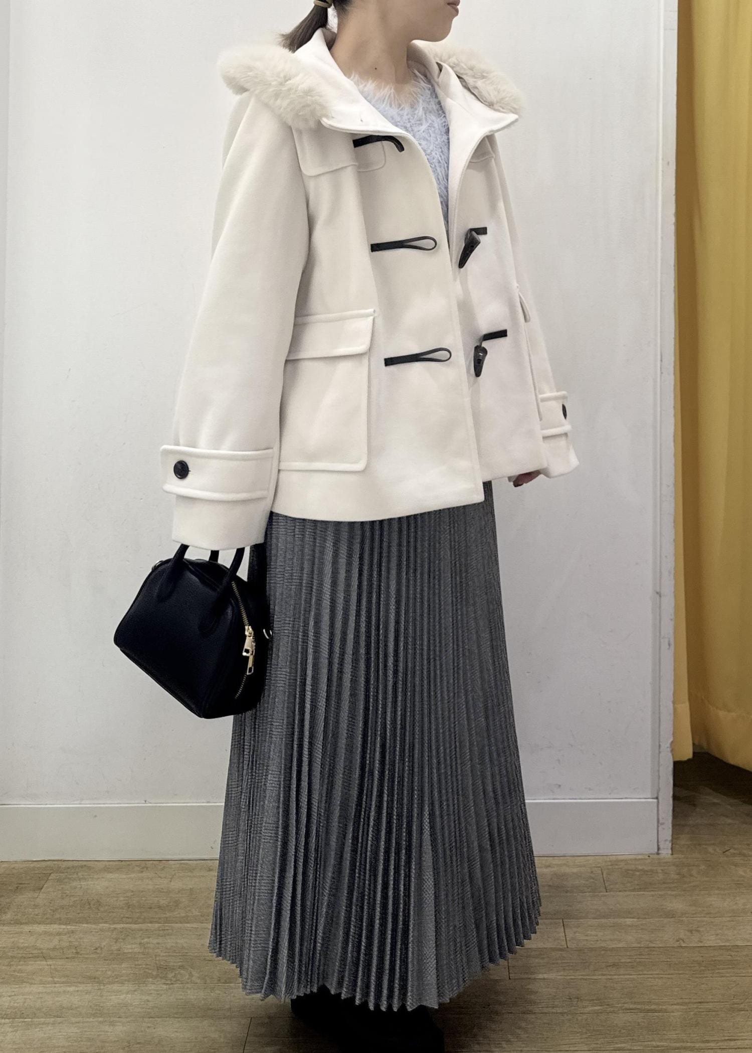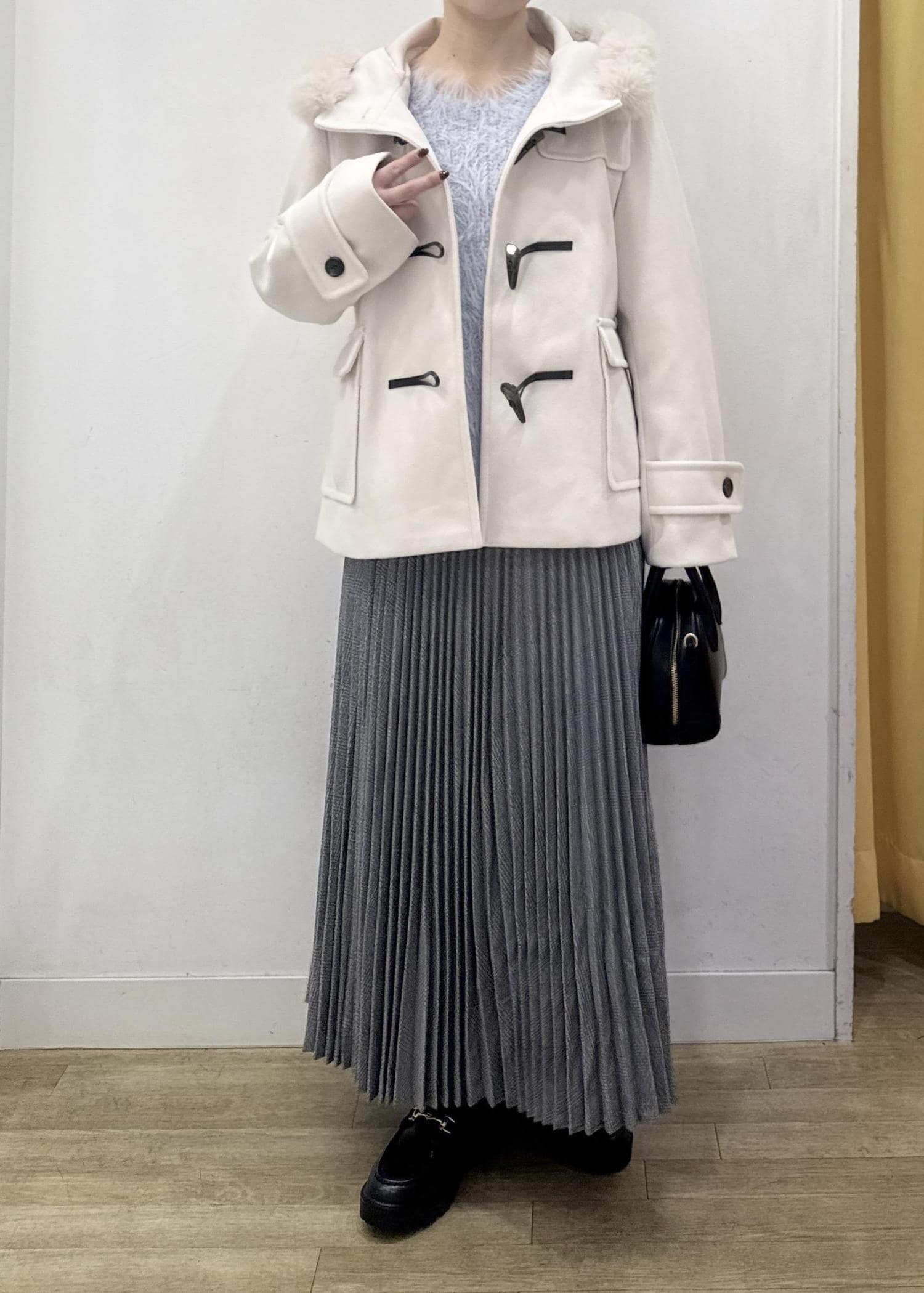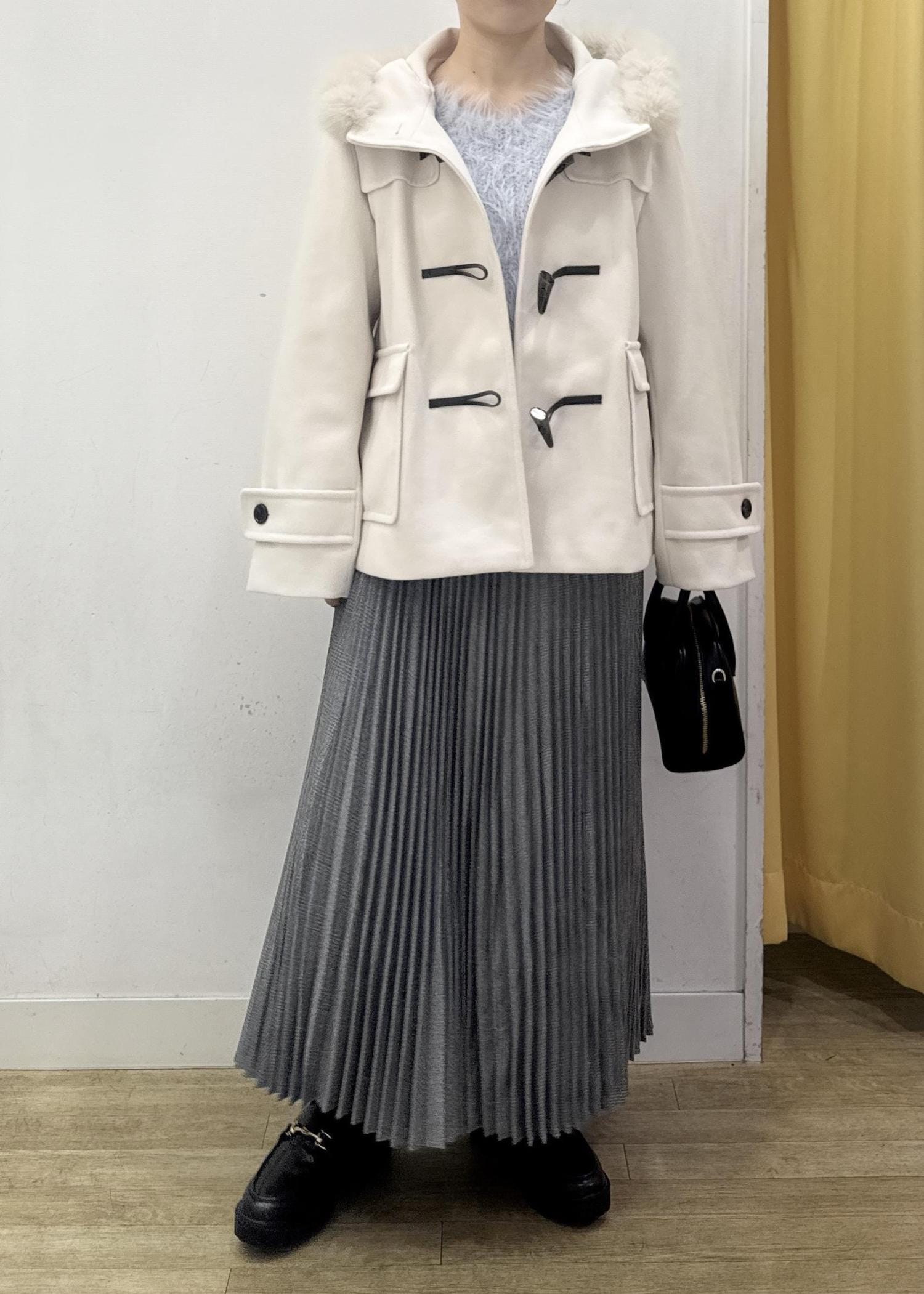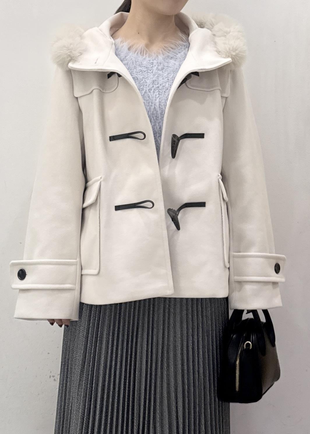 白のダッフルコートは可愛いコーディネートにピッタリ!