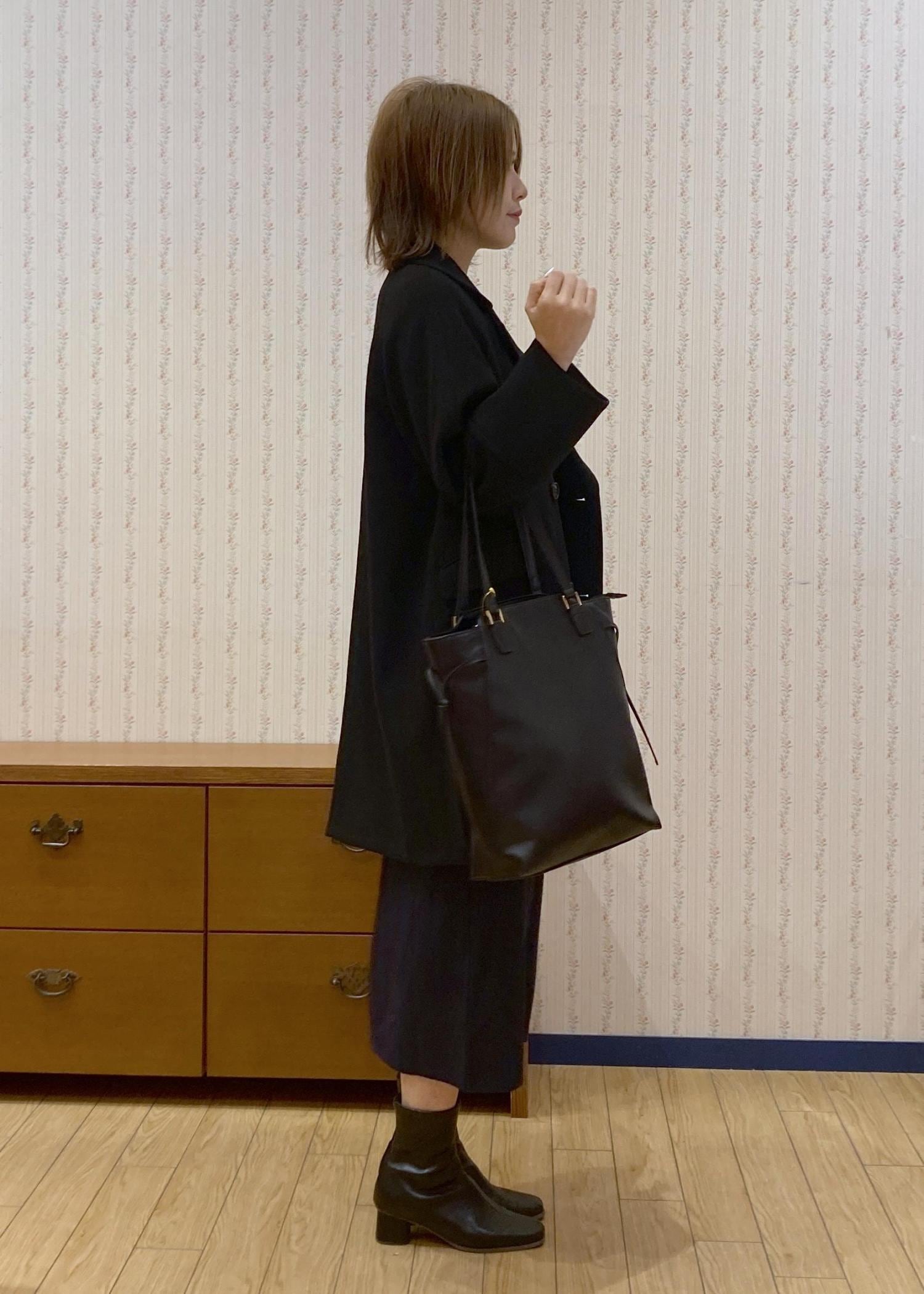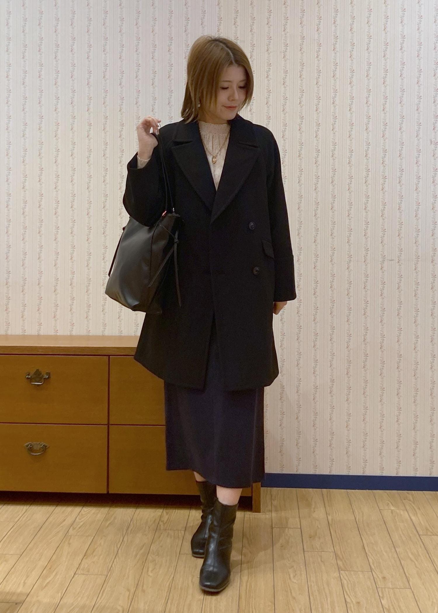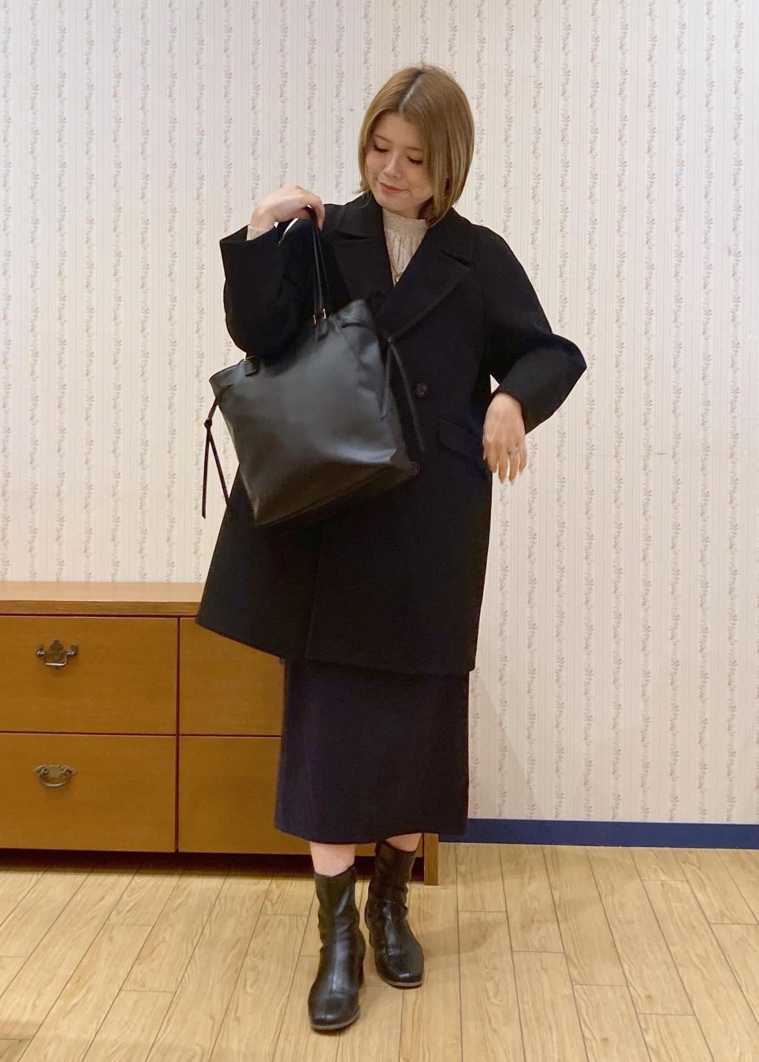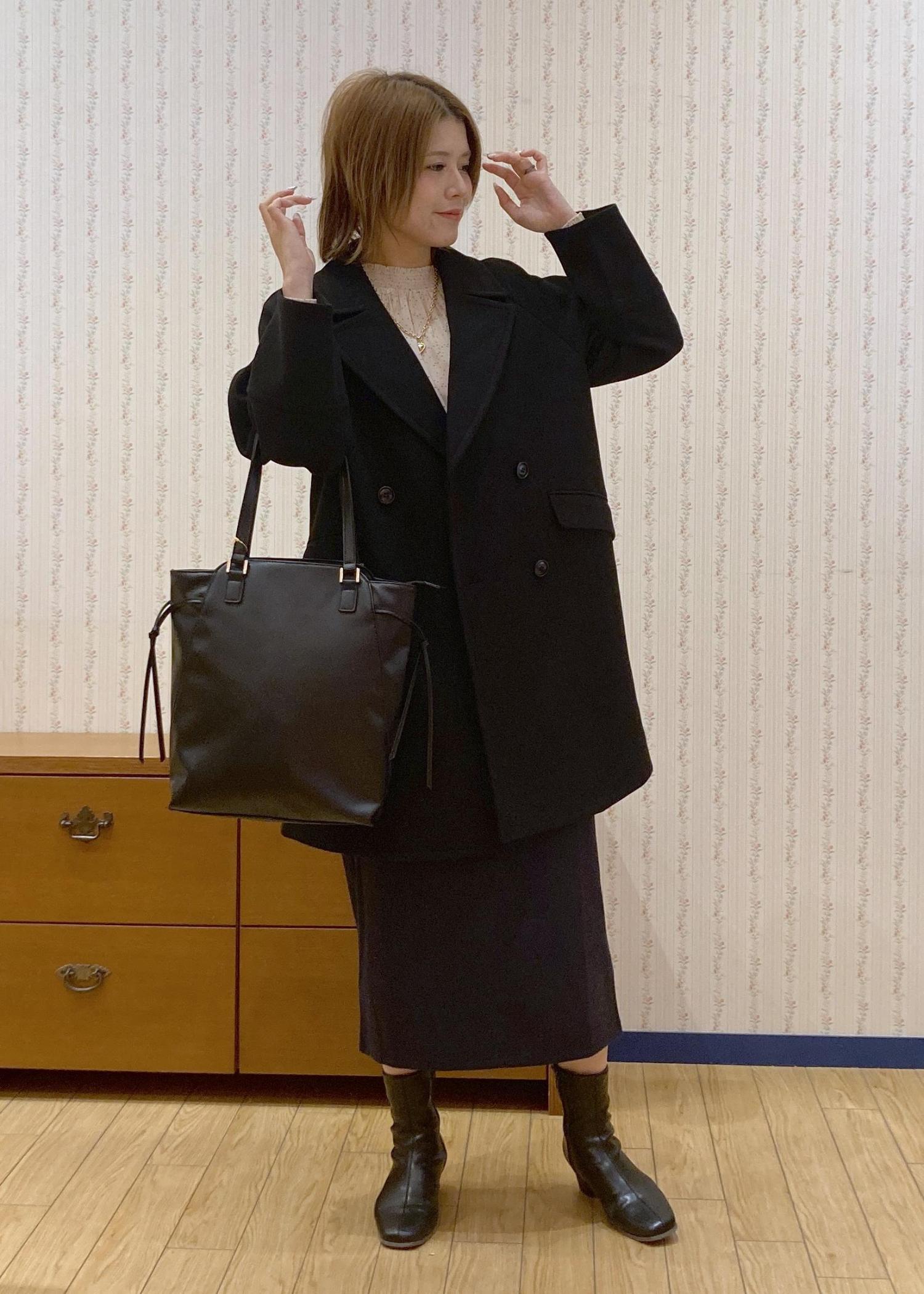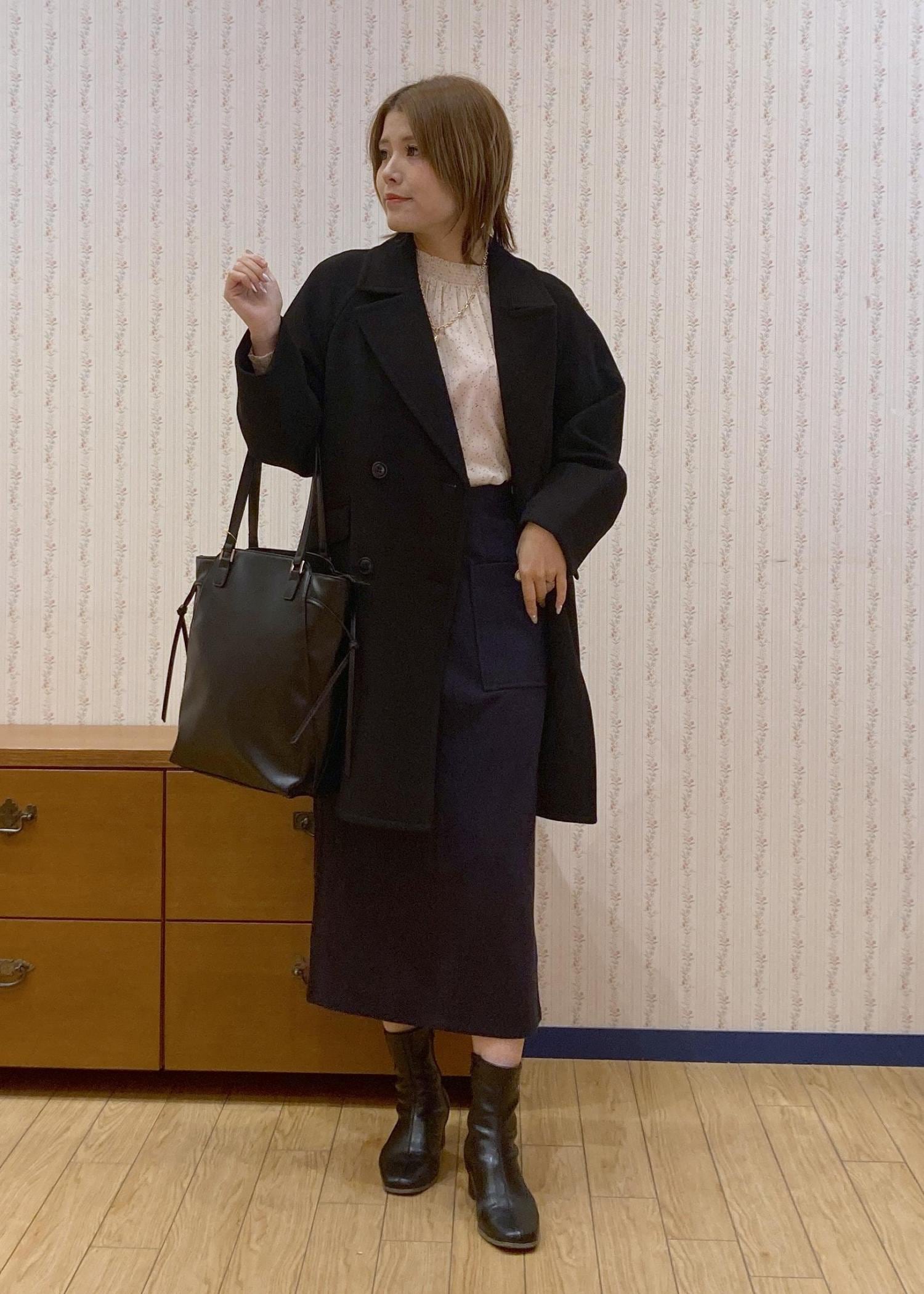 ブラウス×アイラインスカートでスッキリした縦のラインを意識したので、アウターはオーバーサイズのPコートを合わせてきちんと感が出すぎないように調整したのがポイントです!