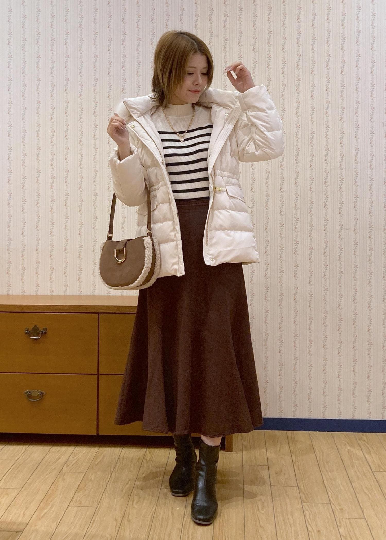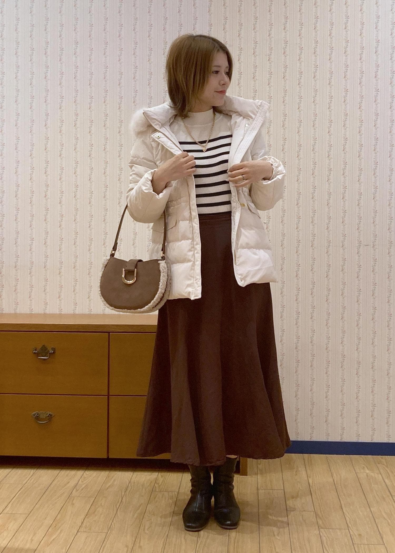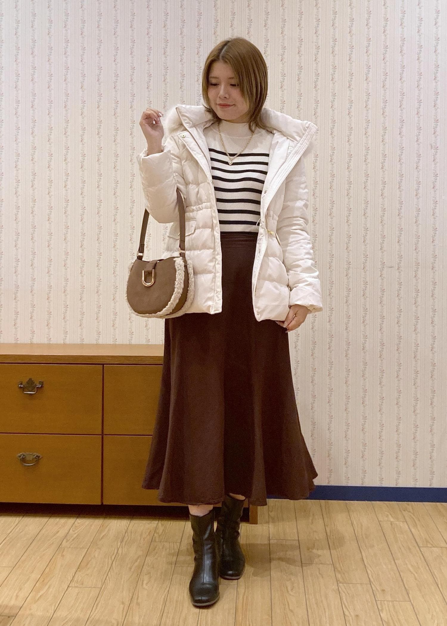 ホワイト、ブラウン、ブラックでまとめて大人っぽい雰囲気に仕上げました!