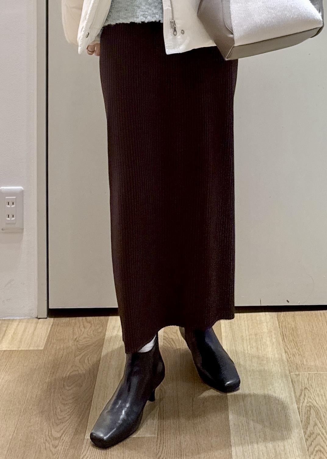 ROPÉ PICNICトタンテレコ Iラインリブニットスカートダークブラウン / 38¥4,499レビューきれいめなタイトシルエットですが、ウエストゴムとストレッチが効いて、履きやすく動きやすいです◎