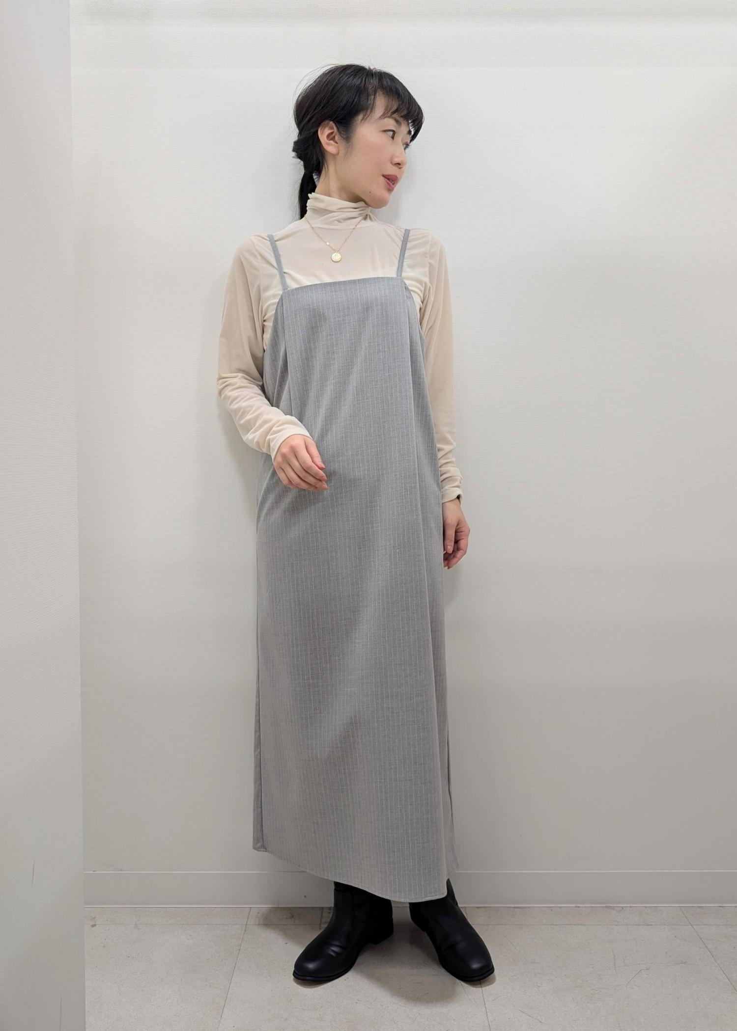シアー感あるインナーとアイラインのキャミワンピースで