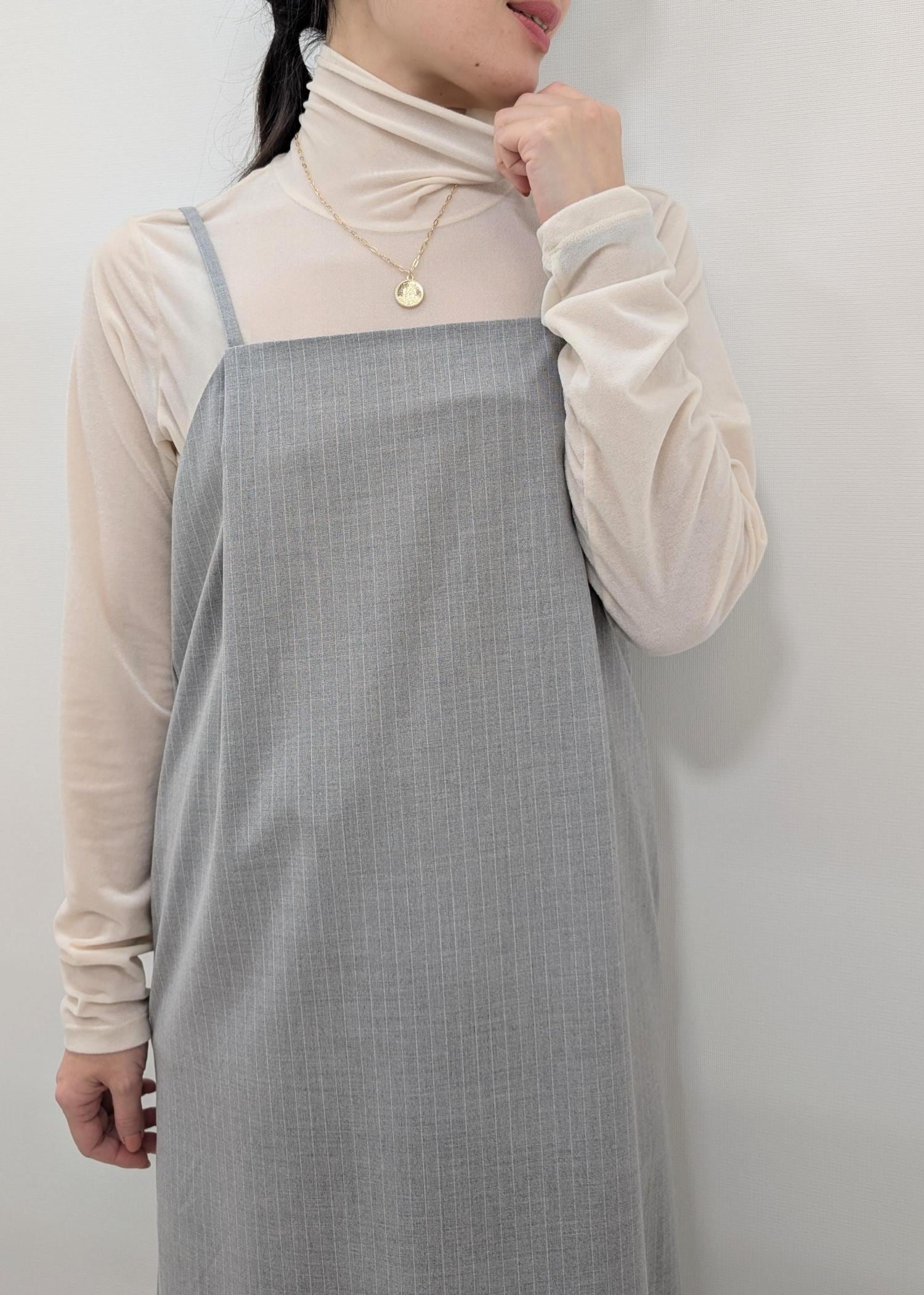 光沢とシアー感が今っぽいインナーなので、ベーシックなシャツワンピ、ジャケット、シャツなどと合わせるとお手持ちのお洋服の鮮度アップします! -
