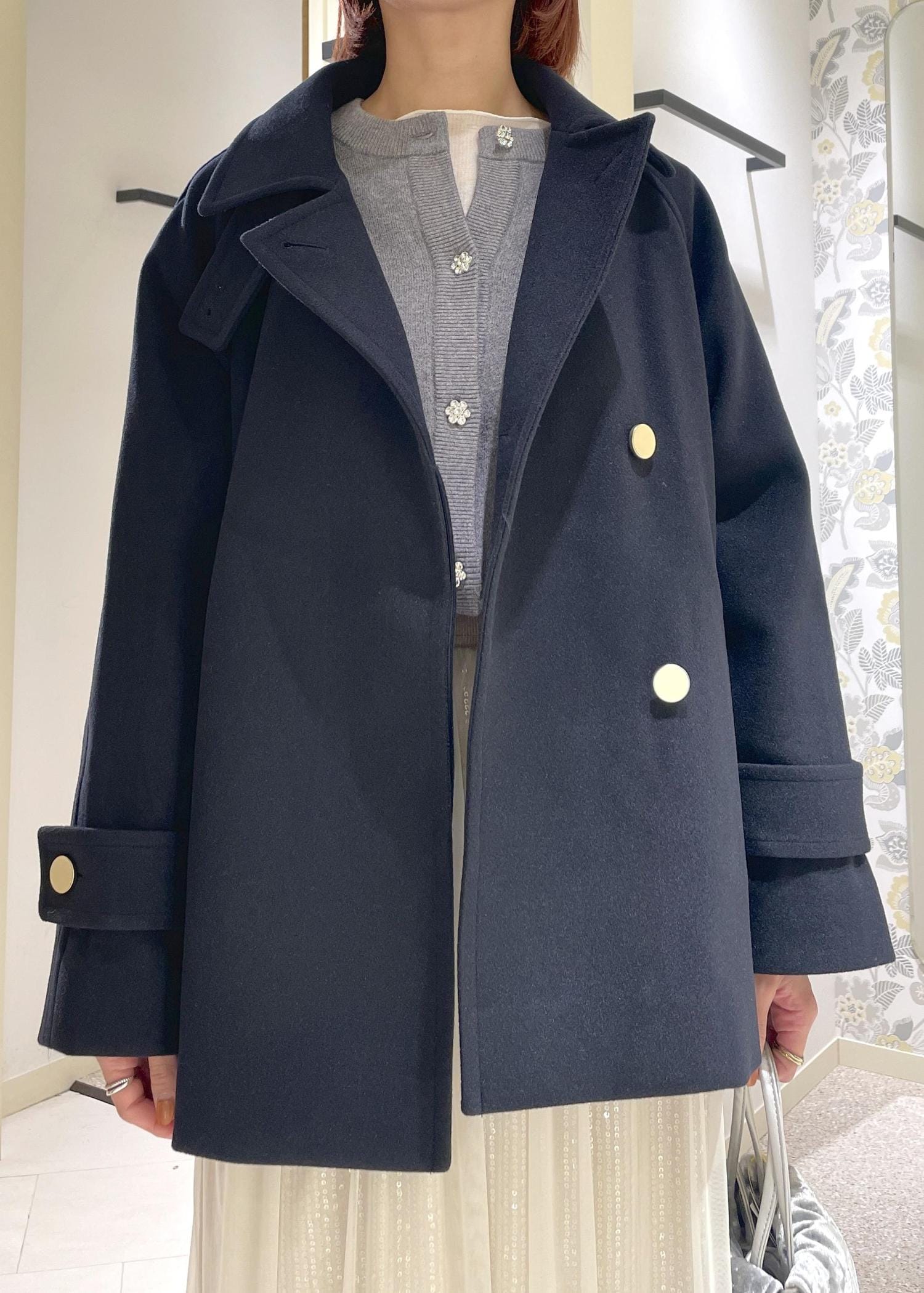 ROPÉ PICNICジャージーメルトンシリーズ 金ボタンミドル丈コート/リンクコーデネイビー / F¥10,989レビュージャージメルトンのふっくらとした温かみのあるミドル丈コート。