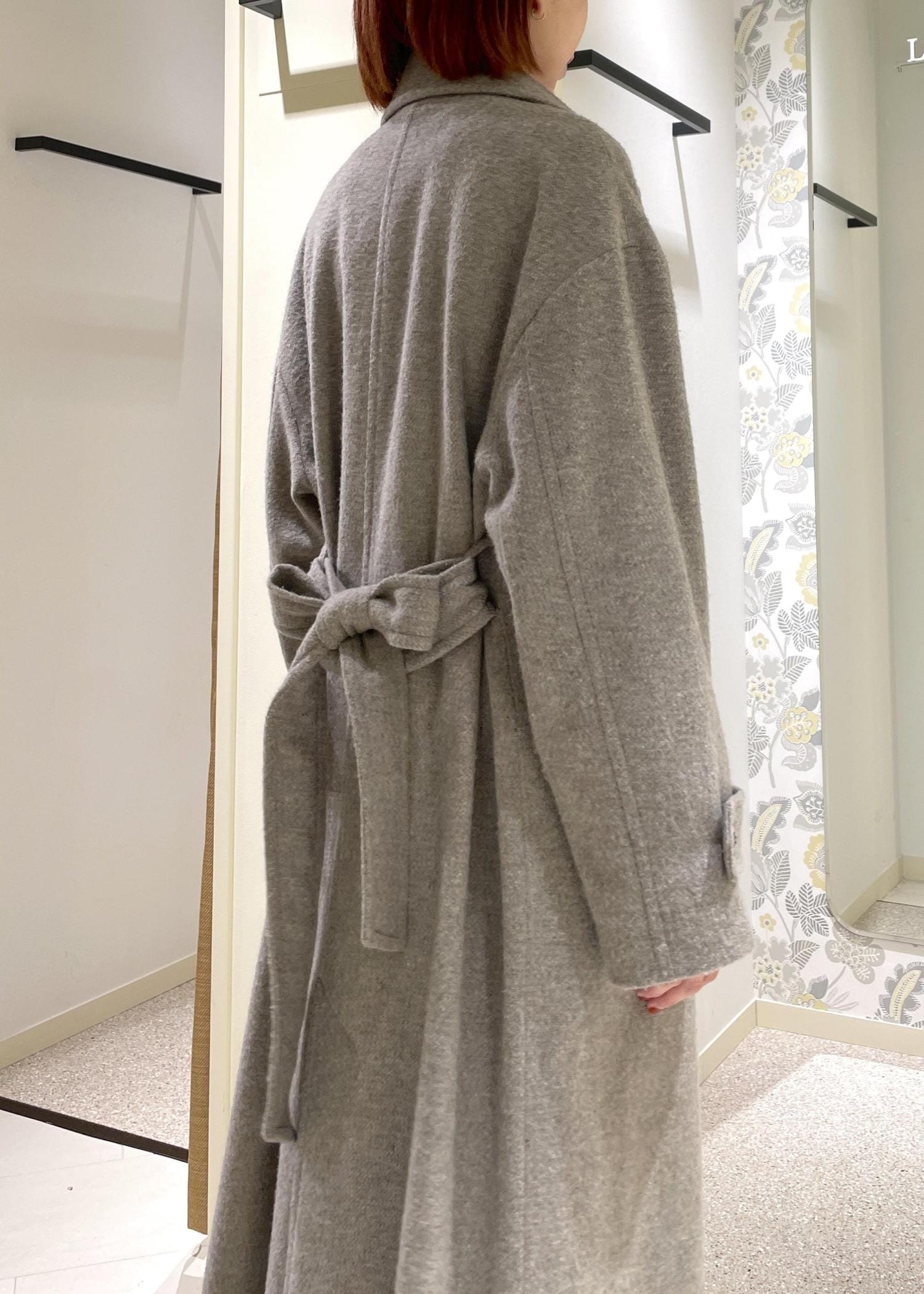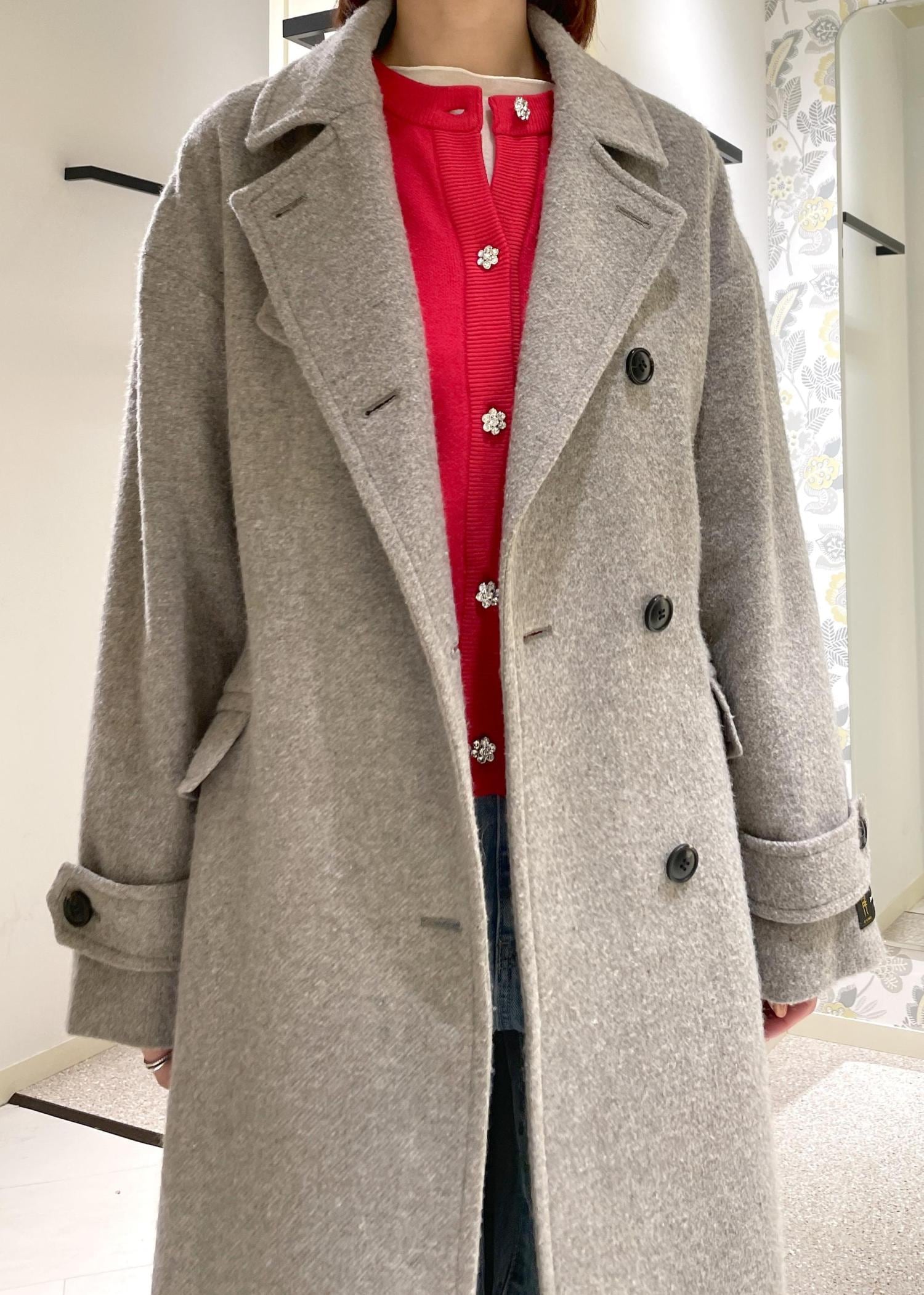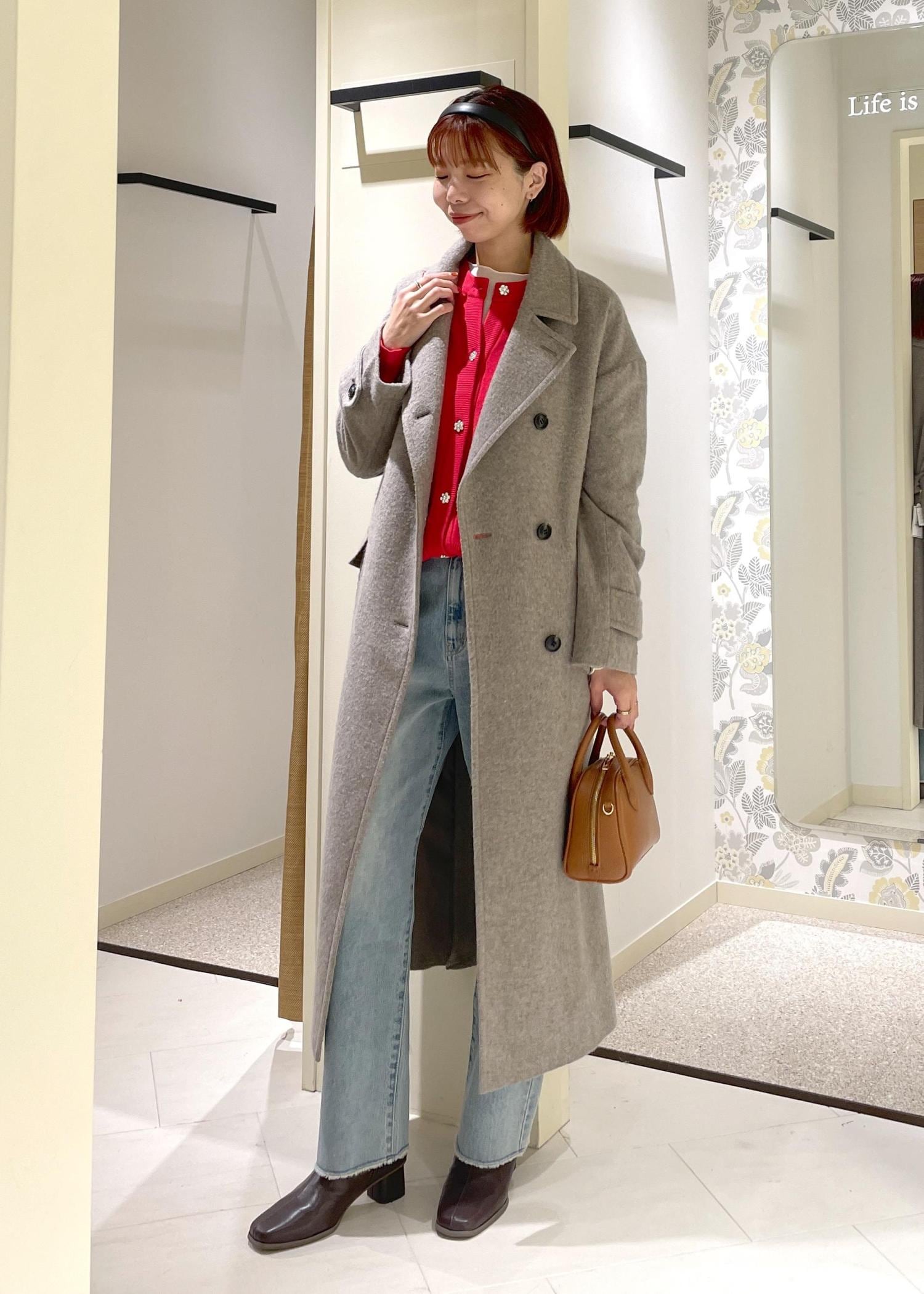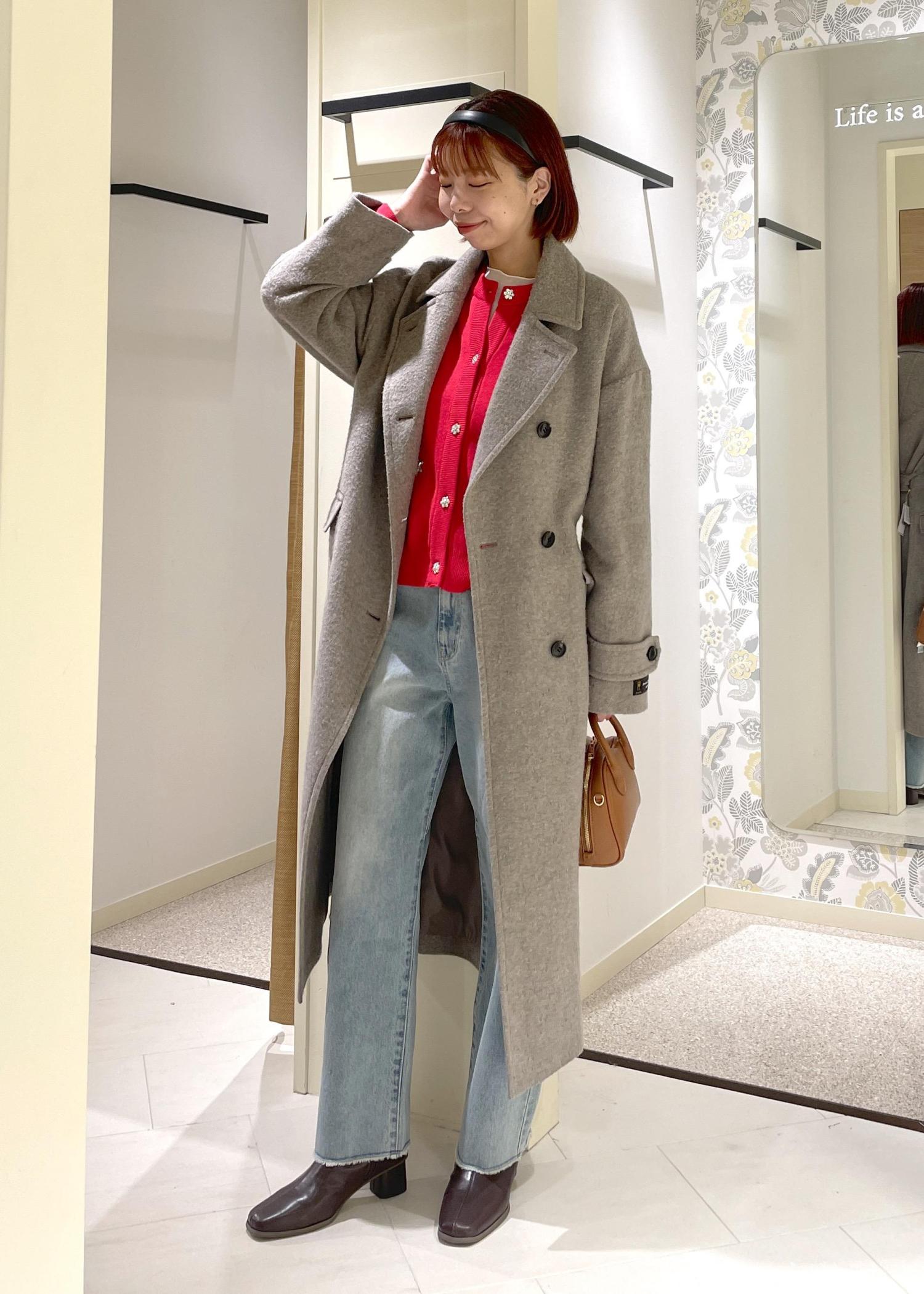 着丈は、膝下でロング丈ですが、ボタンやポケット位置が高く、ネックのデザインもあり、重量感を感じずバランス良く着て頂けます。