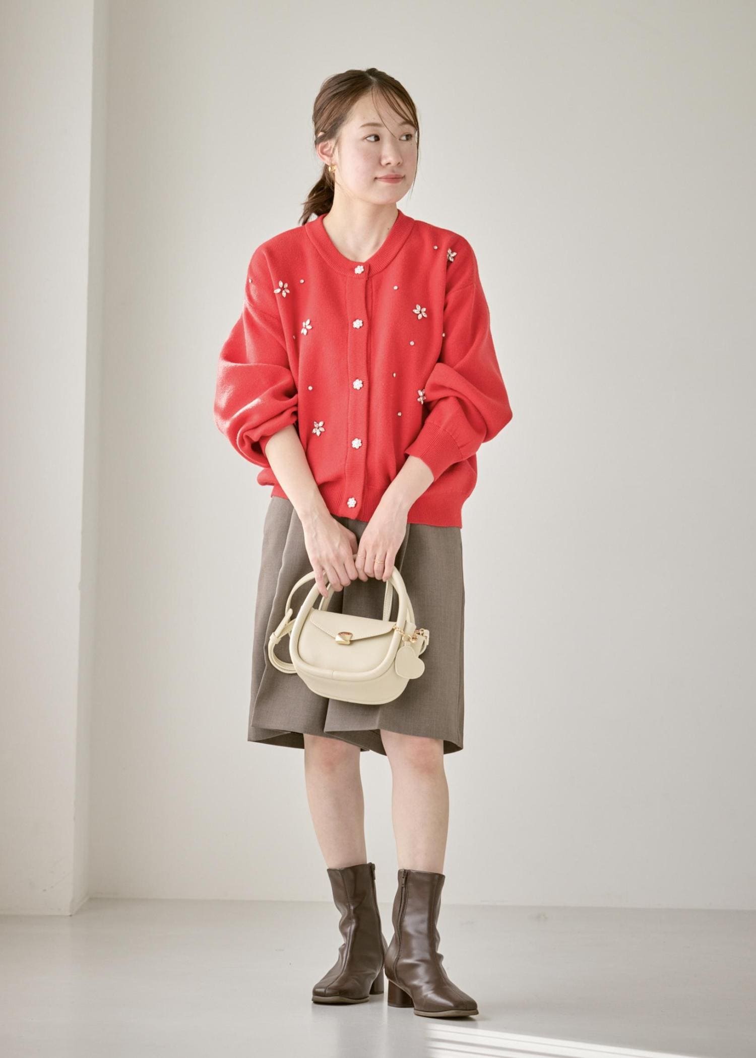 ビジューカーデのホリデーコーデ