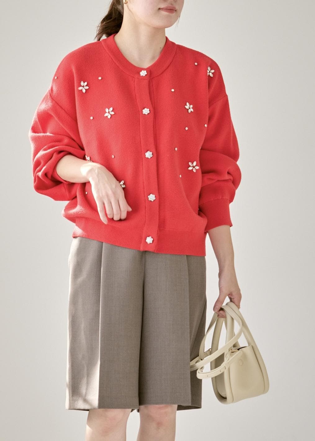 ROPÉ PICNICビジューニットカーディガンレッド / F¥5,995レビューもちっとした厚みのあるカーディガンで、立体感のあるビジューが付いており華やかな印象になります。