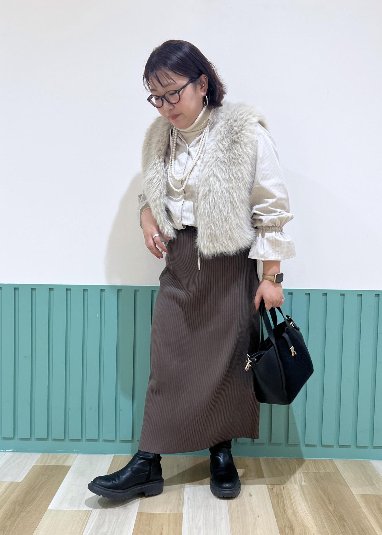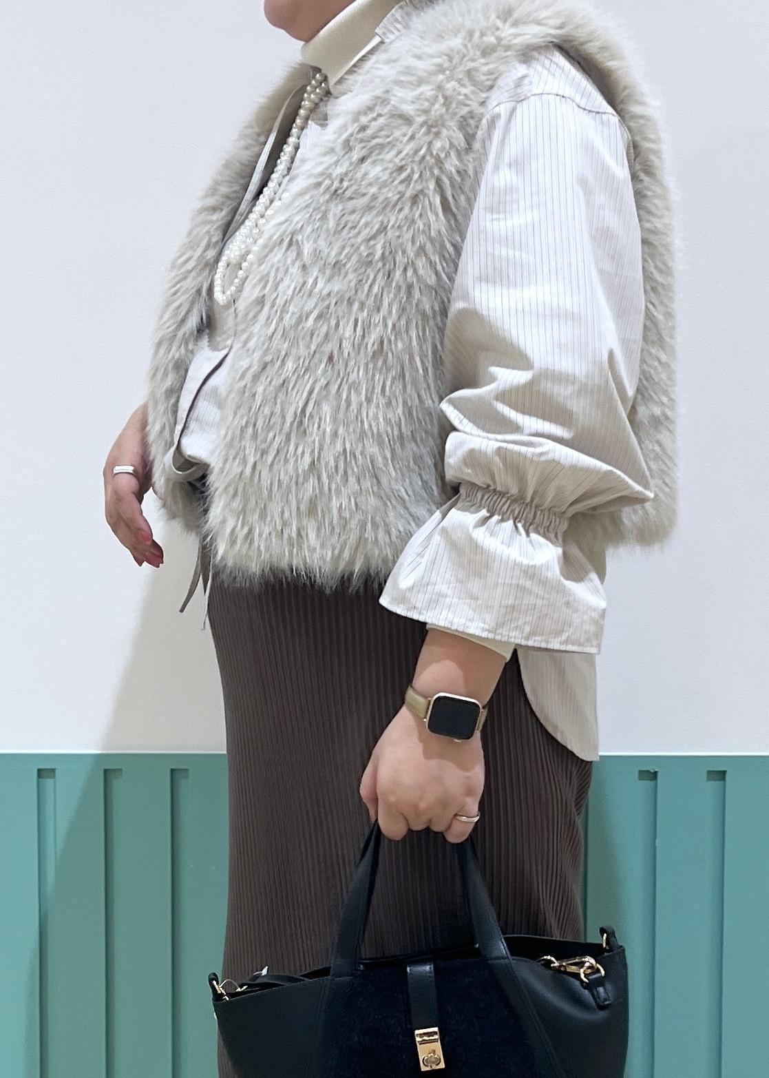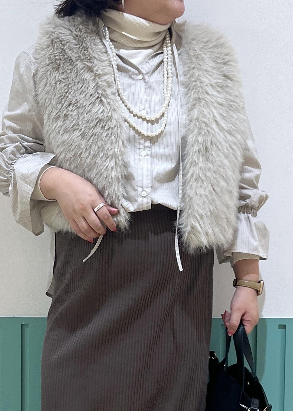 ROPÉ PICNICファーベストベージュ / F¥6,996レビュー軽めのファーでサラッと羽織りやすい♪