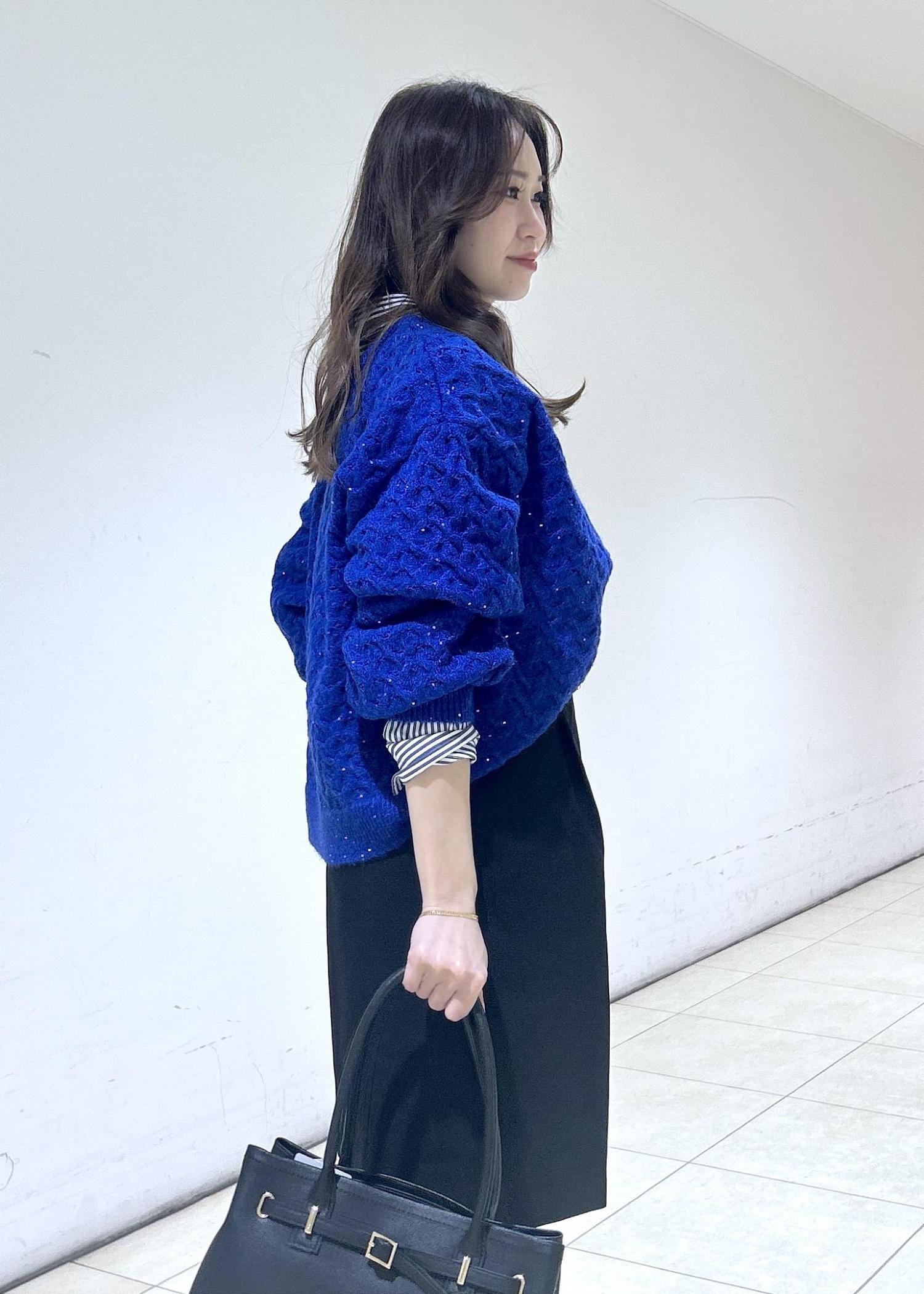 ROPÉ PICNICミニフラワースパンコールニットブルー / F¥5,995レビュー首元がVネックでみごろ、お袖周りはゆったりめなので着用しやすいです。