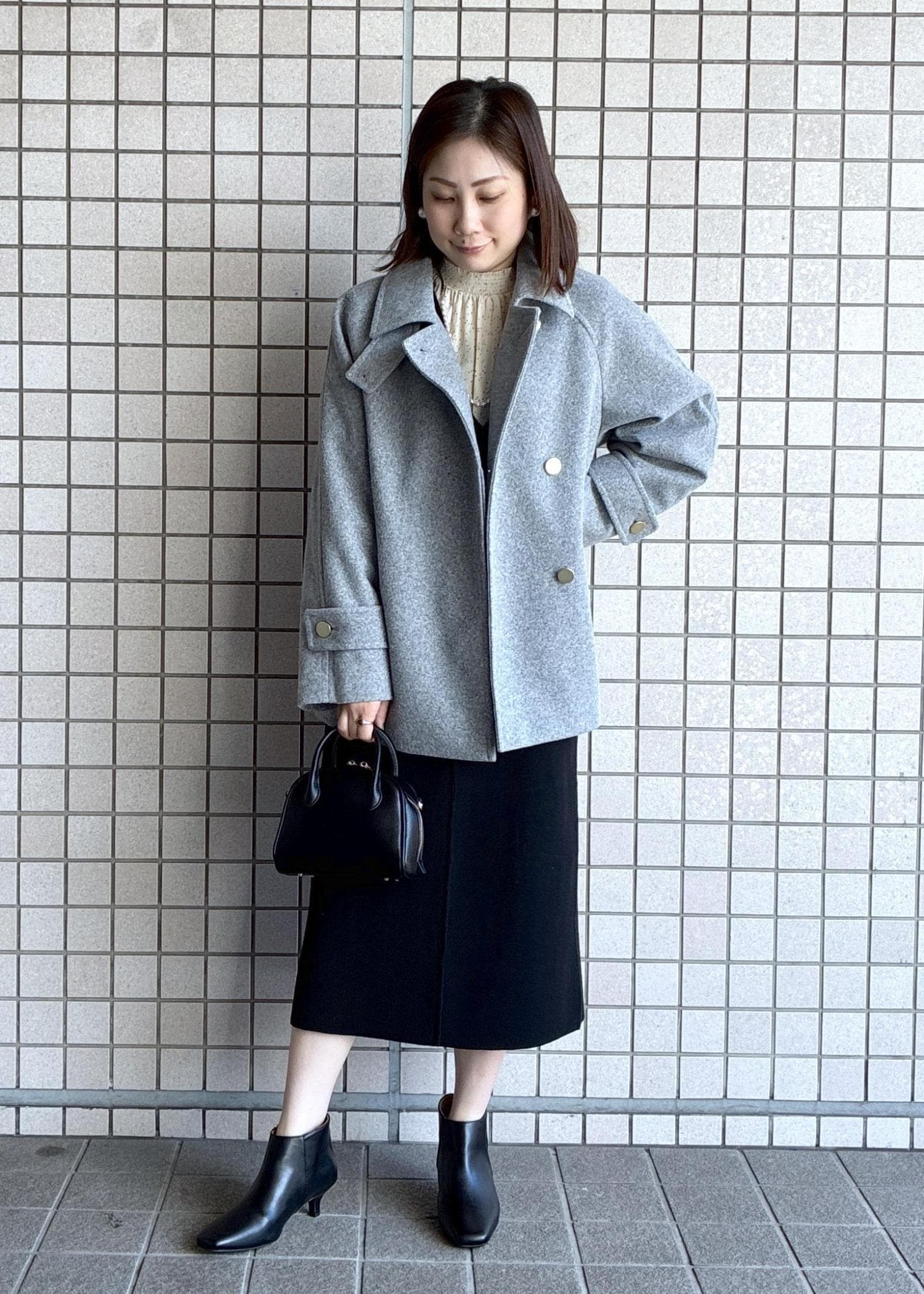 ROPÉ PICNICジャージーメルトンシリーズ 金ボタンミドル丈コート/リンクコーデライトグレー / F¥10,989レビュー160センチでヒップが隠れる丈感です。ゆるっとしたシルエットのPコートで、普段使いからお仕事にも使えます。
