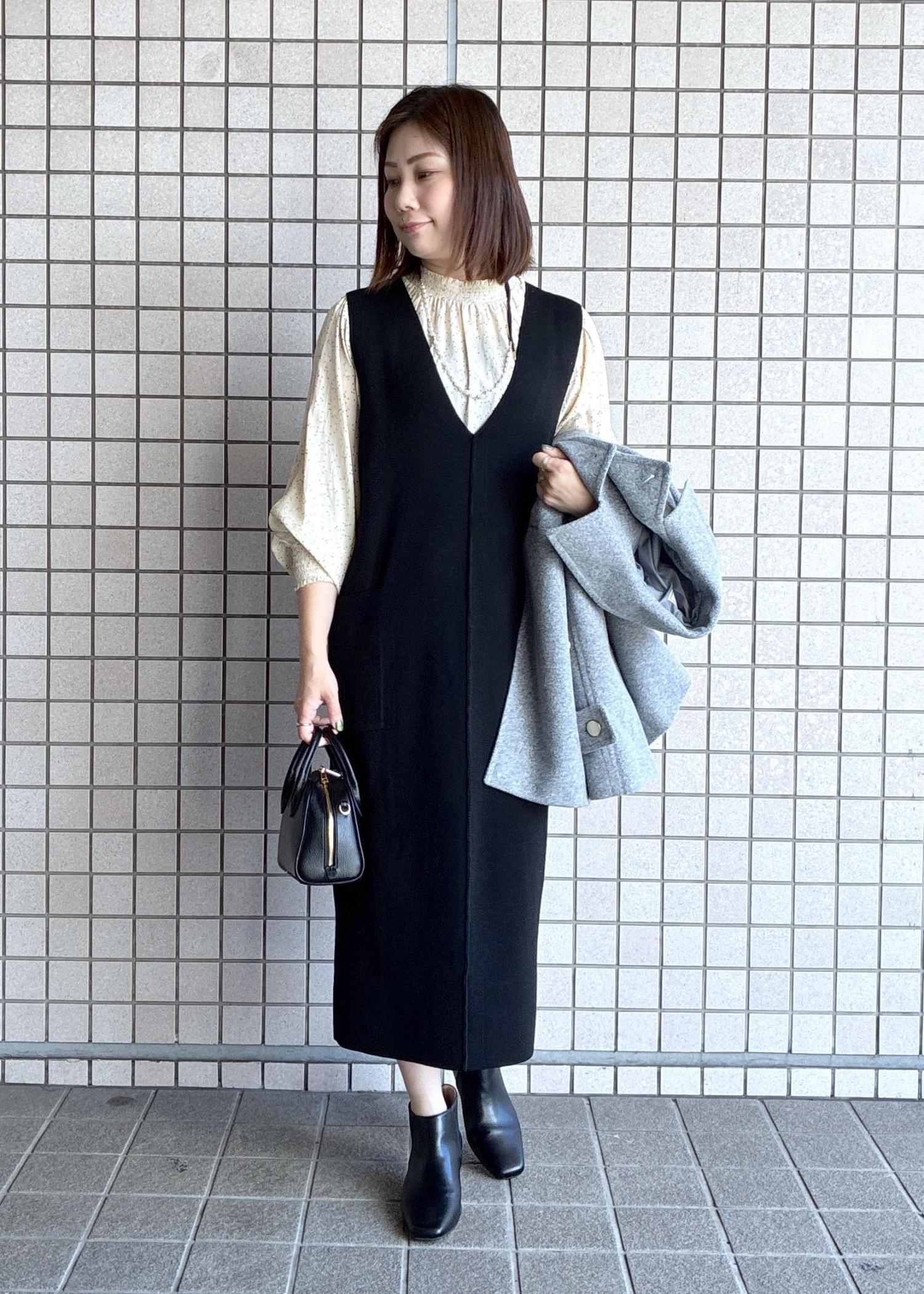 ROPÉ PICNICニットジャンパースカート/着丈が選べる・リンクコーデブラック / MT¥3,842レビュー160cmで膝下くらいの丈感でした。