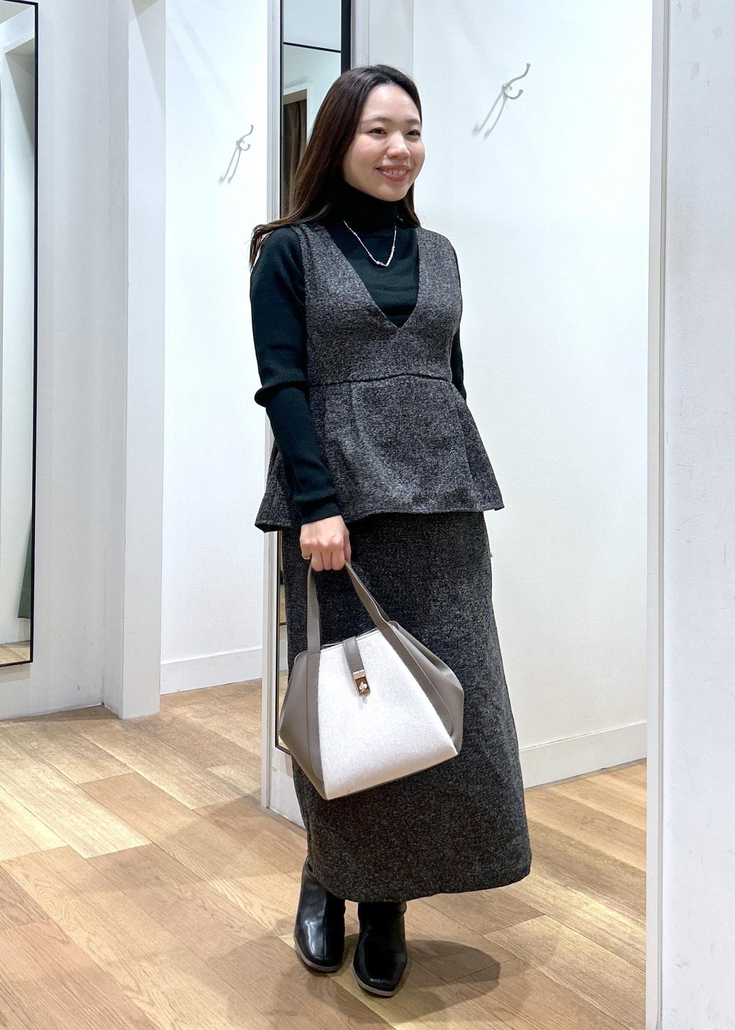 綺麗めスタイルには中央のベルトするとコンパクトなシルエットになり華奢見えします。 -