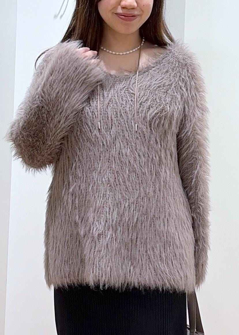 ROPÉ PICNICフェザーVネックニットブラウン系 / F¥5,489レビュー毛足が長いフェザーニットで一枚だけでも存在感が十分あり簡単に着映えします。