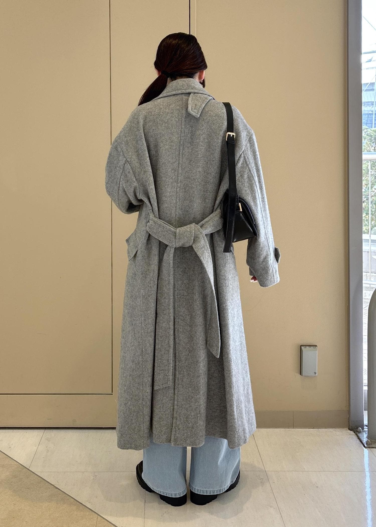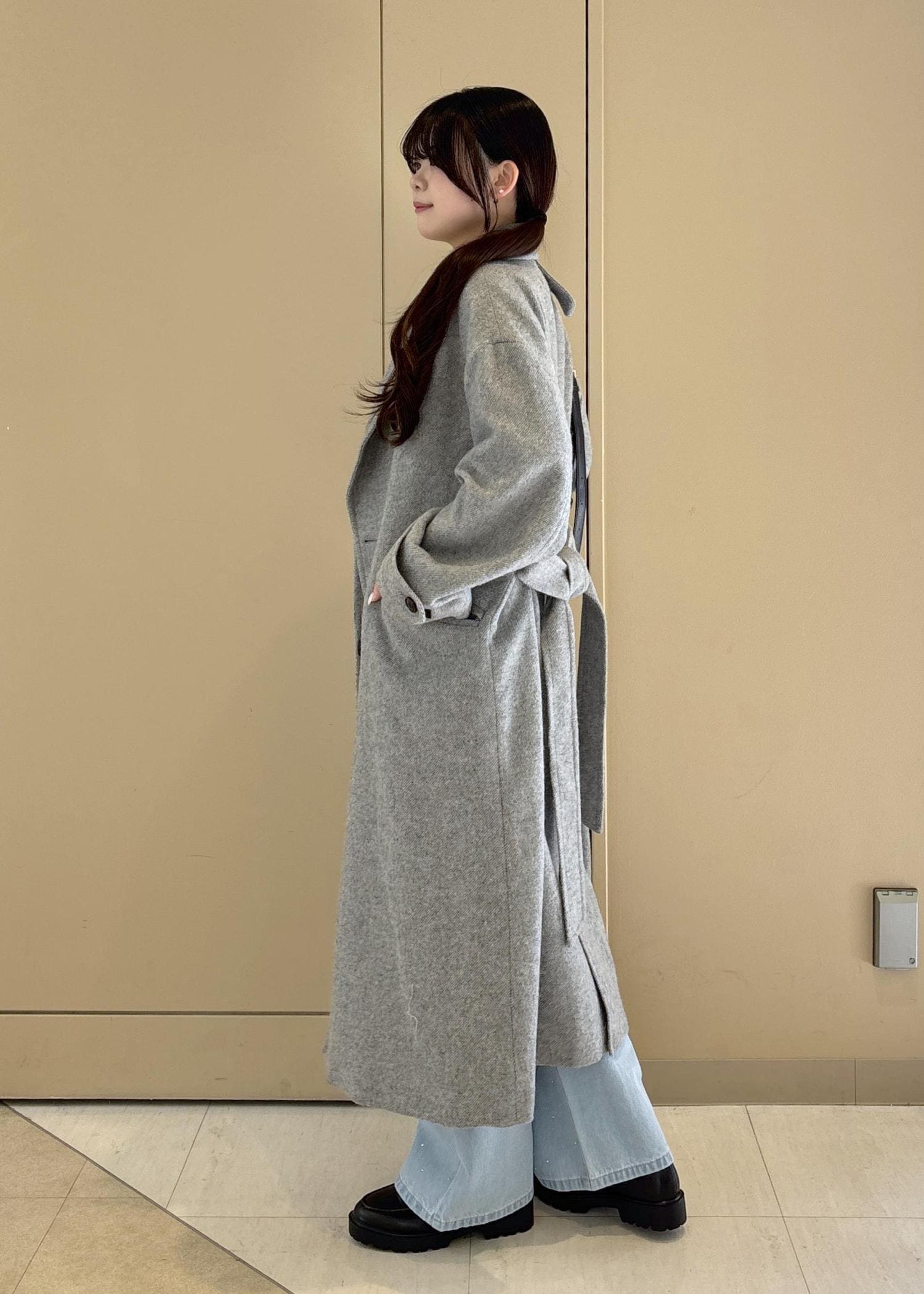 ROPÉ PICNICJAPAN FABRIC スタンドカラーロングコート/一部WEB限定カラーライトグレー / F¥19,800レビュー161cm/Fサイズで脛の真ん中あたりまでの丈感です。全体的にゆとりがあり、やや厚みのあるニットの上からでも余裕で羽織ることができました。たっぷりとした見た目からは想像できないほど軽量で、ストレスフリーに着用できるロングコートです。