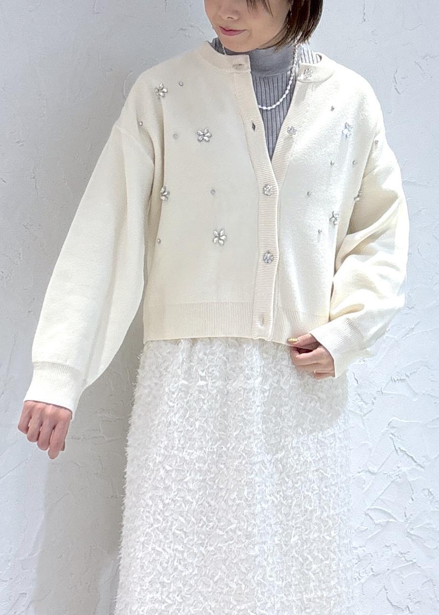 ビジューがコーディネートの主役になってくれるカーディガンです♪ -