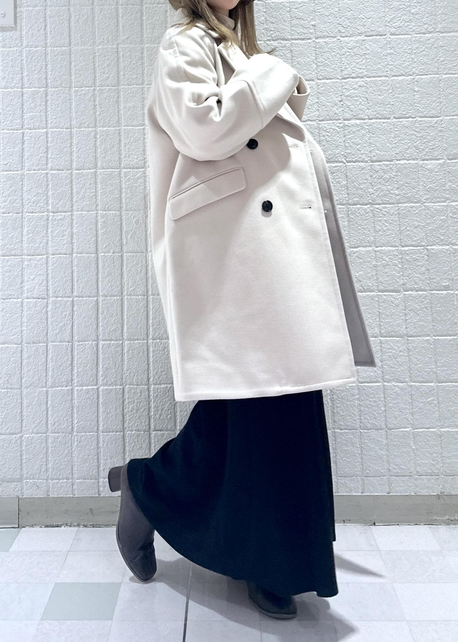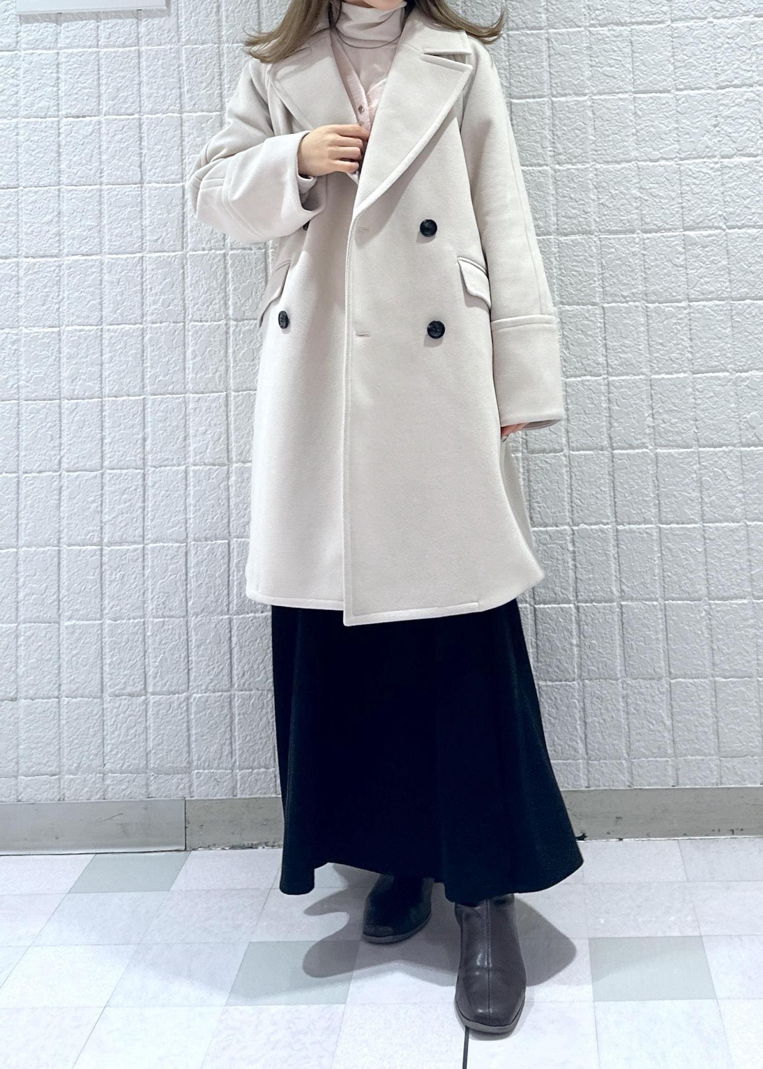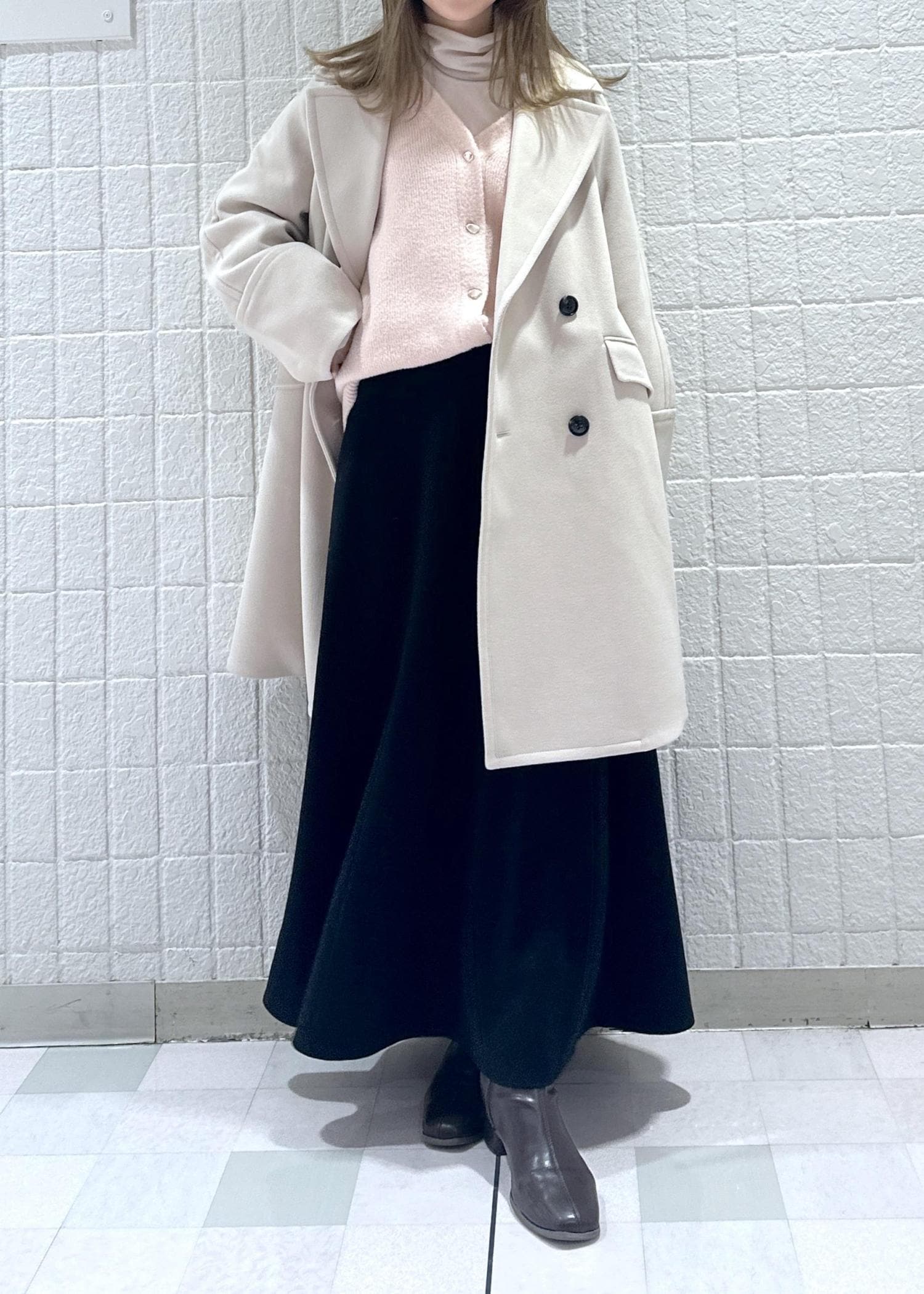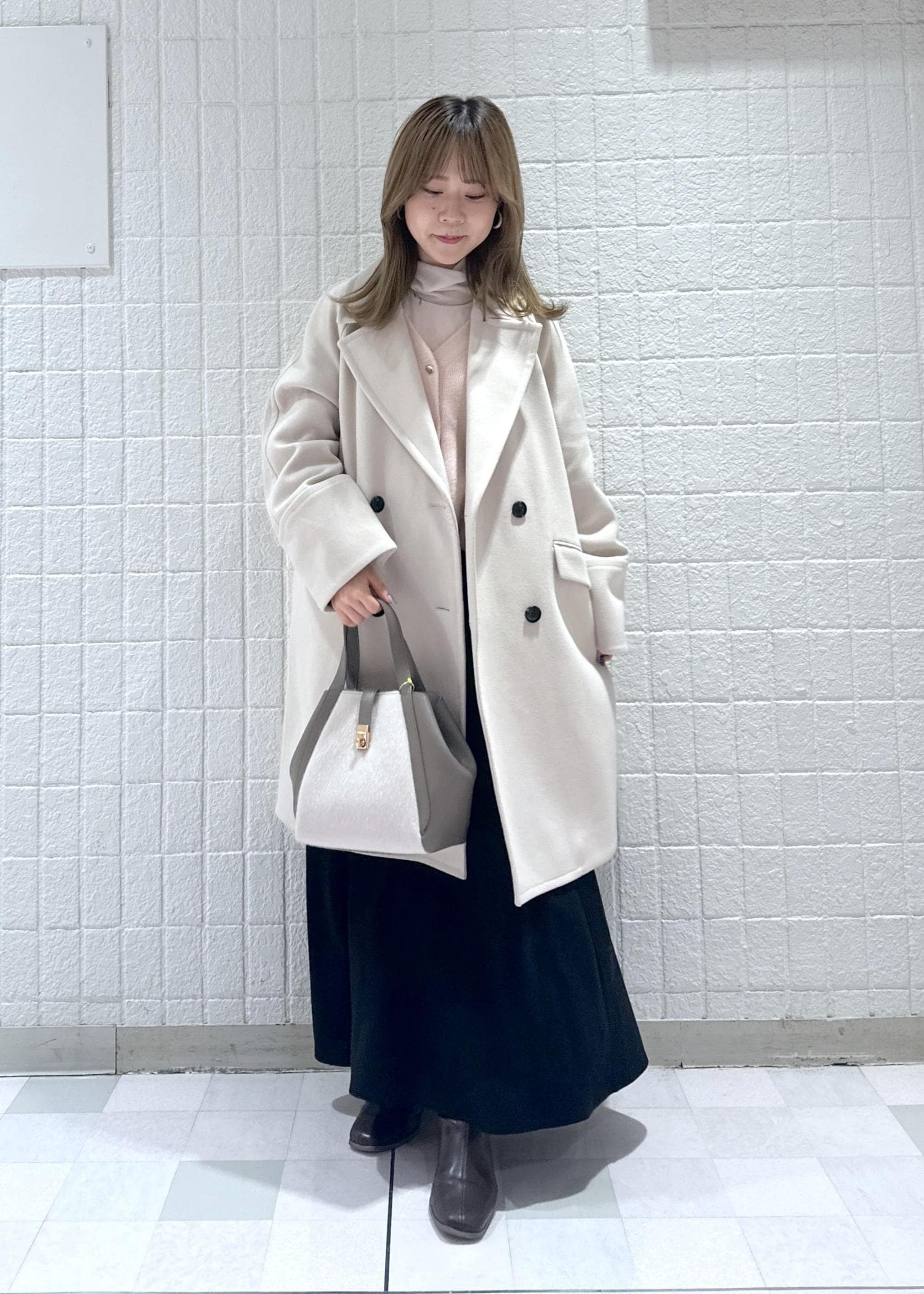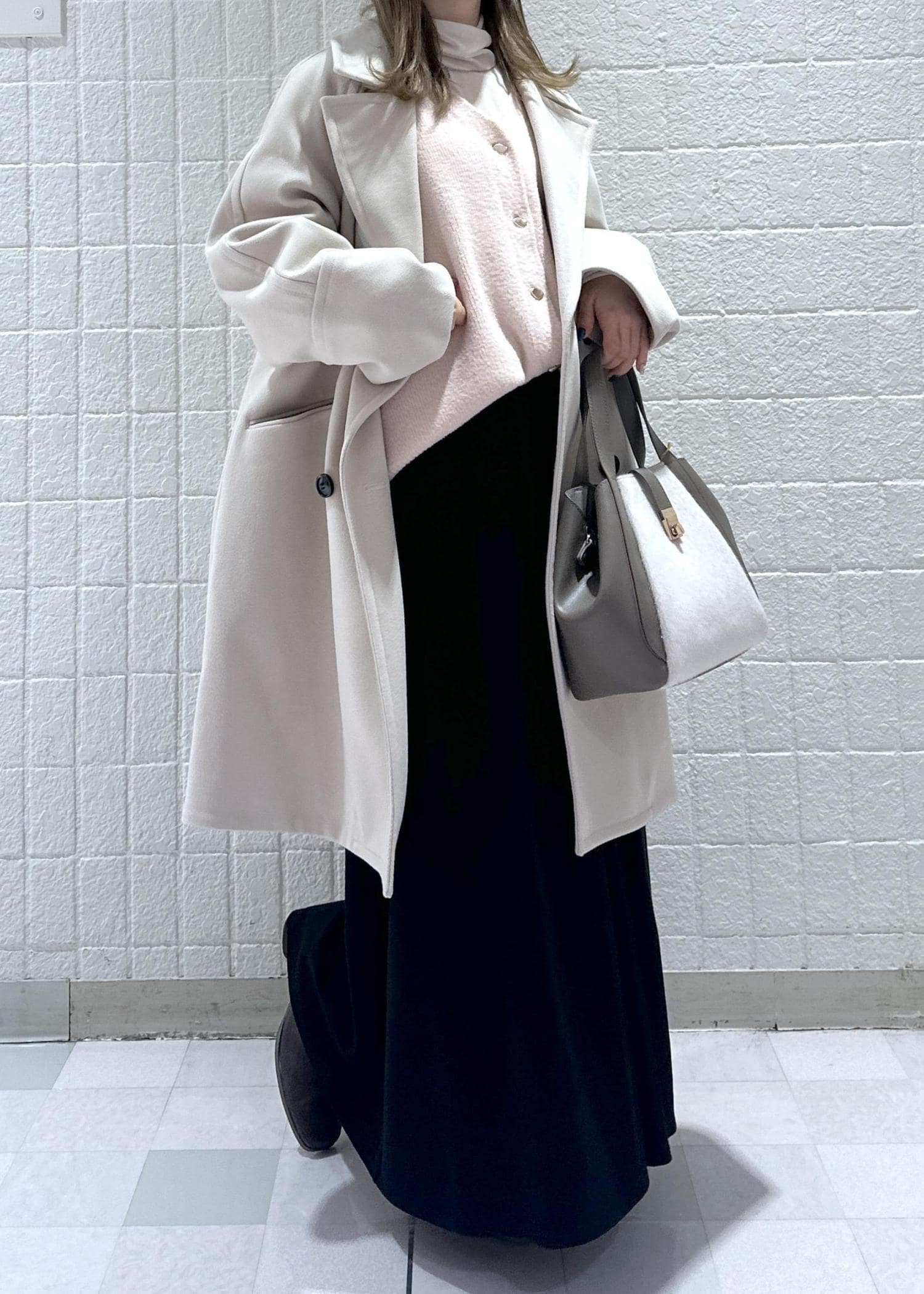 スカート、コートはシンプルなアイテムで合わせ、大人きれいめコーデにまとめました。