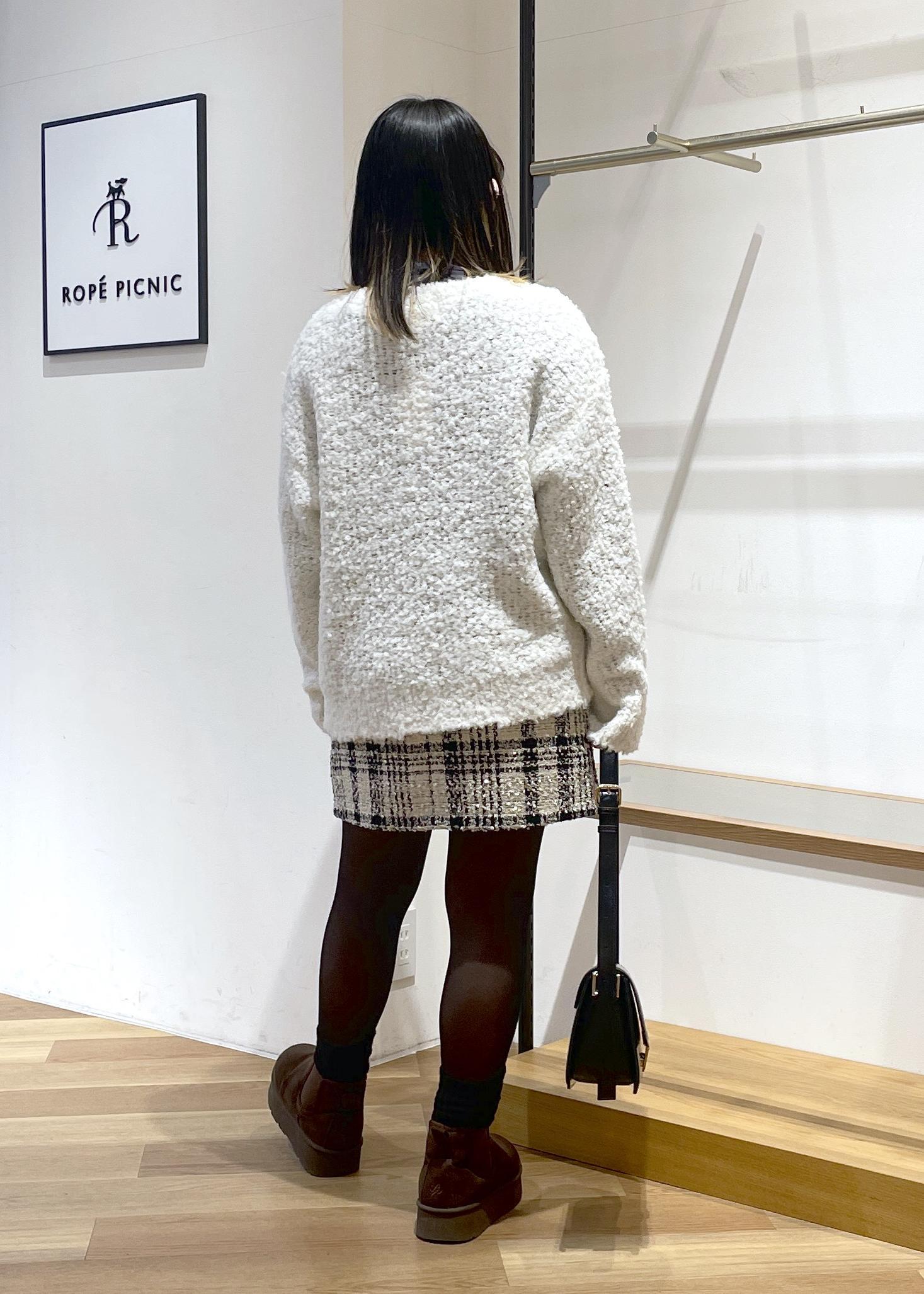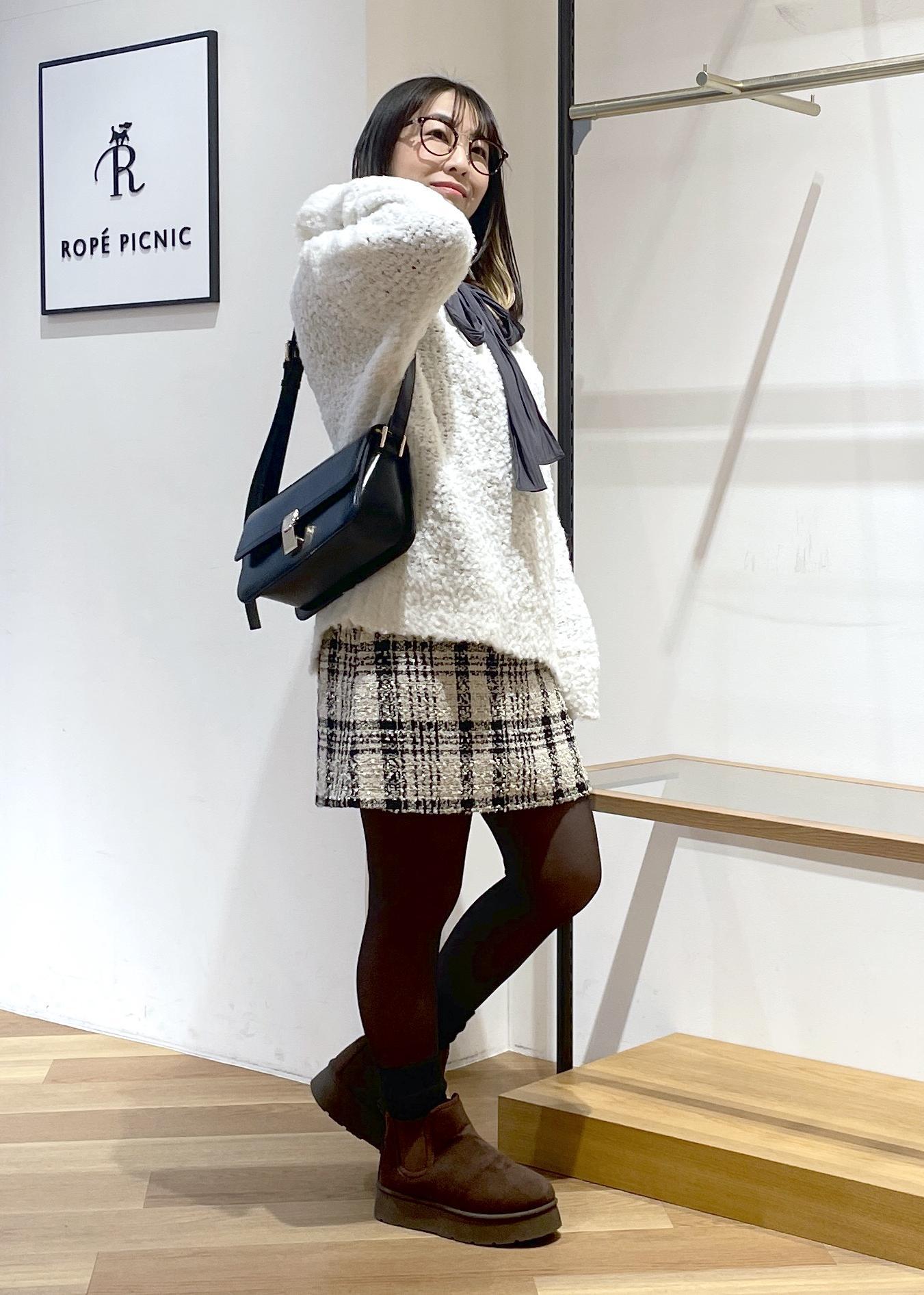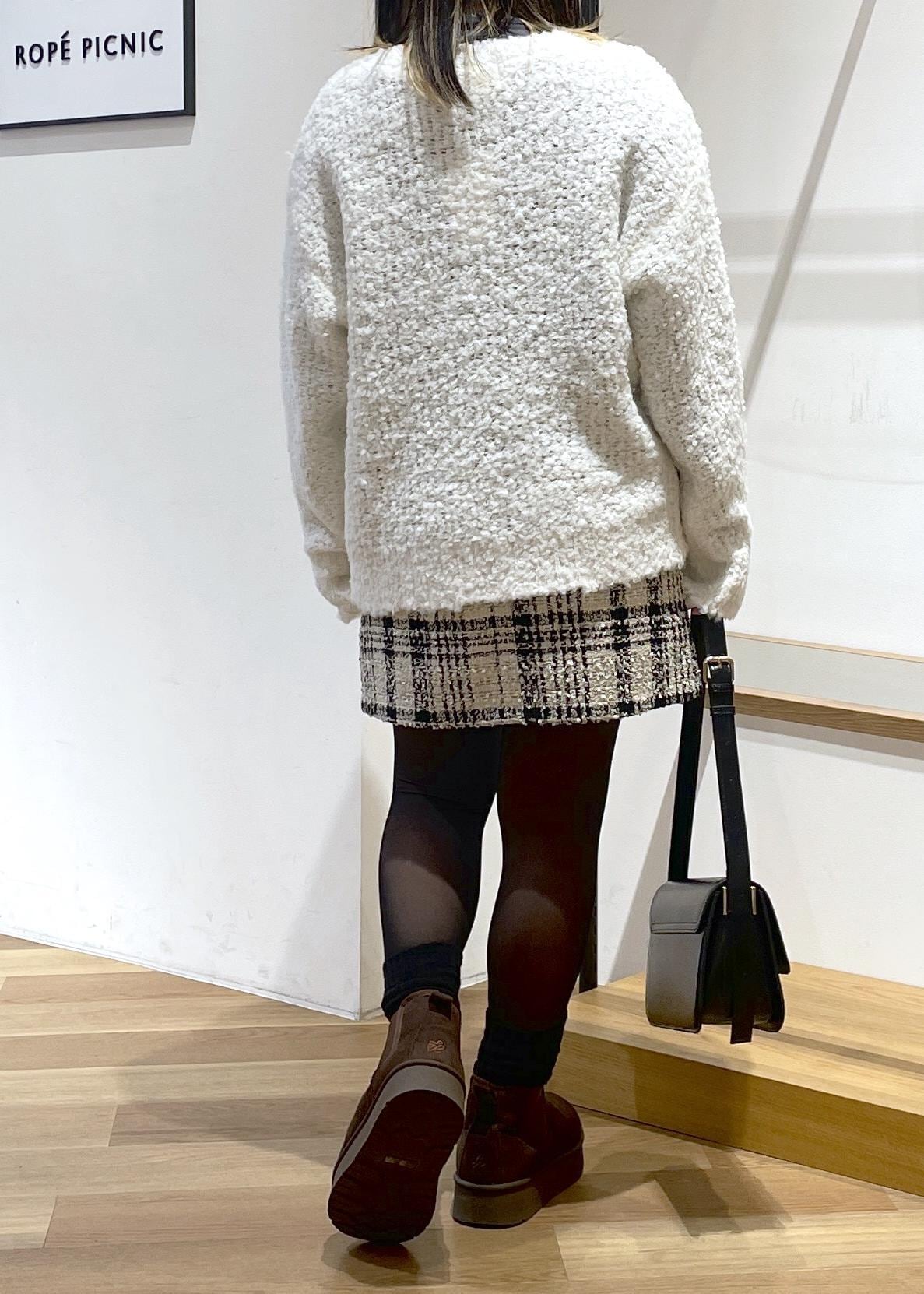ROPÉ PICNICファンシーツイードチェックミニスカートキナリ / S¥5,995レビューツイード素材で着用するだけでちゃんと感が出ます。ミニ丈ですが、裏地がインパンツになってますので安心です○ブーツ合わせが可愛いです。