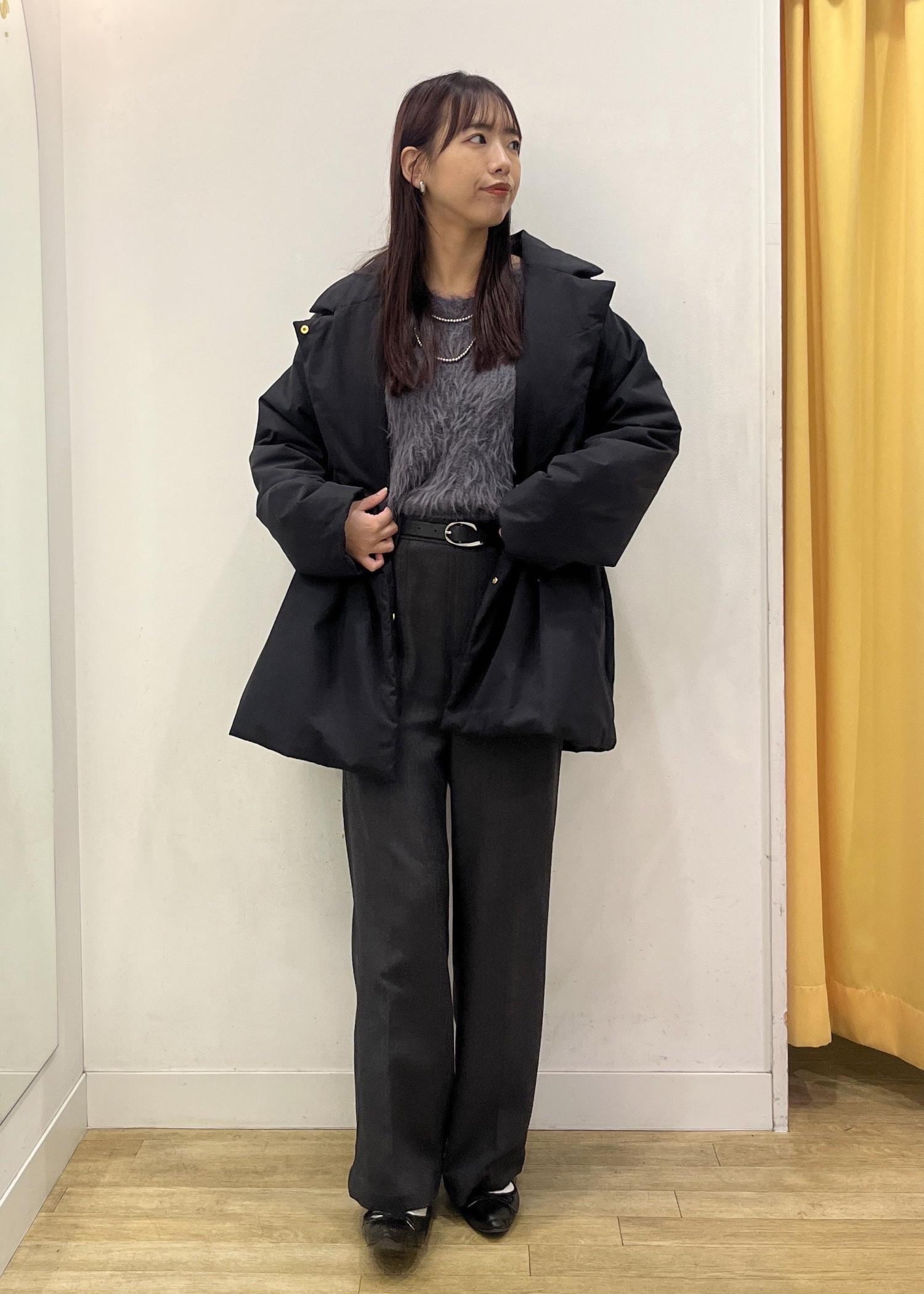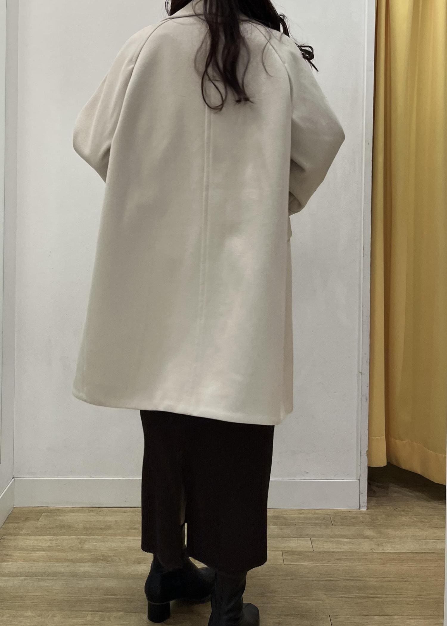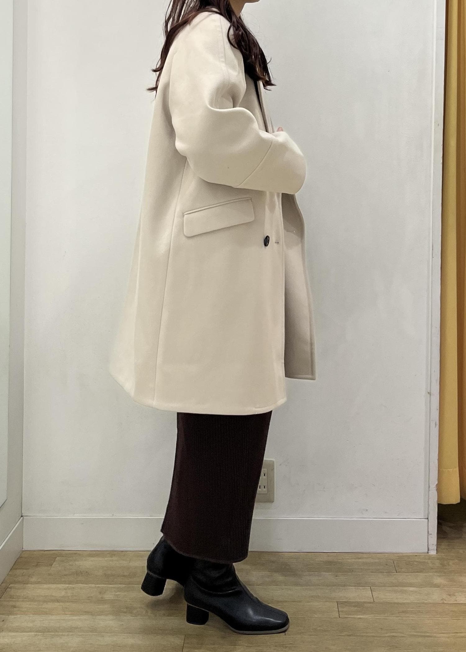 全体的にゆとりのあるシルエットで、インナーに厚手のニットを合わせても窮屈感がなく羽織れます。丈も長すぎないためバランスよく合わせていただけます。