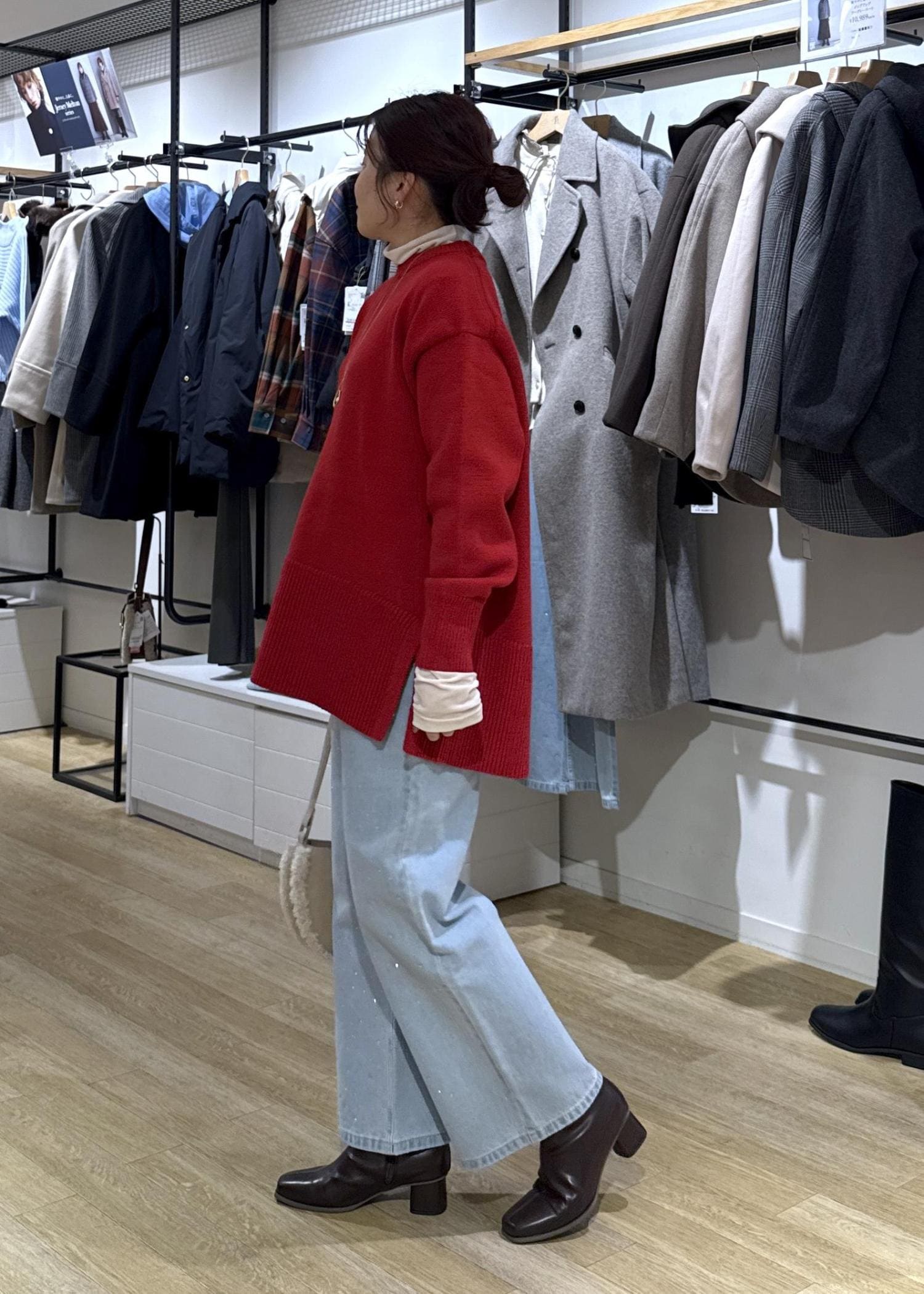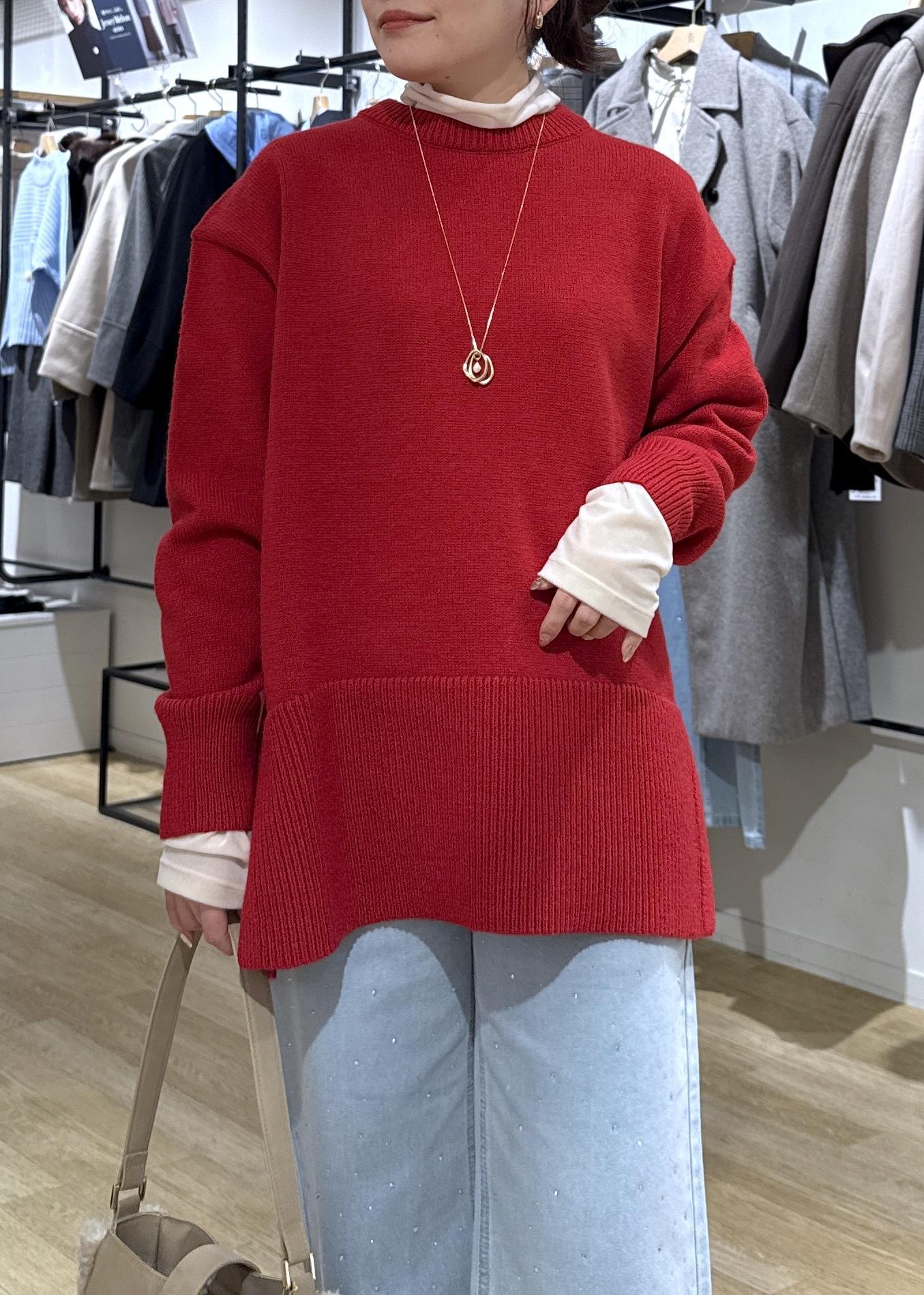 NEW!ROPÉ PICNIC【新色追加】着丈が選べるクルーネックサイドスリットニットプルオーバー/イージーケアレッド / MT¥3,993レビュー着丈が2種類選べるサイズ展開です◎