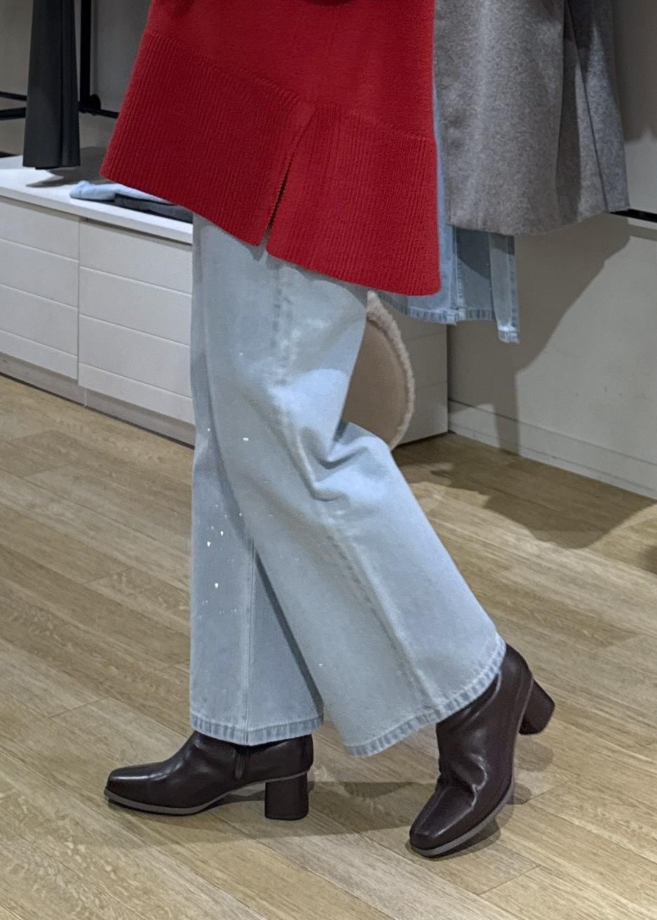 柔らかいストレッチの効いた合皮素材なので足首部分も締め付けすぎず履けます。 -