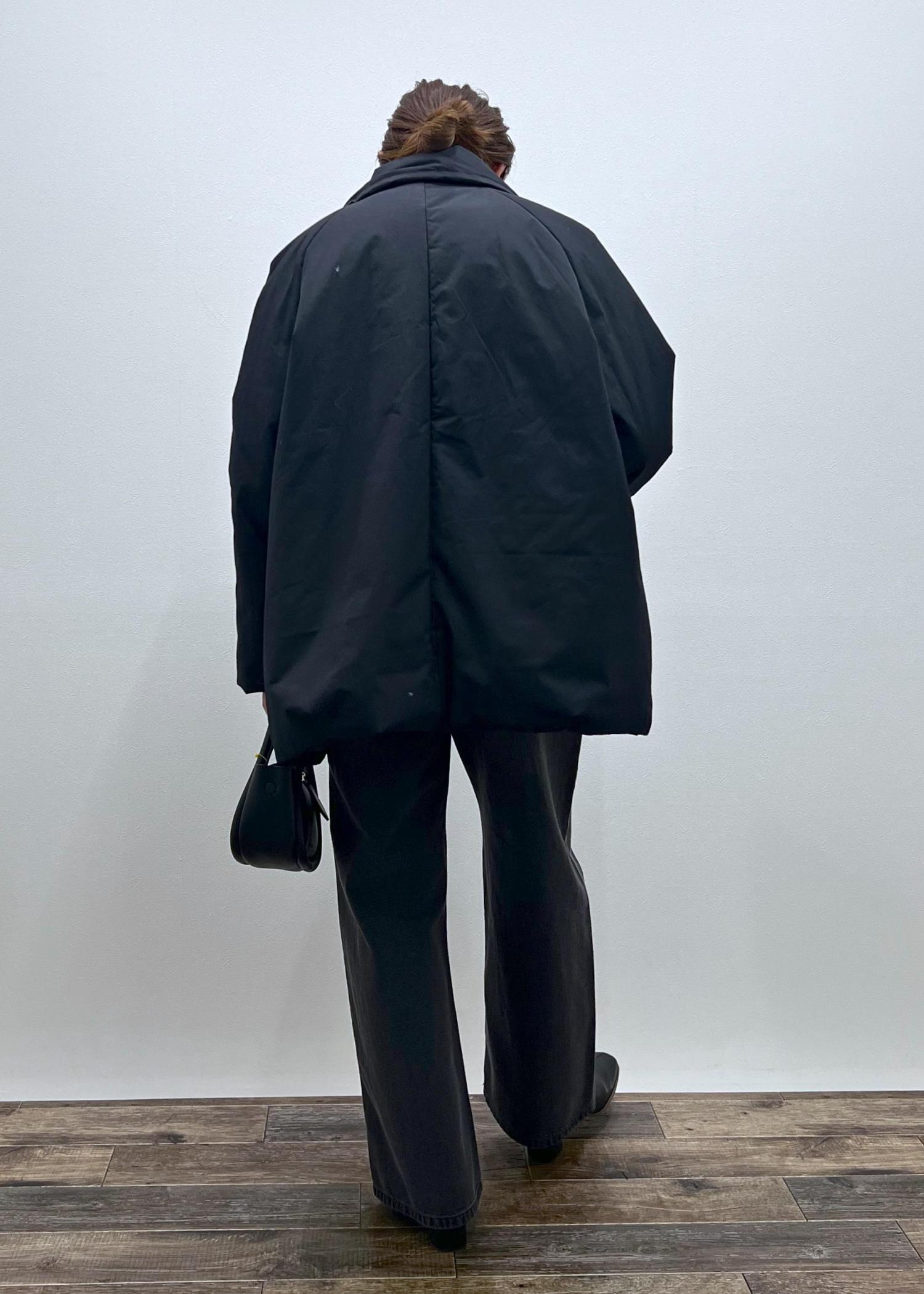 とても軽く少し厚みがあるコートです。中にも着込めるサイズ感です。