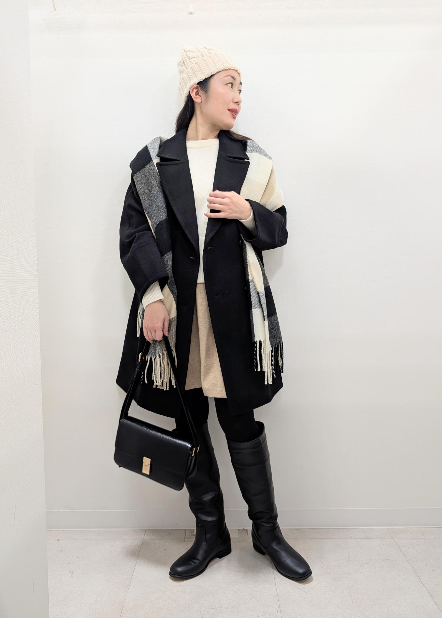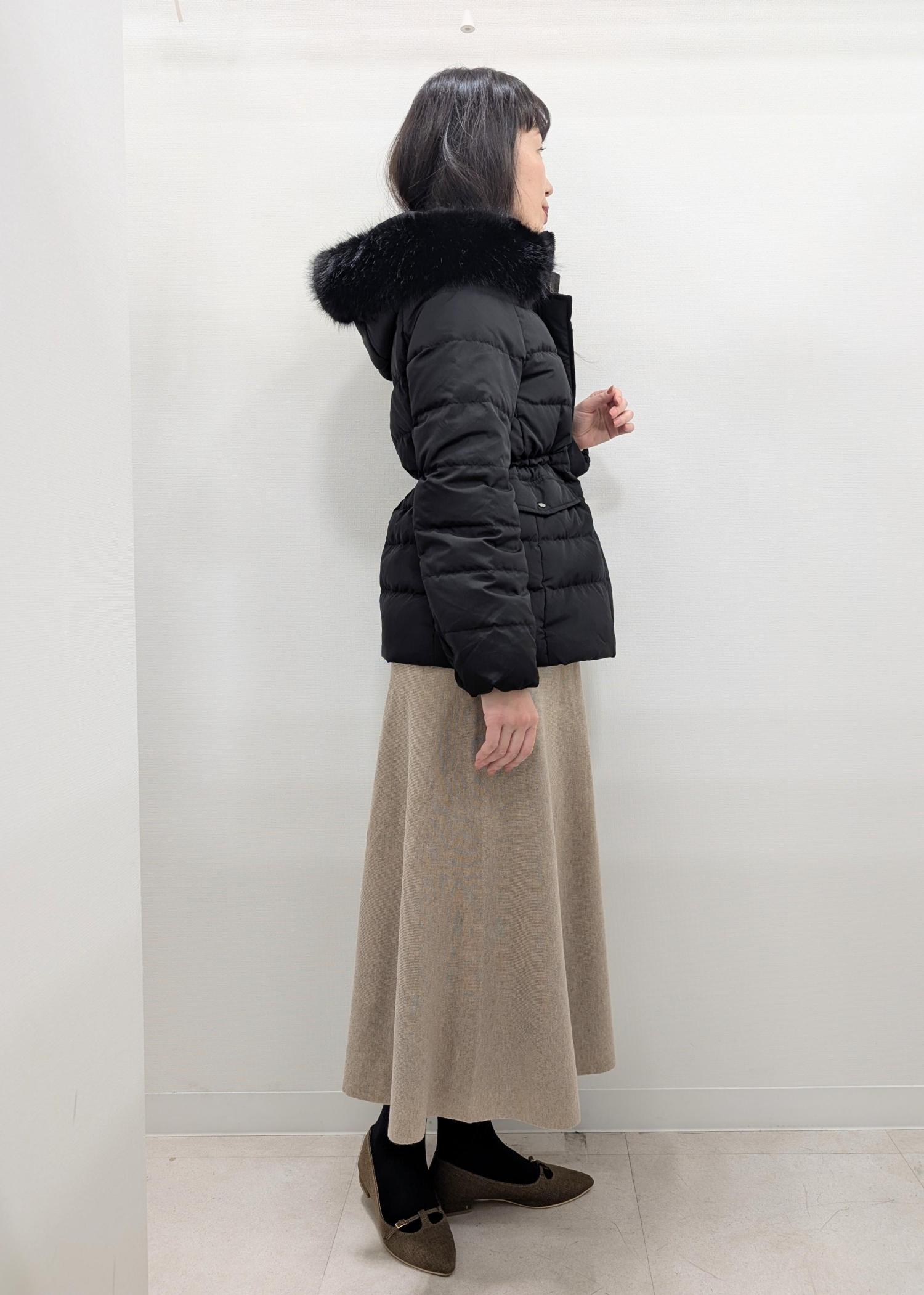 私は骨格ウェーブで長めのダウンコートは膨張して見えることが多いですが、こちらは切り替えがあるのでスッキリ見えました! -