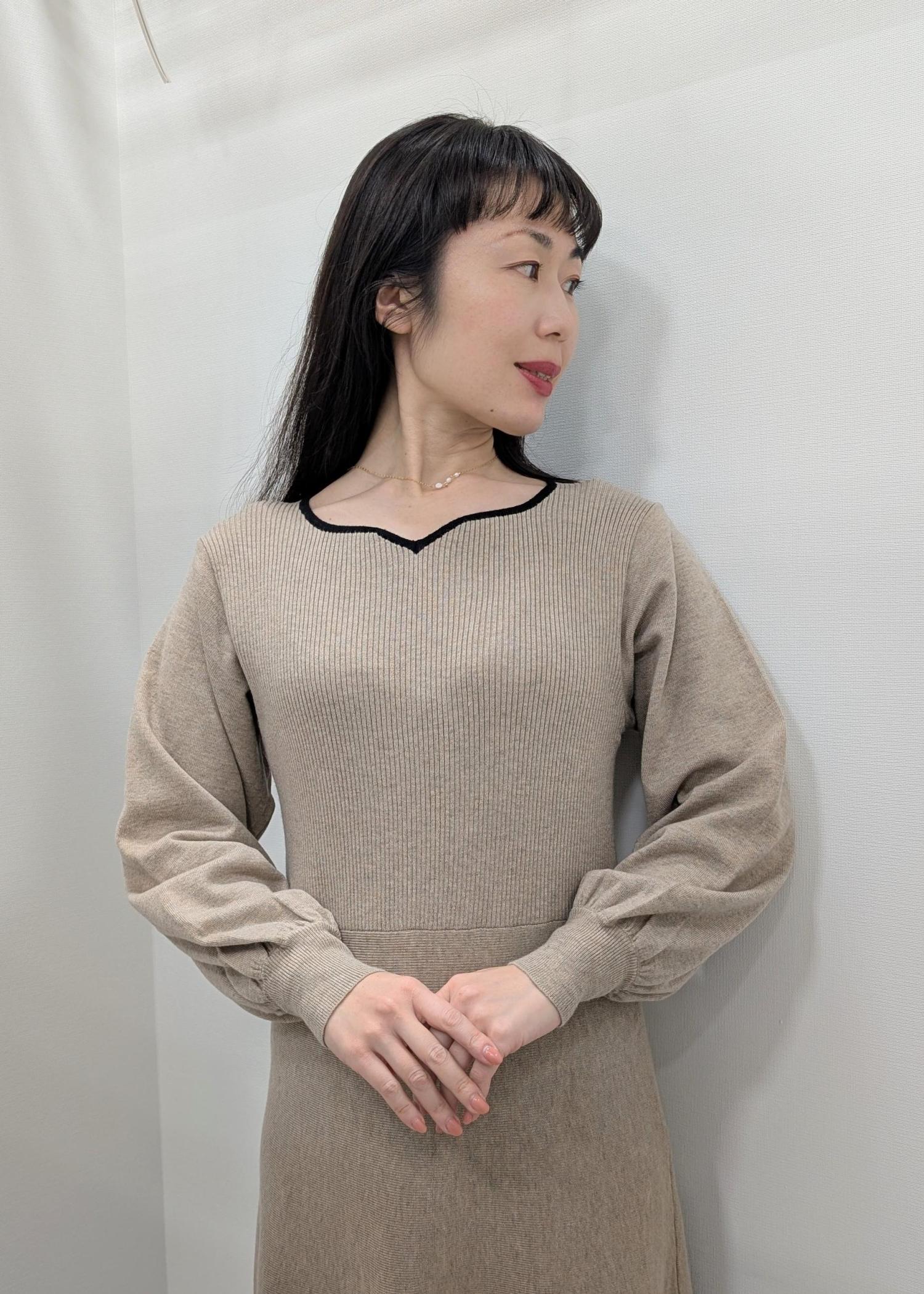 ROPÉ PICNICハートネックニットワンピースベージュ / M¥7,491レビューアームホールはゆったりめです。