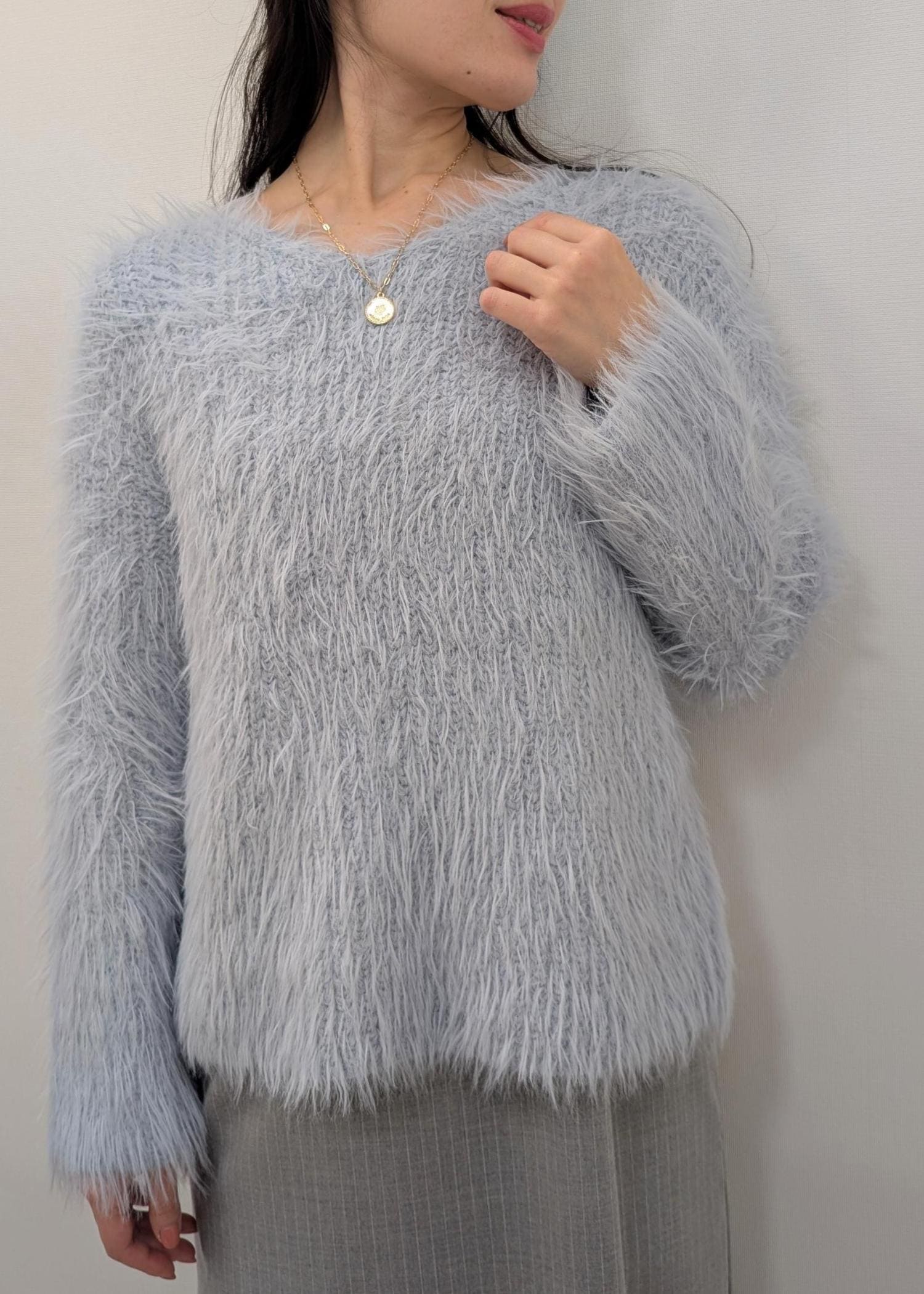 ROPÉ PICNICフェザーVネックニットサックス / F¥4,994レビューアームホール、身幅ともにゆったりめです。