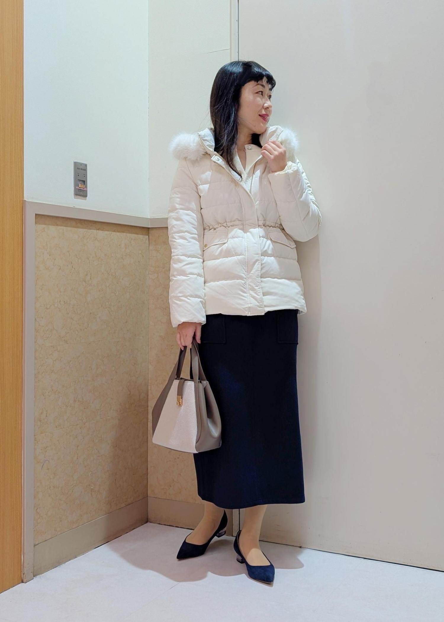 私は肩幅広めの骨格ウェーブなので、ゆったりめのニットの時はワンピースやボトムはスッキリしたシルエットのものを