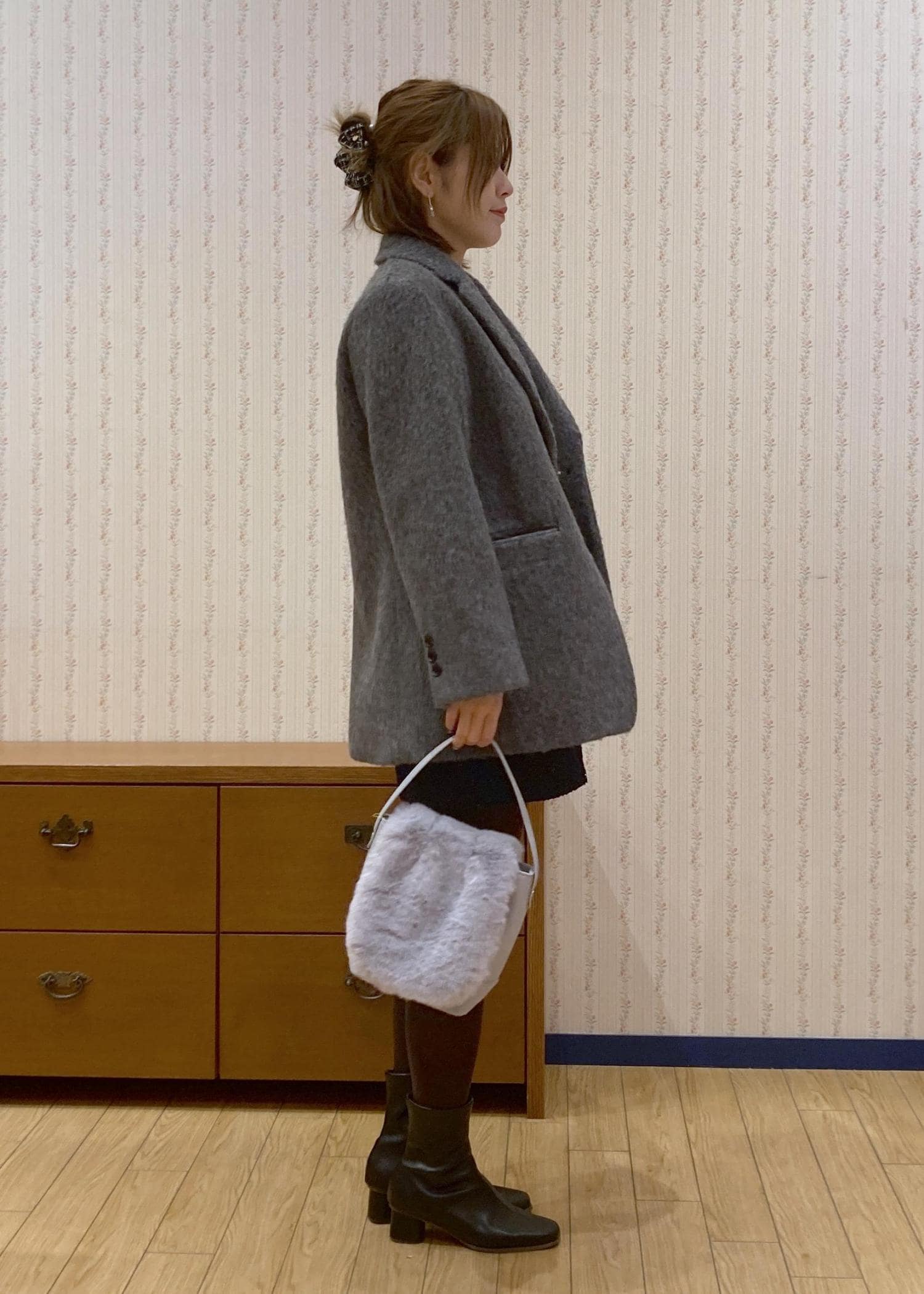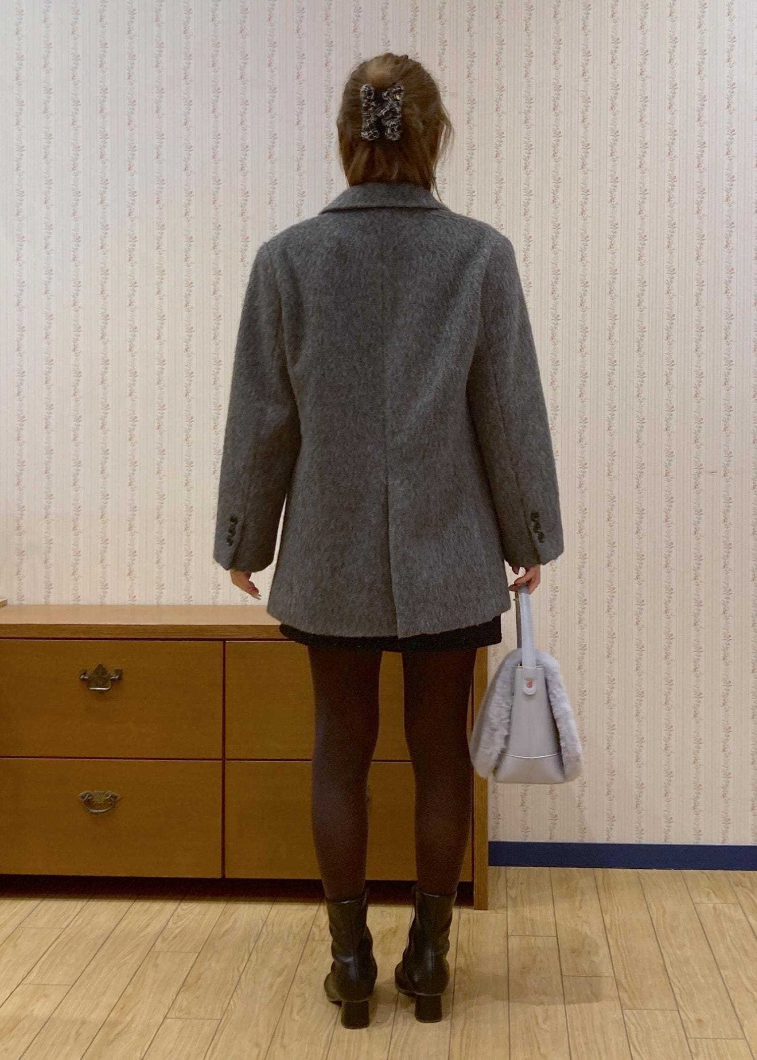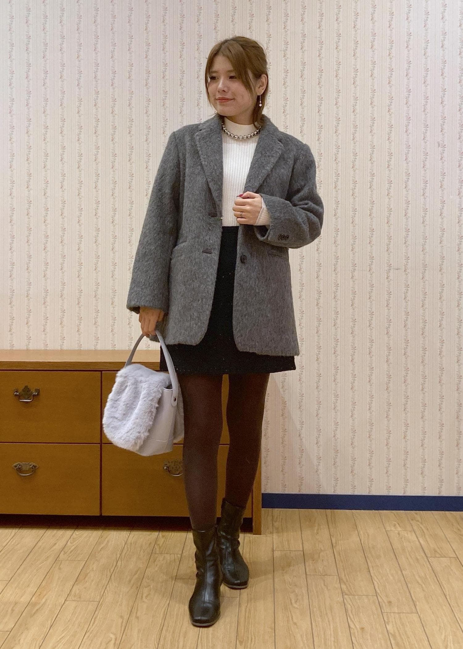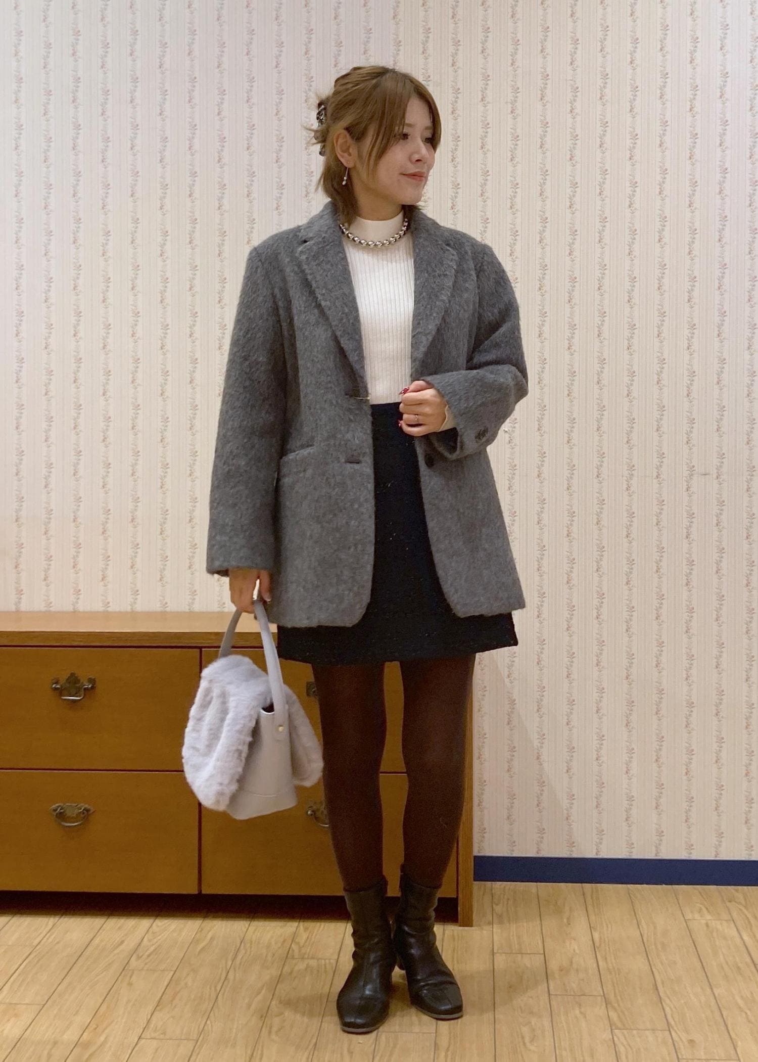 アウターはおとなっぽく決まるジャコットを合わせて、かわいいに寄りすぎないようにバランスを取りました。