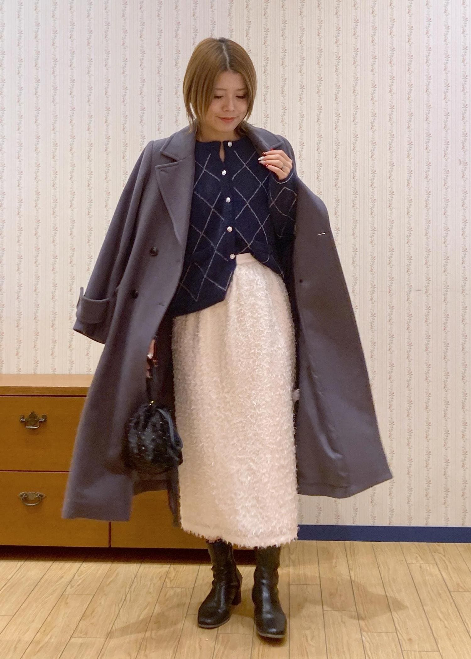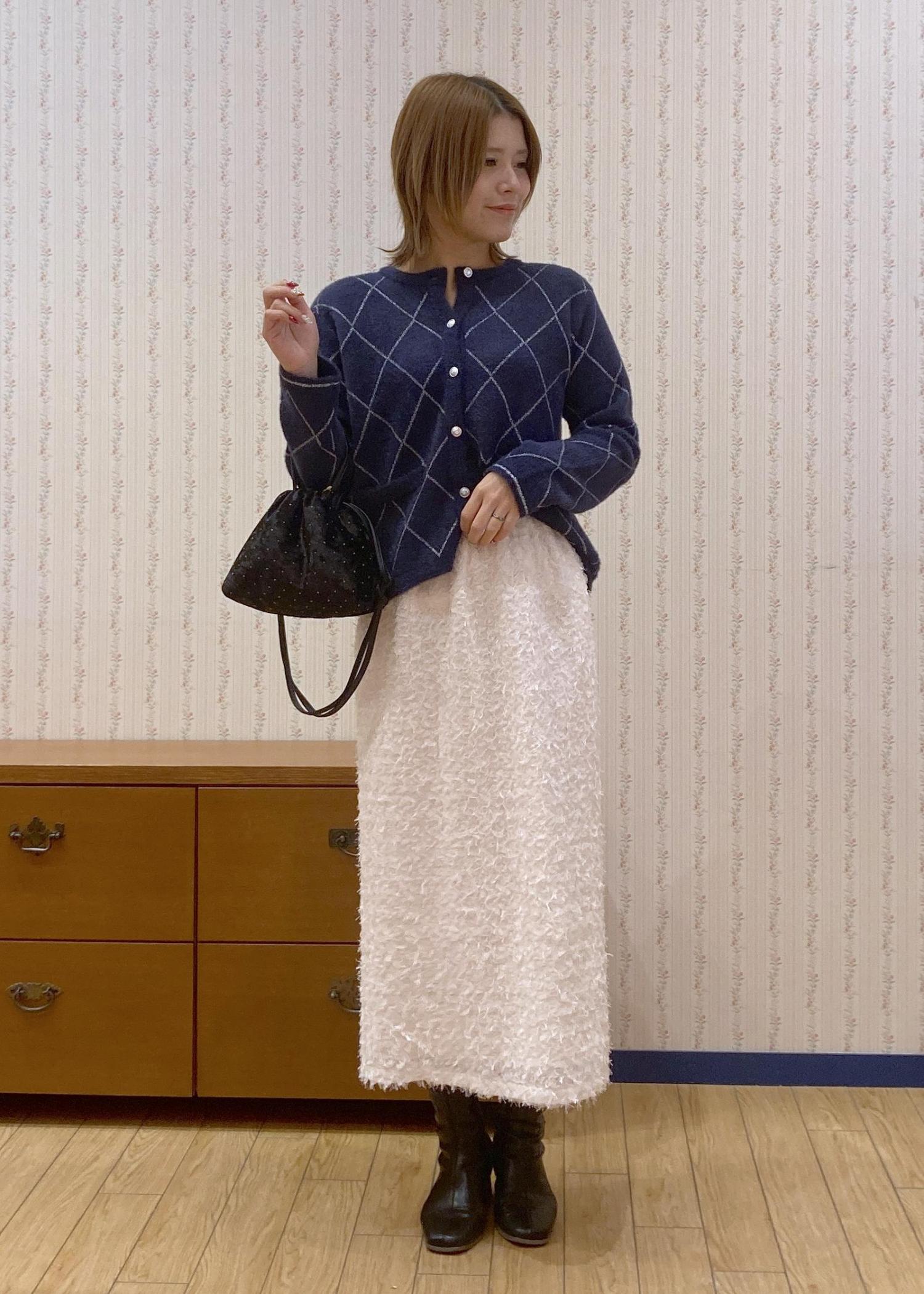 着映えするカーディガンとデザイン性のあるタイトスカートを合わせてクリスマスにオススメの大人かわいいコーディネートに仕上げました!