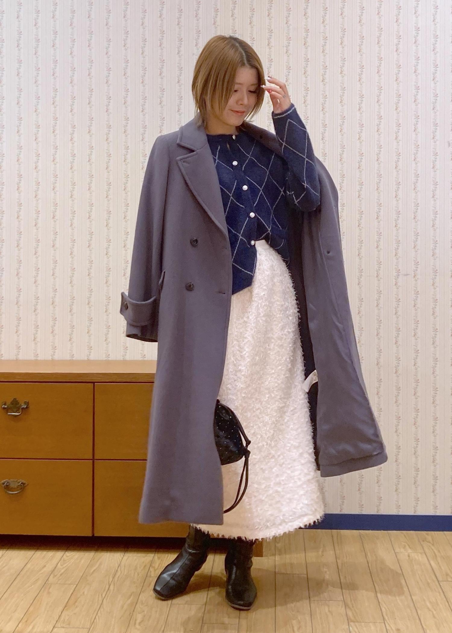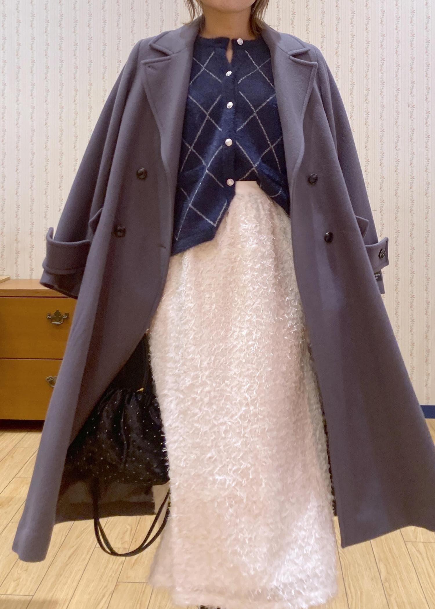 アウターはロングコートをさっと羽織って更に大人の余裕感をプラスしました。