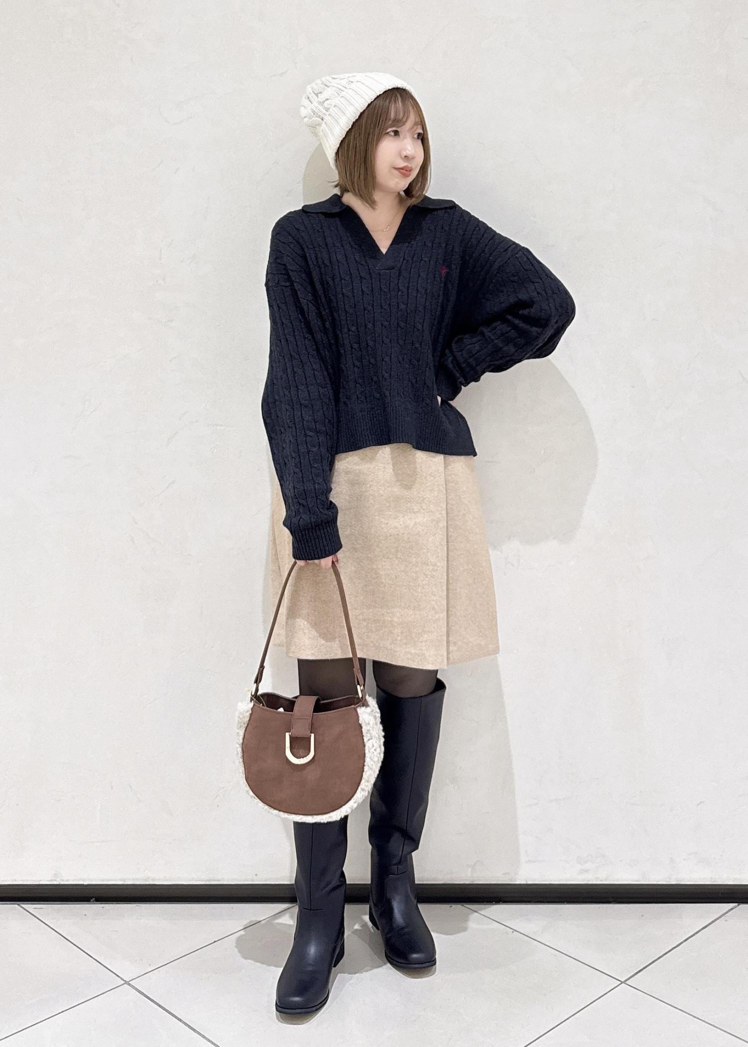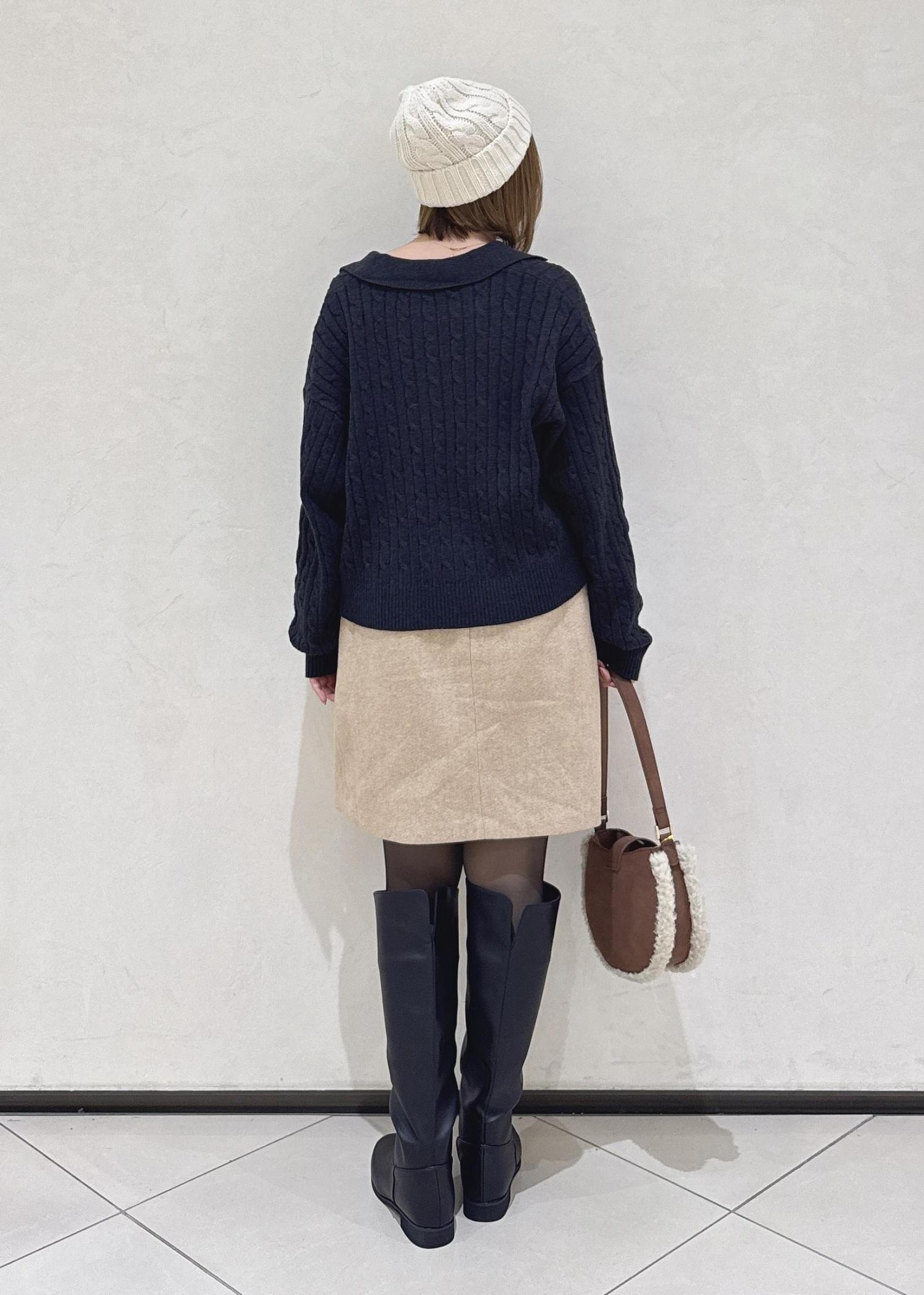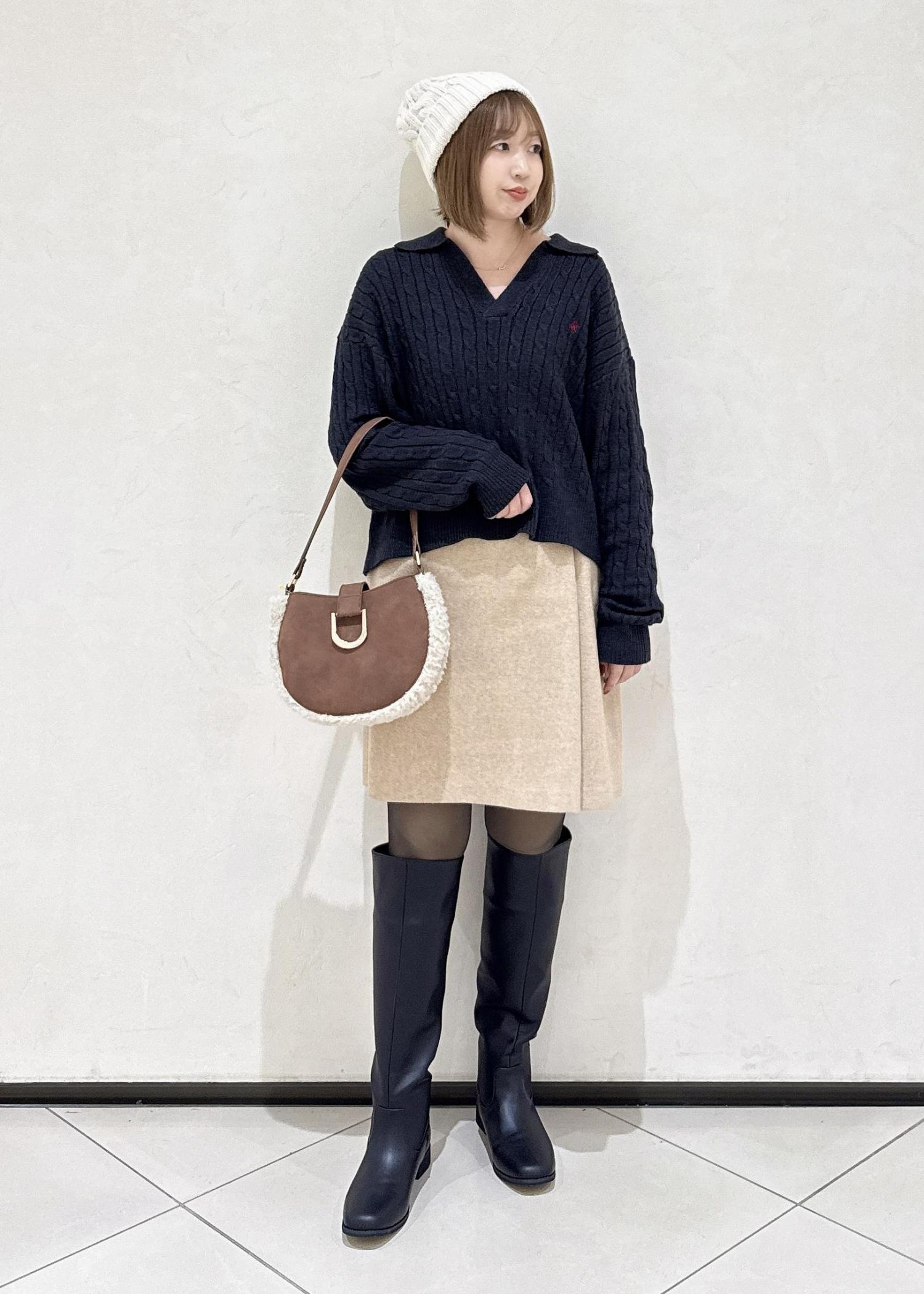 ミニスカートなので、ロングブーツと合わせ脚の露出を少なめにバランスを取りました。