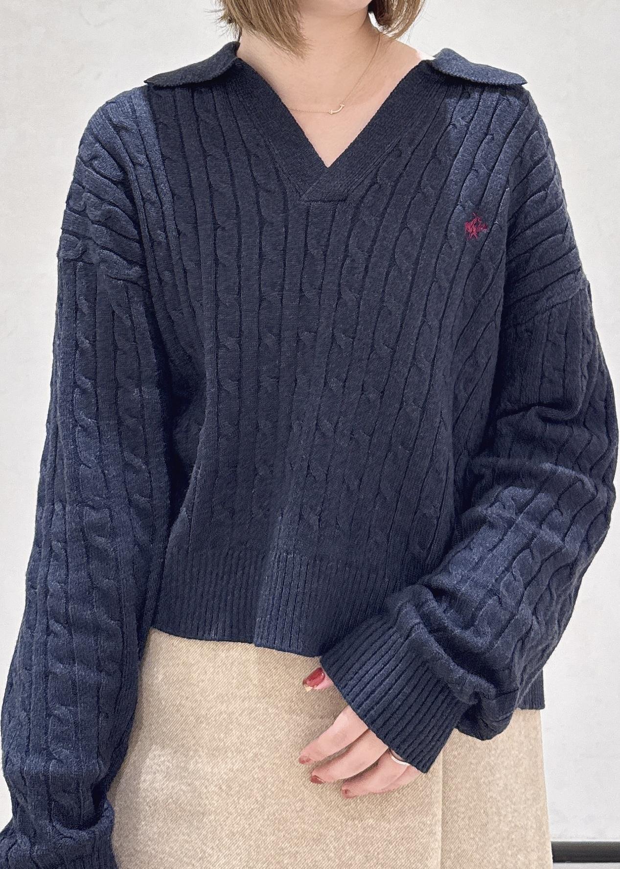 NEW!ROPÉ PICNIC【BEVERLYHILLS POLO CLUB・新色追加】ケーブル編みクロップドスキッパーニットチャコール / F¥5,995レビュー抜け感のあるスキッパーデザインですっきりと着ていただけます。