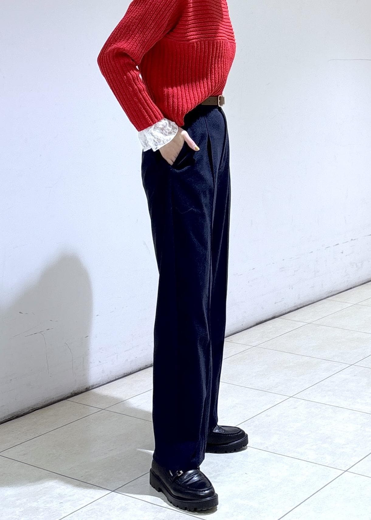 ネイビーのワイドパンツを合わせてフレンチカジュアルに