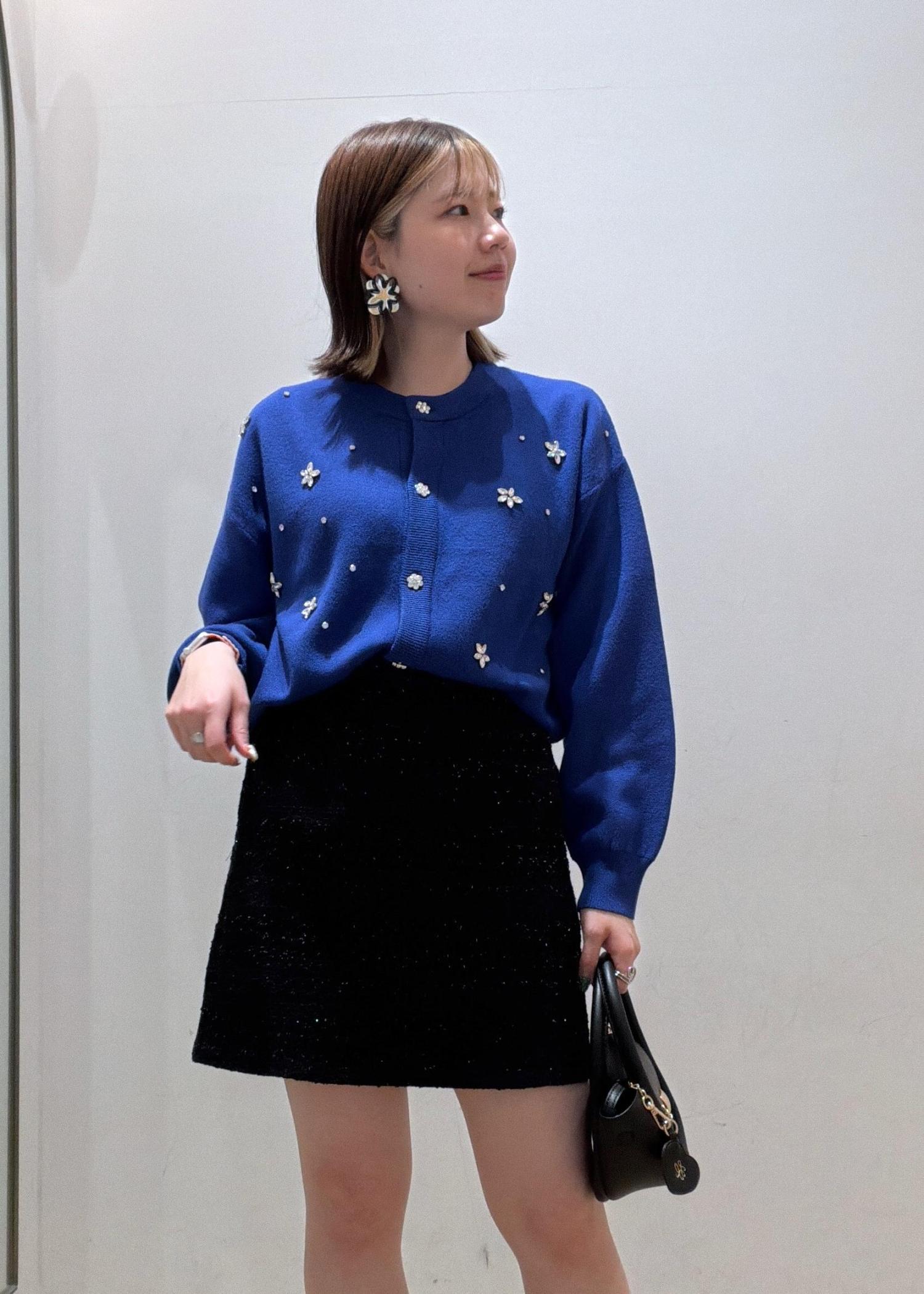 ROPÉ PICNICビジューニットカーディガンブルー / F¥5,995レビューボディ部分にビジューが入っていてとても華やか◎です♩