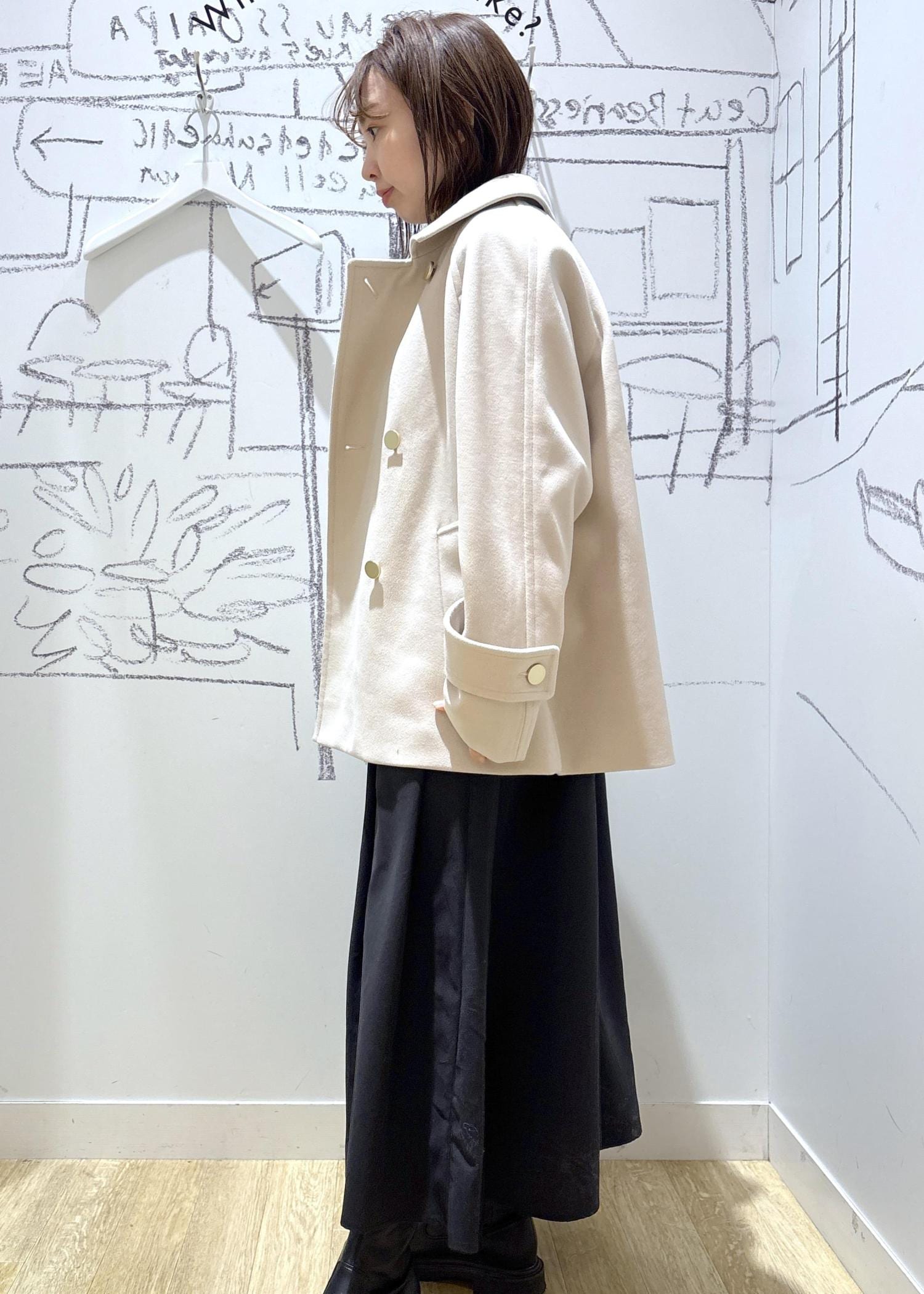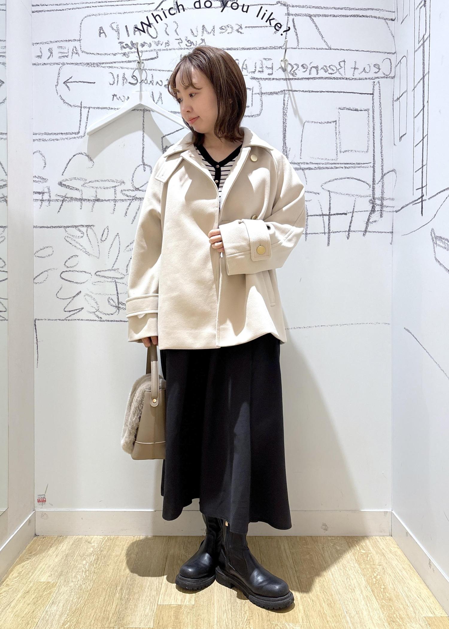 ROPÉ PICNICジャージーメルトンシリーズ 金ボタンミドル丈コート/リンクコーデベージュ / F¥10,989レビューゆったりとしたシルエットで中に厚手のニットもしっかり重ね着できます。