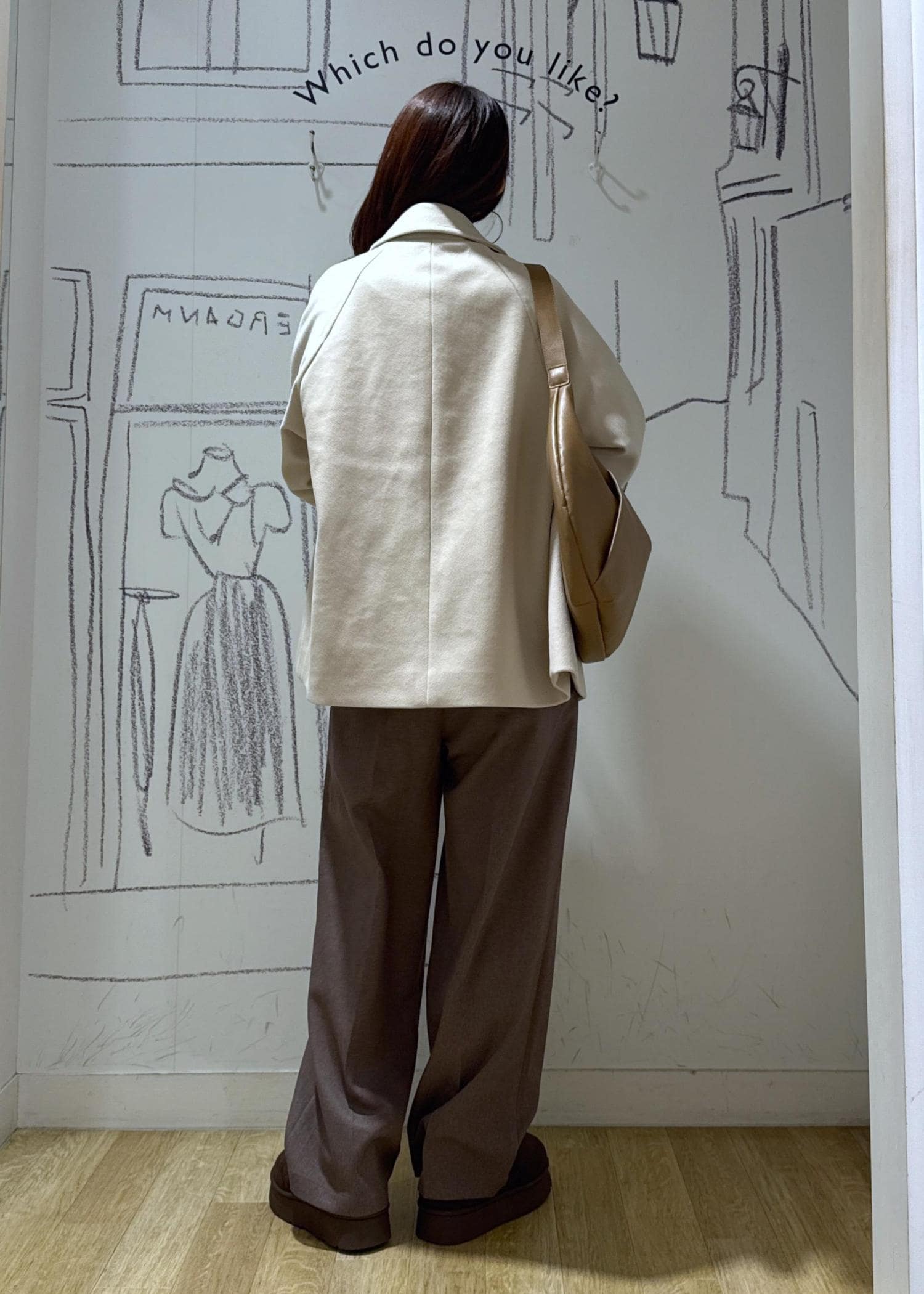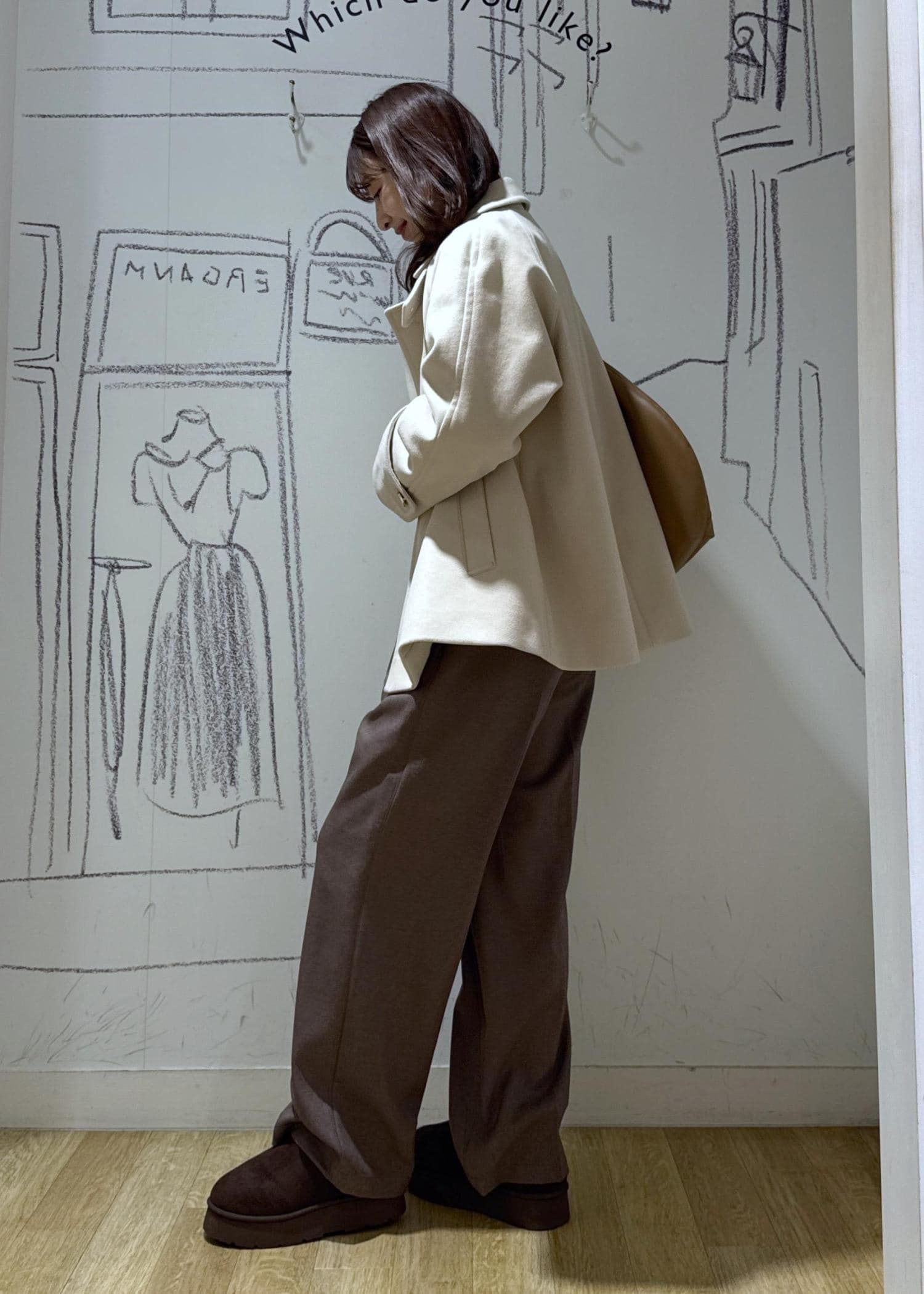 ROPÉ PICNICジャージーメルトンシリーズ 金ボタンミドル丈コート/リンクコーデベージュ / F¥10,989レビューさり気ないフレアシルエットがクラシカルムードたっぷりで品があります。身幅・袖幅共にゆとりがあるのでボリュームニットや厚手のパーカー合わせも問題なさそうです。着丈はお尻に少し掛かる長さ。襟を立てて着用もできる為防寒対策も申し分なし◎
